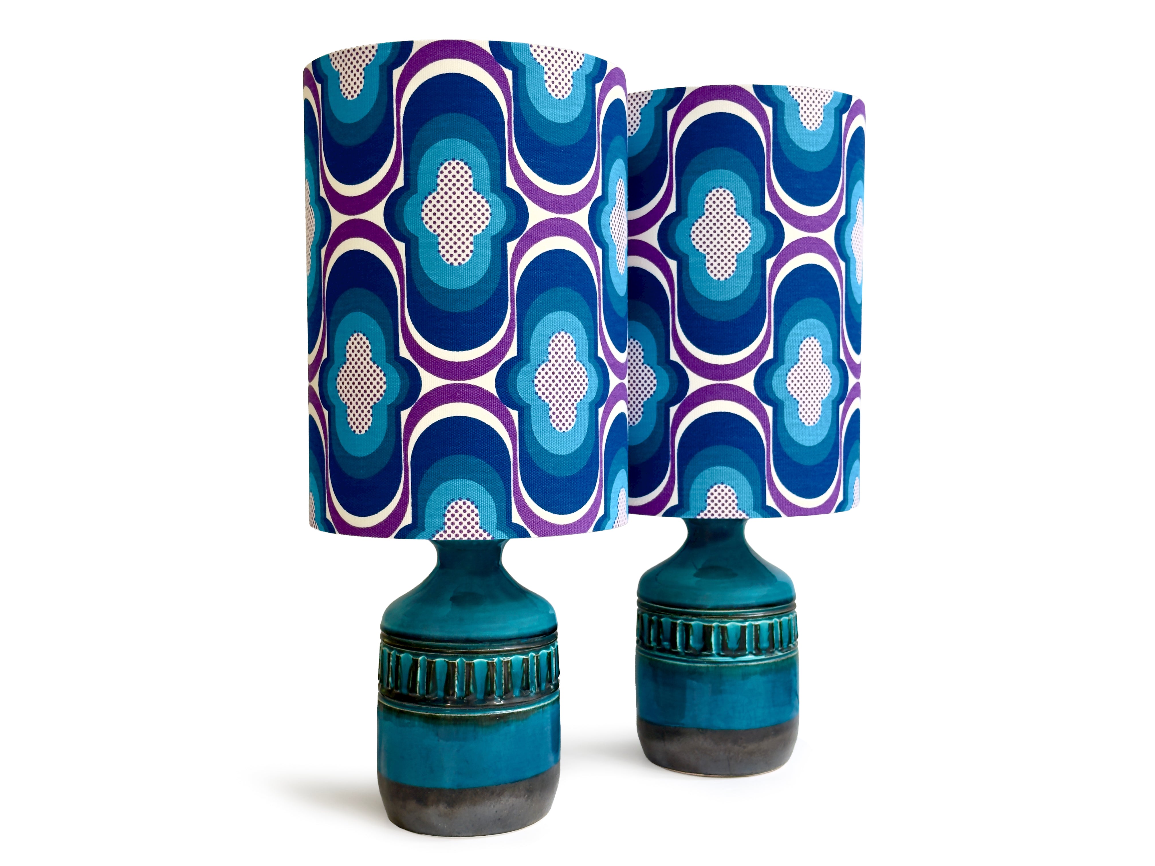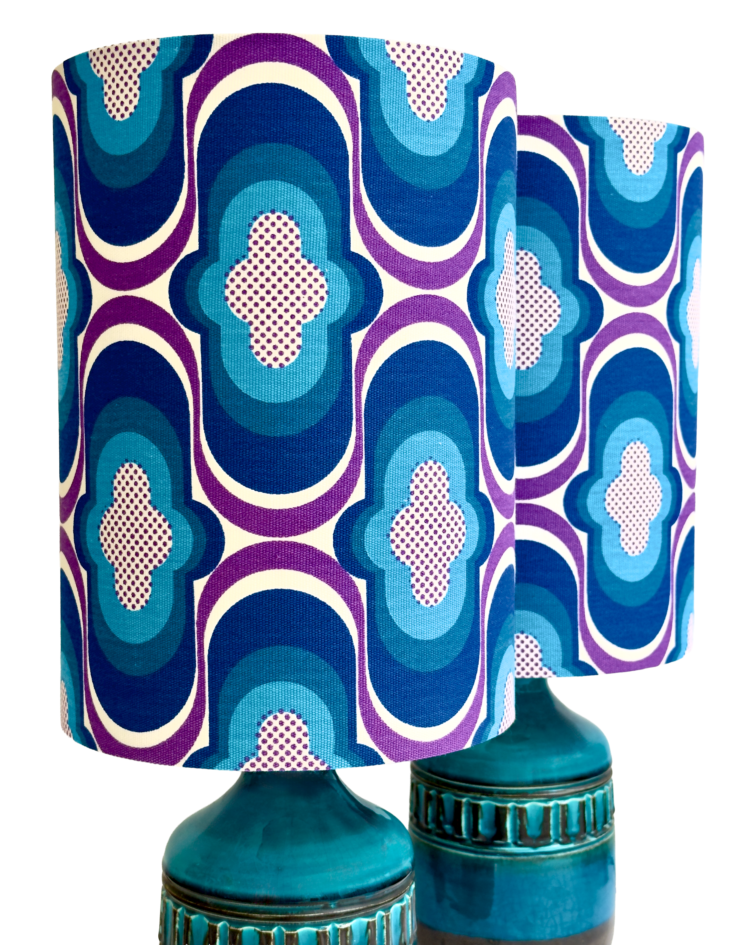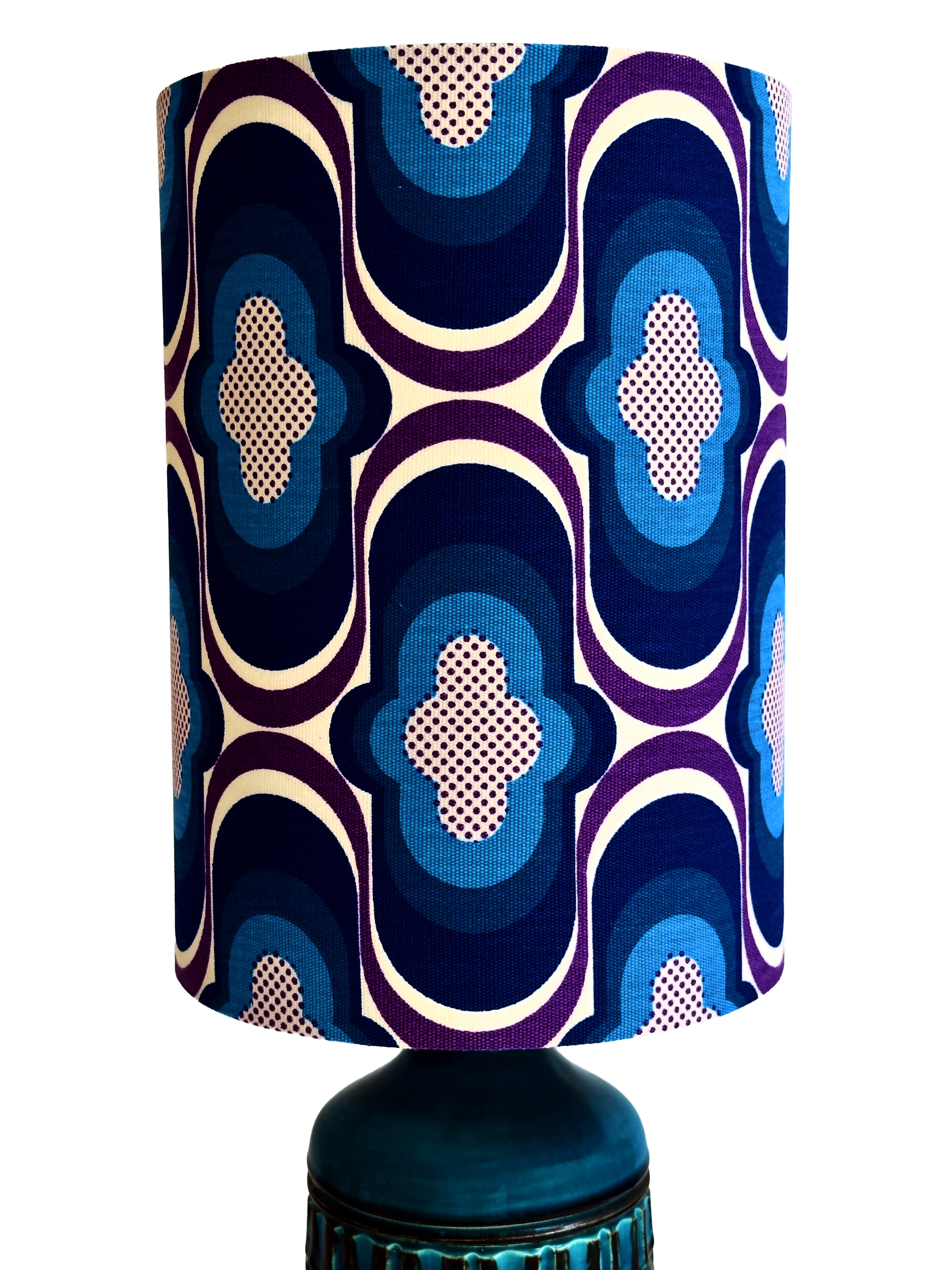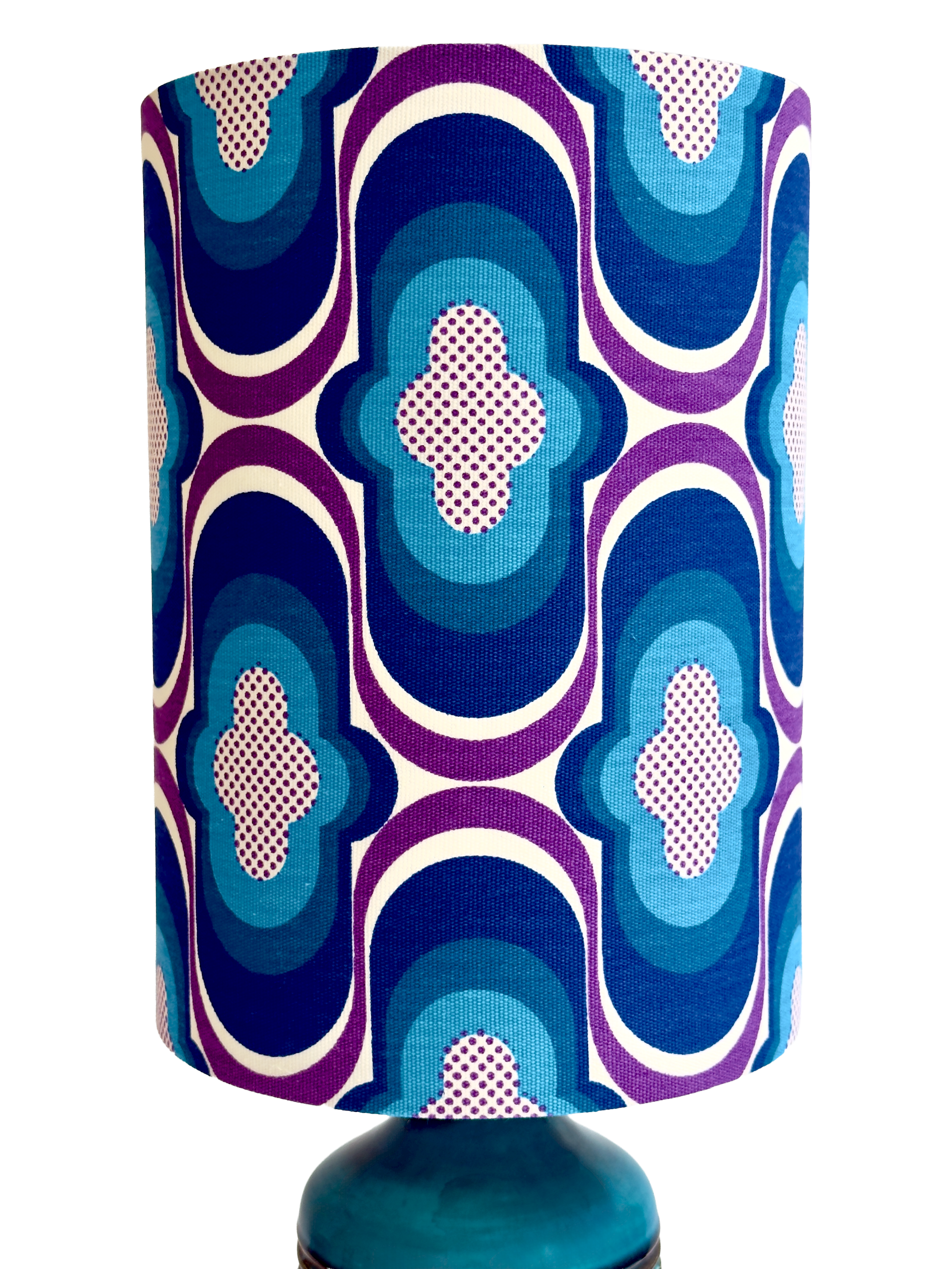 Shade Material Hand-made from vintage fabric, thanks to Retro Duo. The pattern can be seen in a couple different ways, as demonstrated in the images.