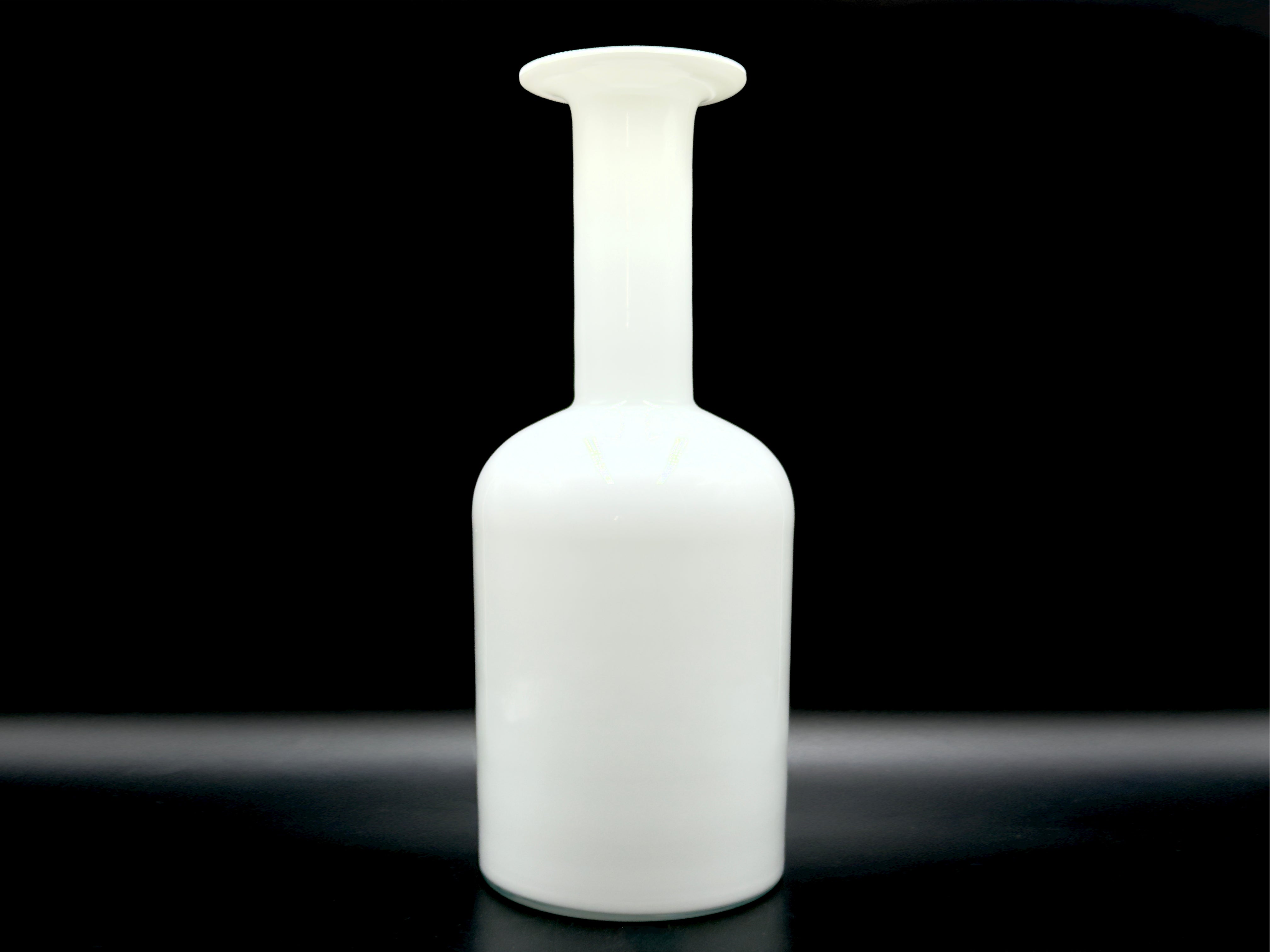 The vases were designed in 1962 in a selection of bottle forms and a limited number of colours including amber, cobalt blue and olive green. There were five sizes in total ranging from 26cm (10") to 52cm (20.5") in height.