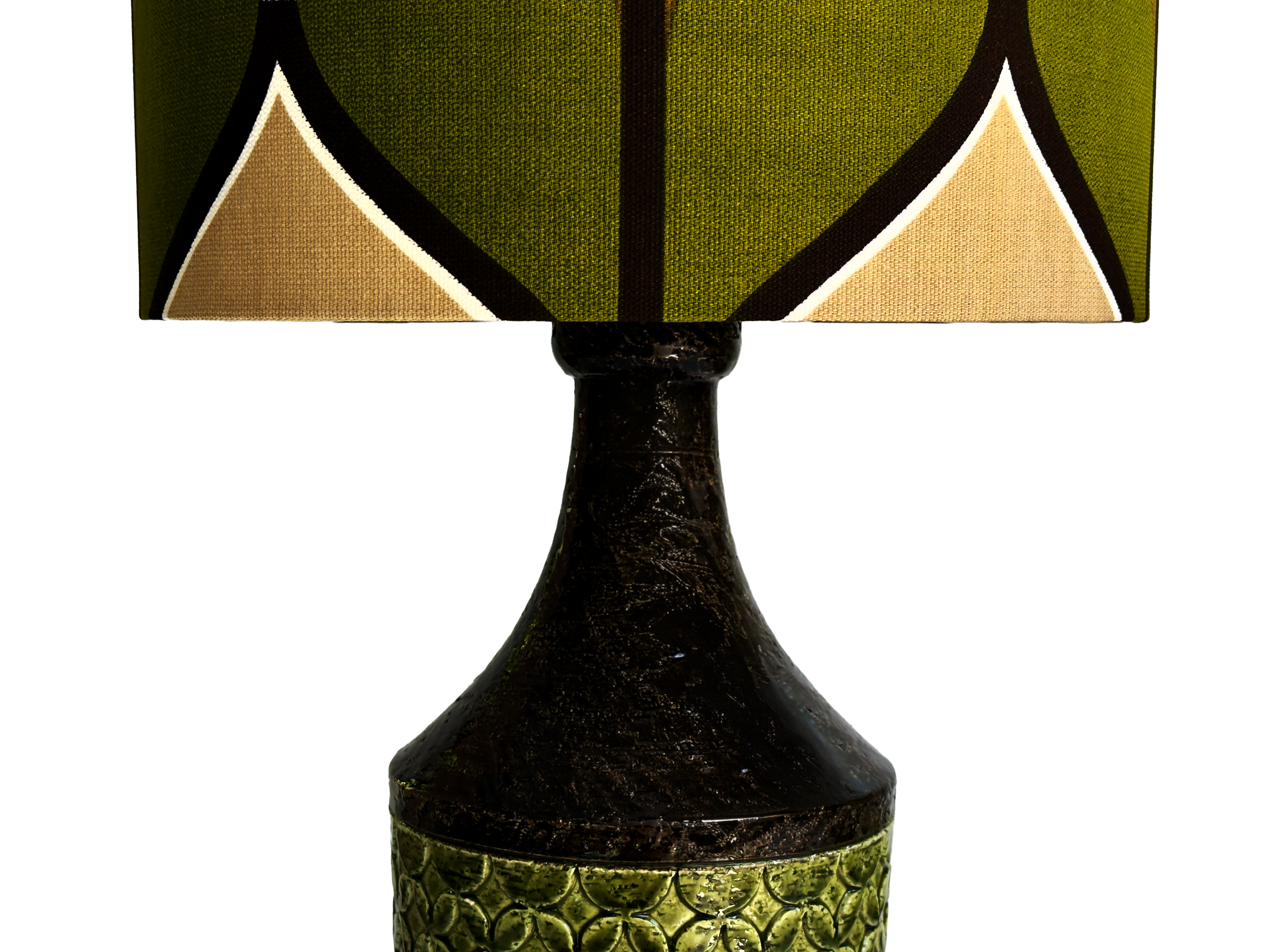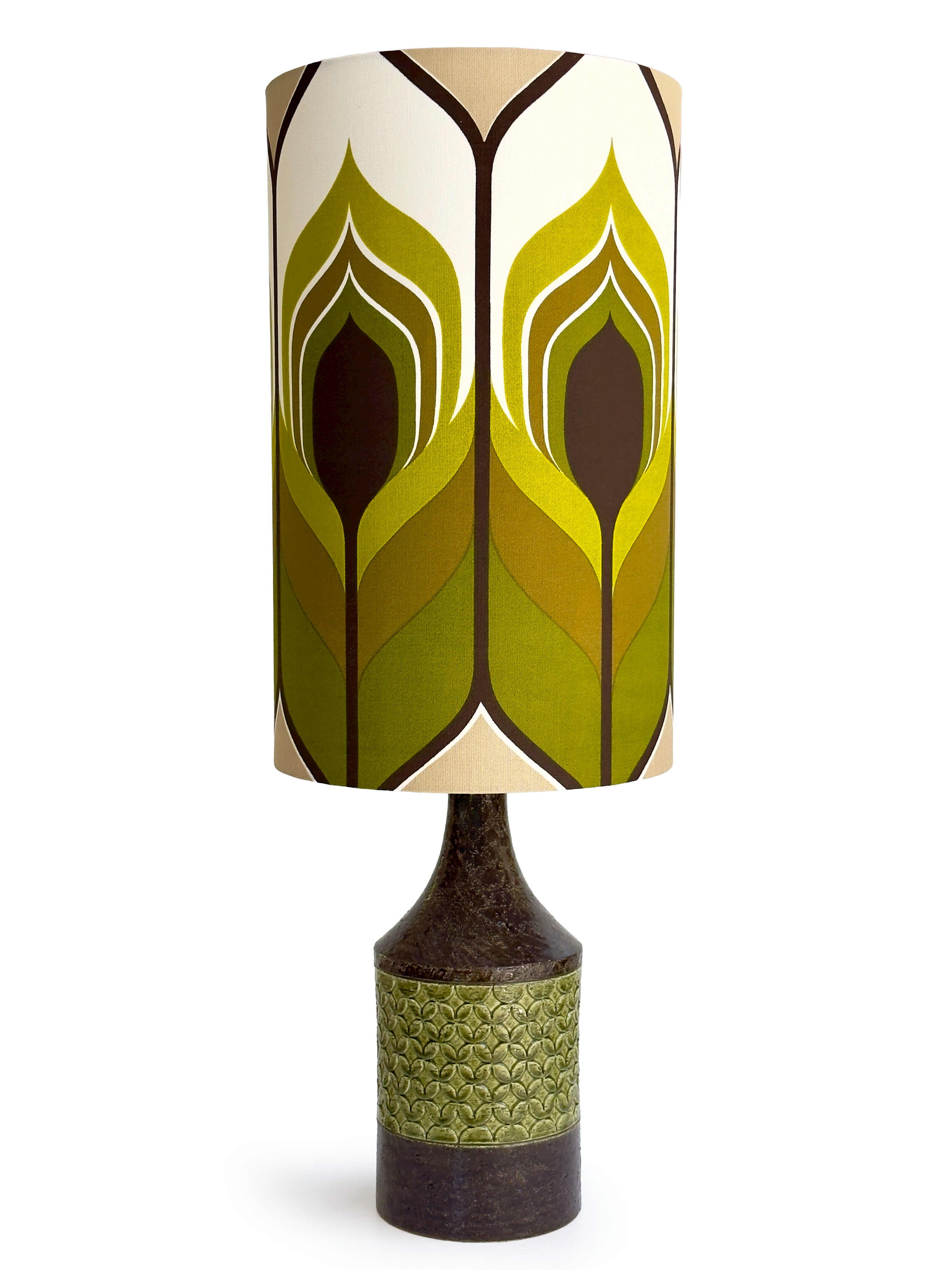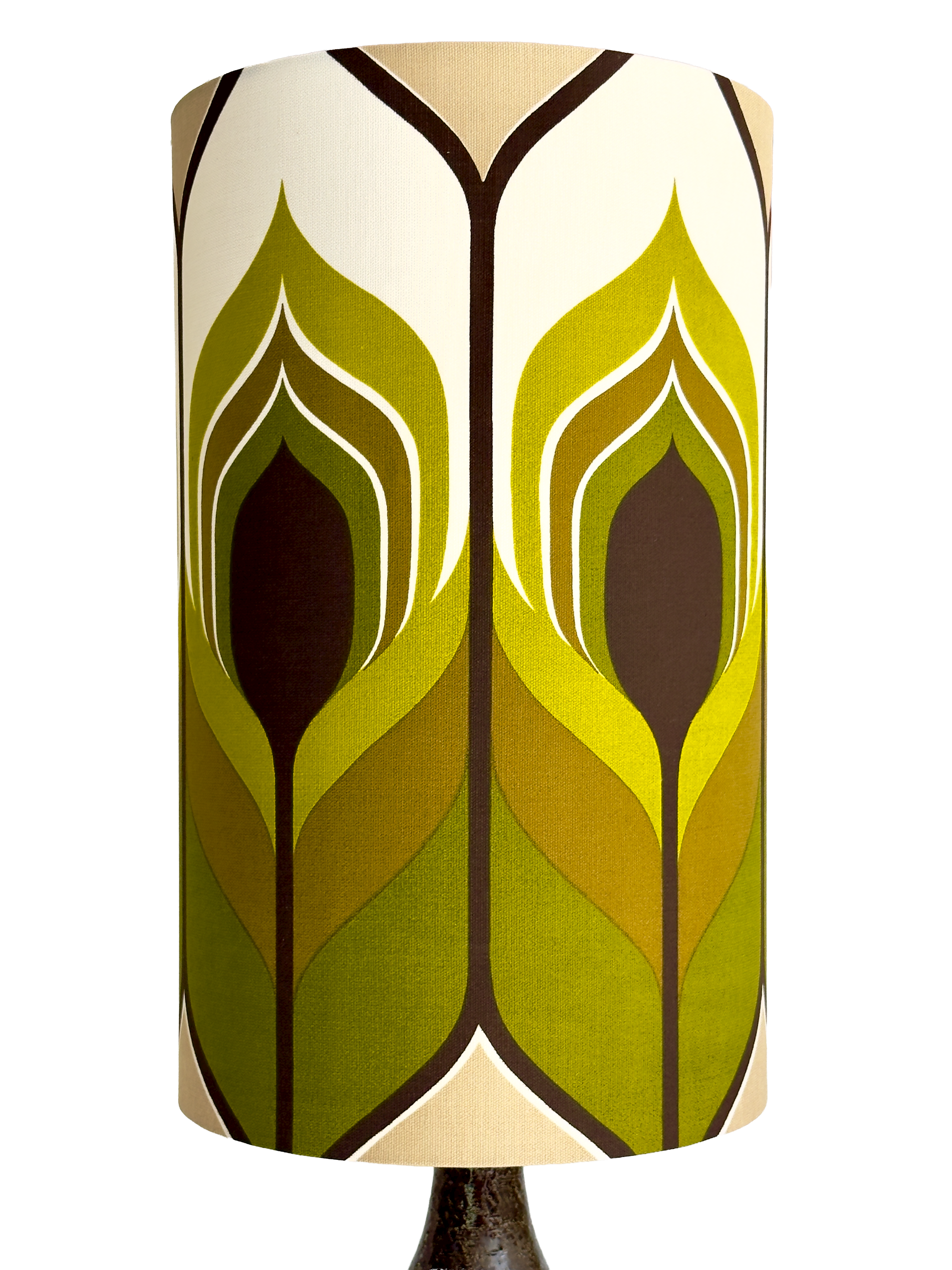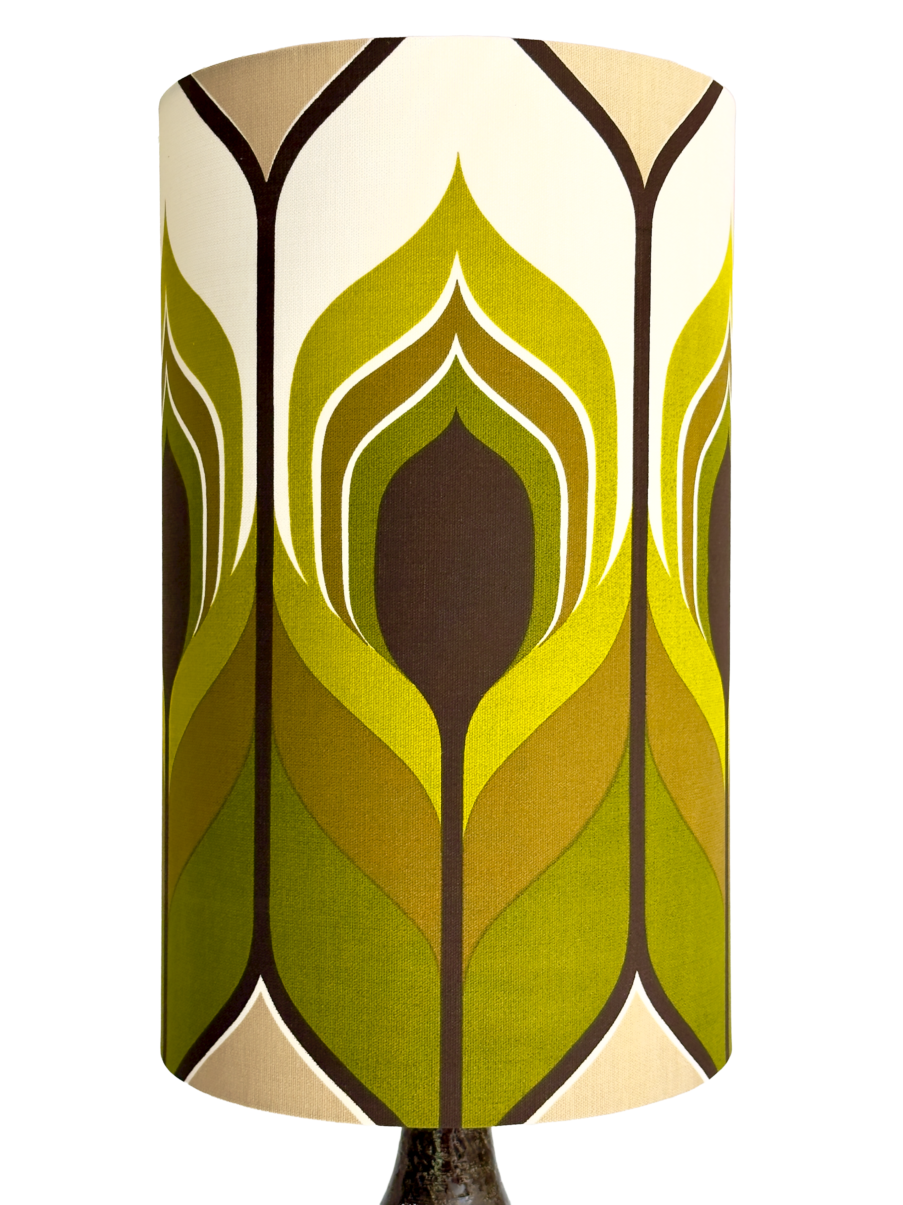 Shade Material Hand-made in-house from premium West German vintage fabric. The pattern can be seen in a couple different ways, as demonstrated in the images.