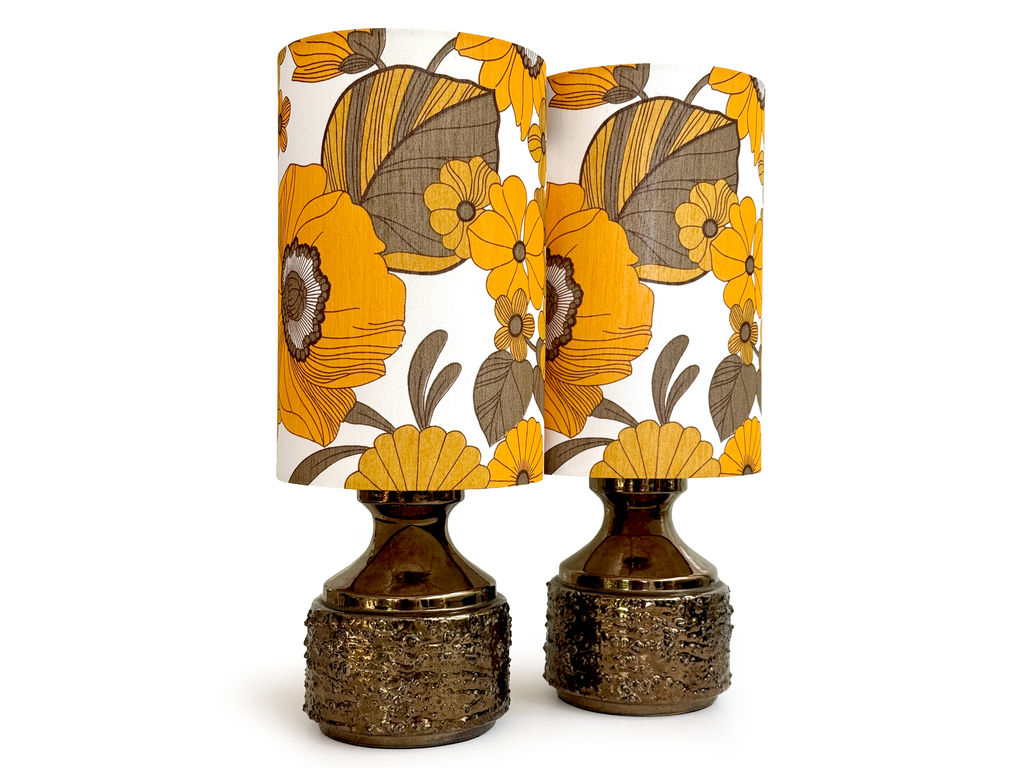Braemore Pottery (Australia) XXL 41" Table Lamp in Purple, with Hand-Made Lampshade (Vintage Fabric)