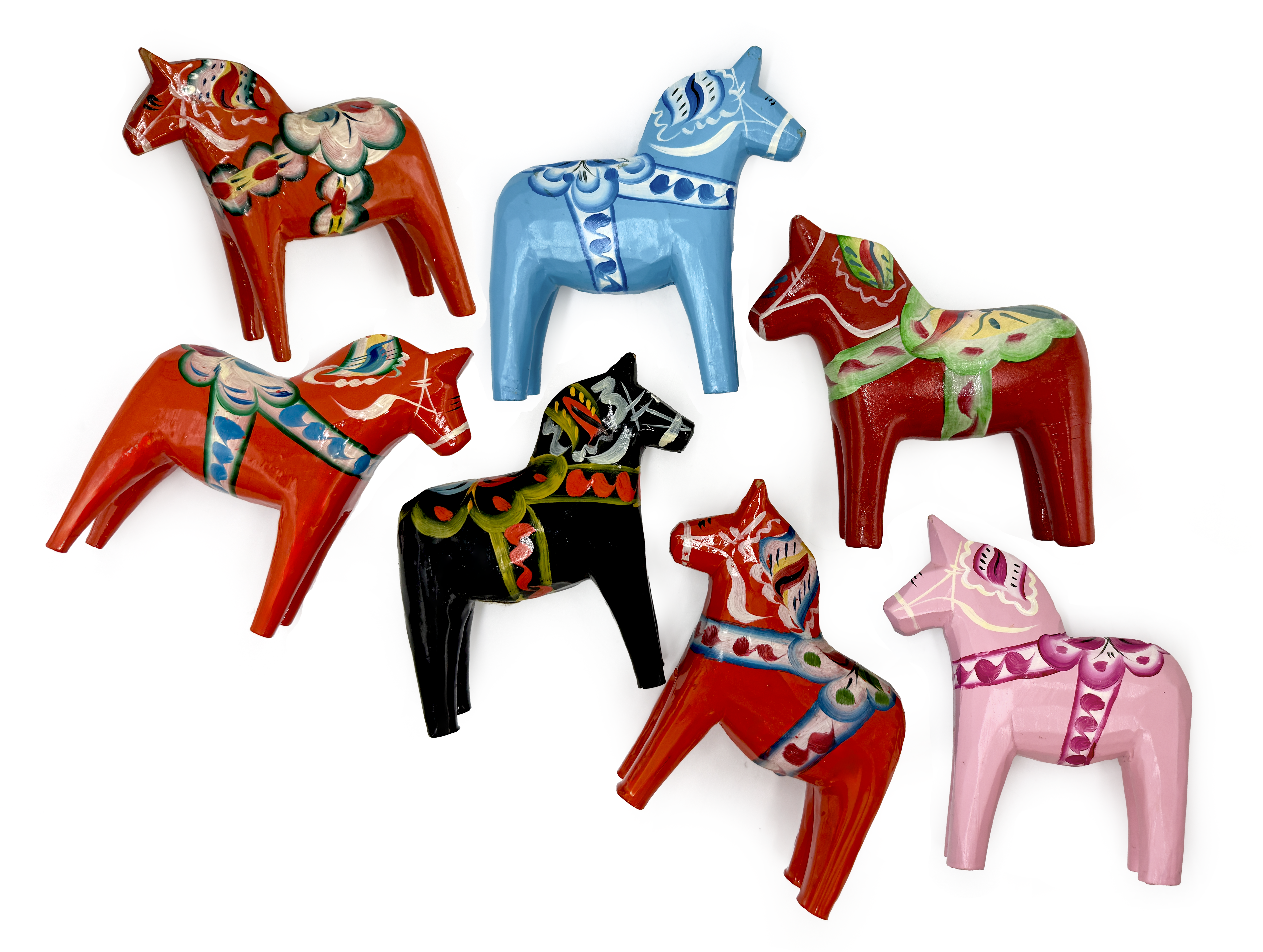 This is how the little wooden horse from Dalarna became a treasured object. These simple wooden horses were later painted in bright colours inspired by the flower patterns painted on furniture and walls in the region.