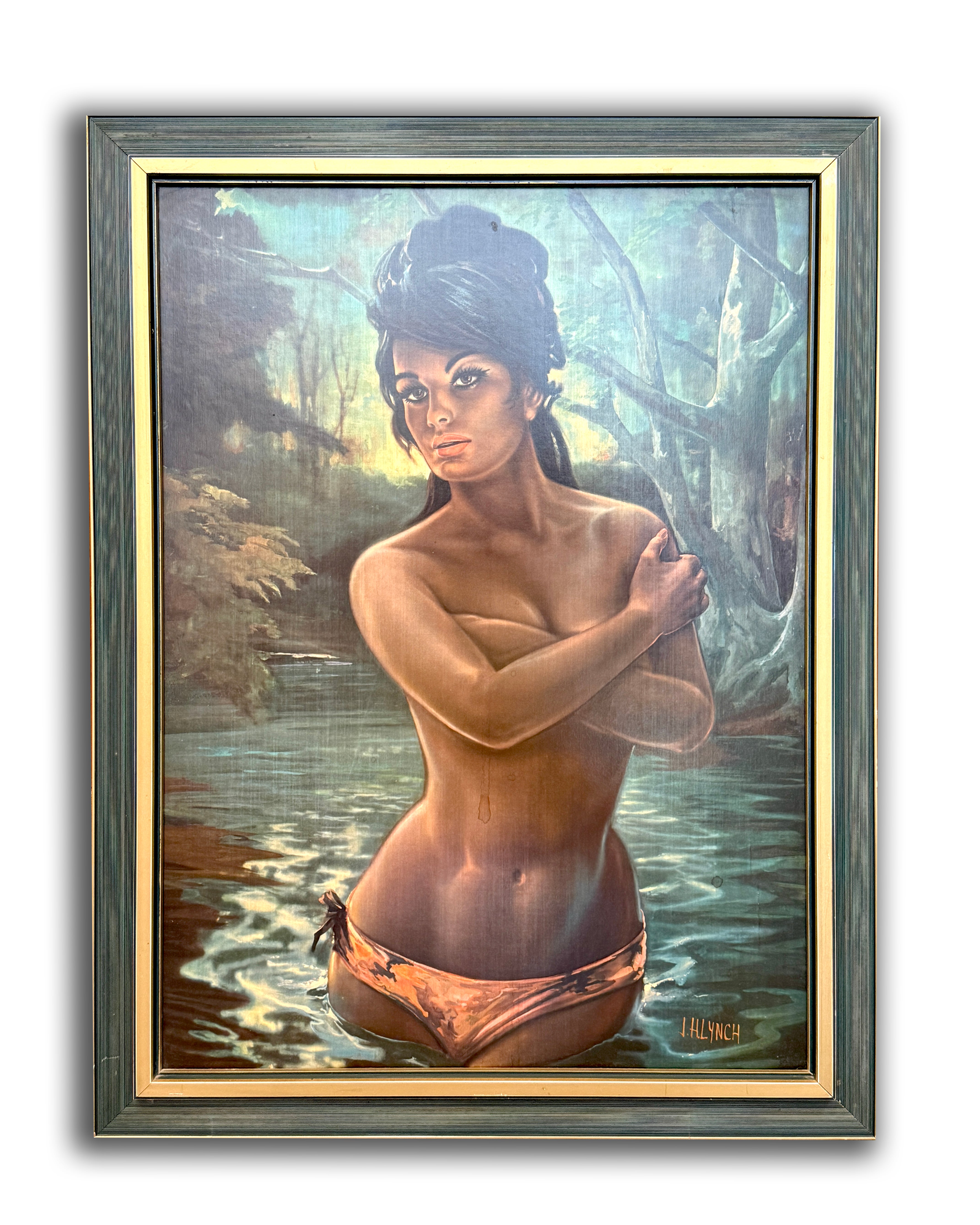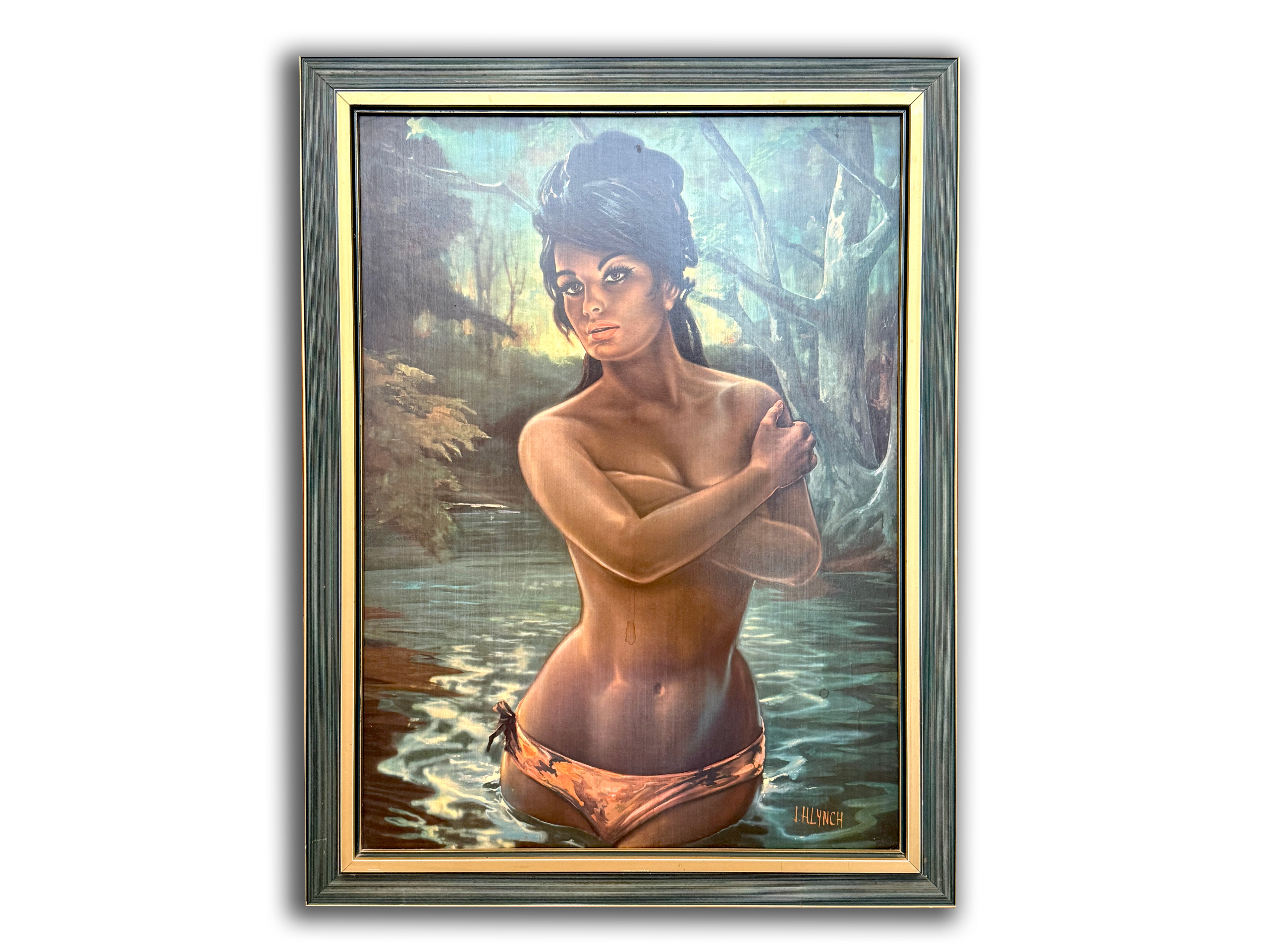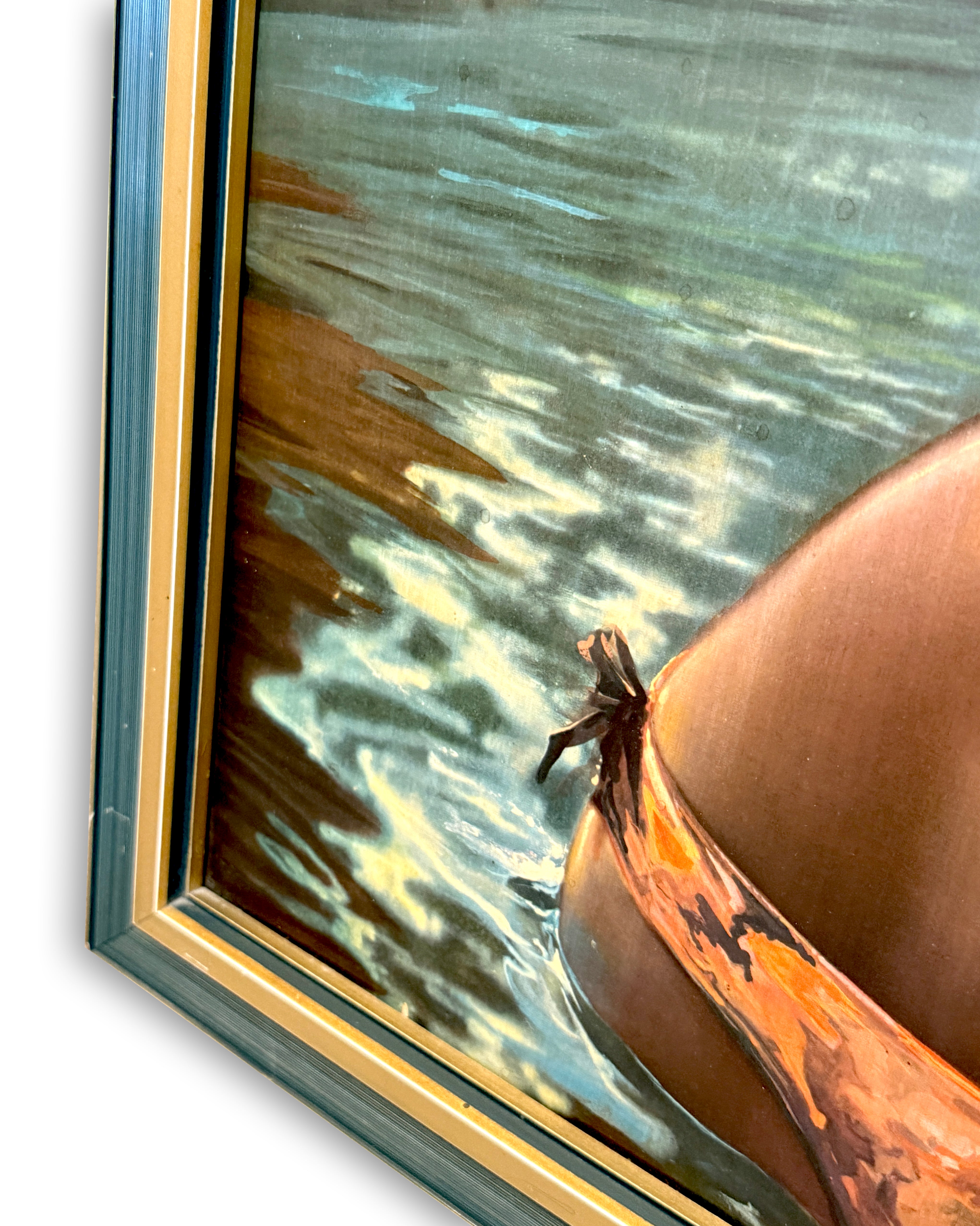 Condition Great to excellent condition. The print colours are bright and strong with no real fading that we can see. The only real wear we can see on the print is a small water mark, near her stomach. The frame shows some light surface wear, commensurate with age.