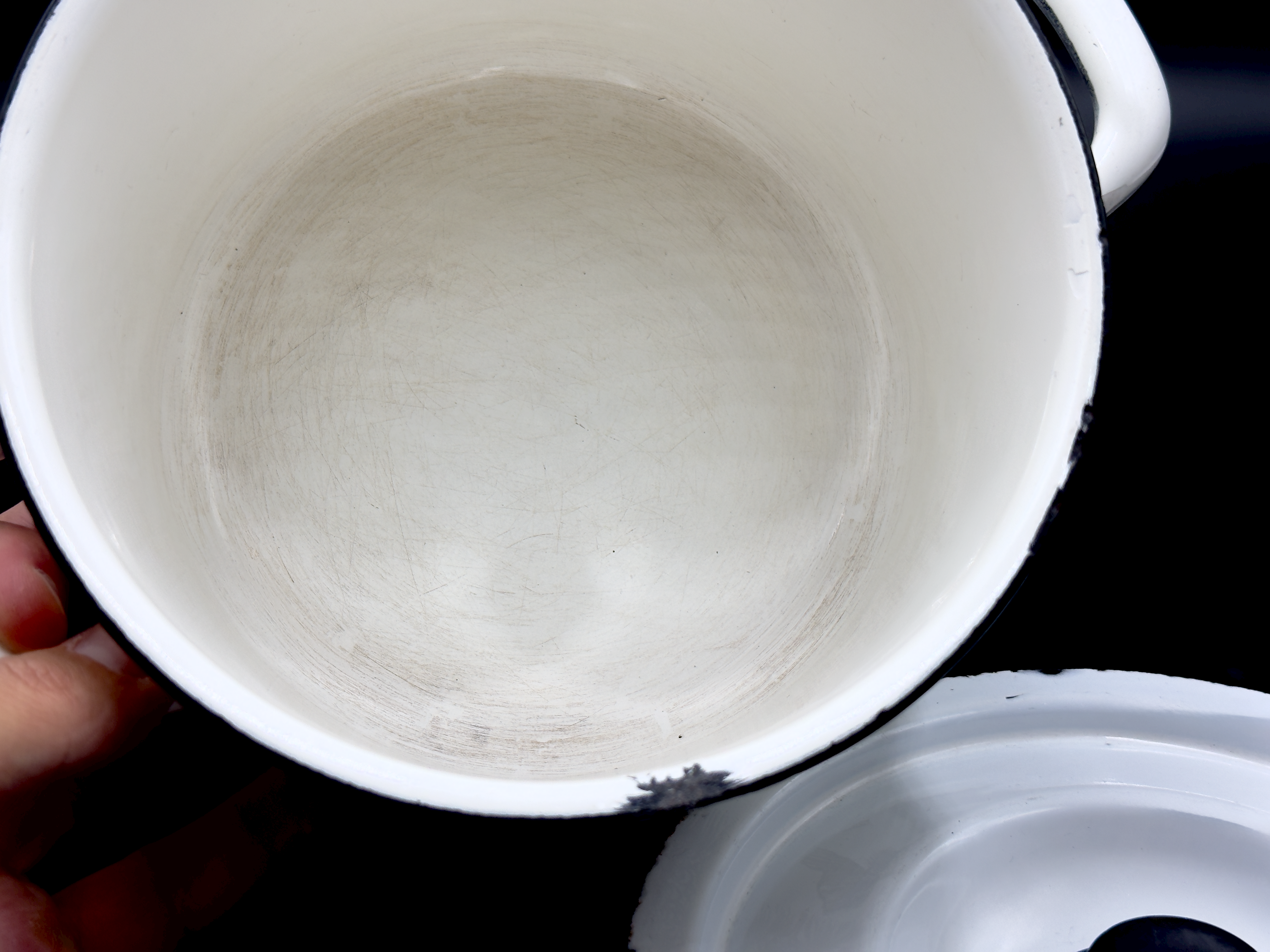 Finel (Finland) 'Neptun' in White, Small Enamel Pot | Designed by Esteri Tomula *RARE FIND*