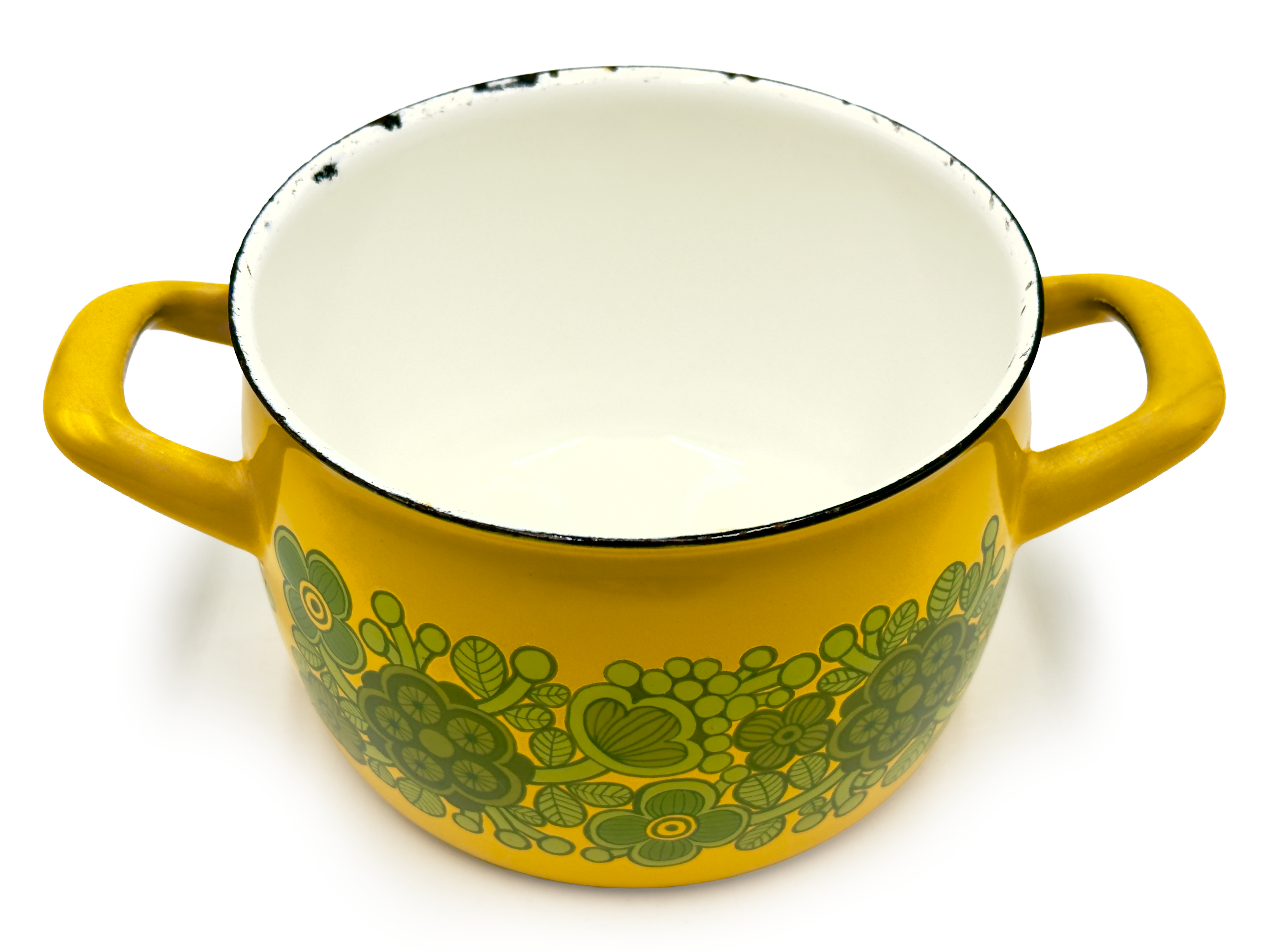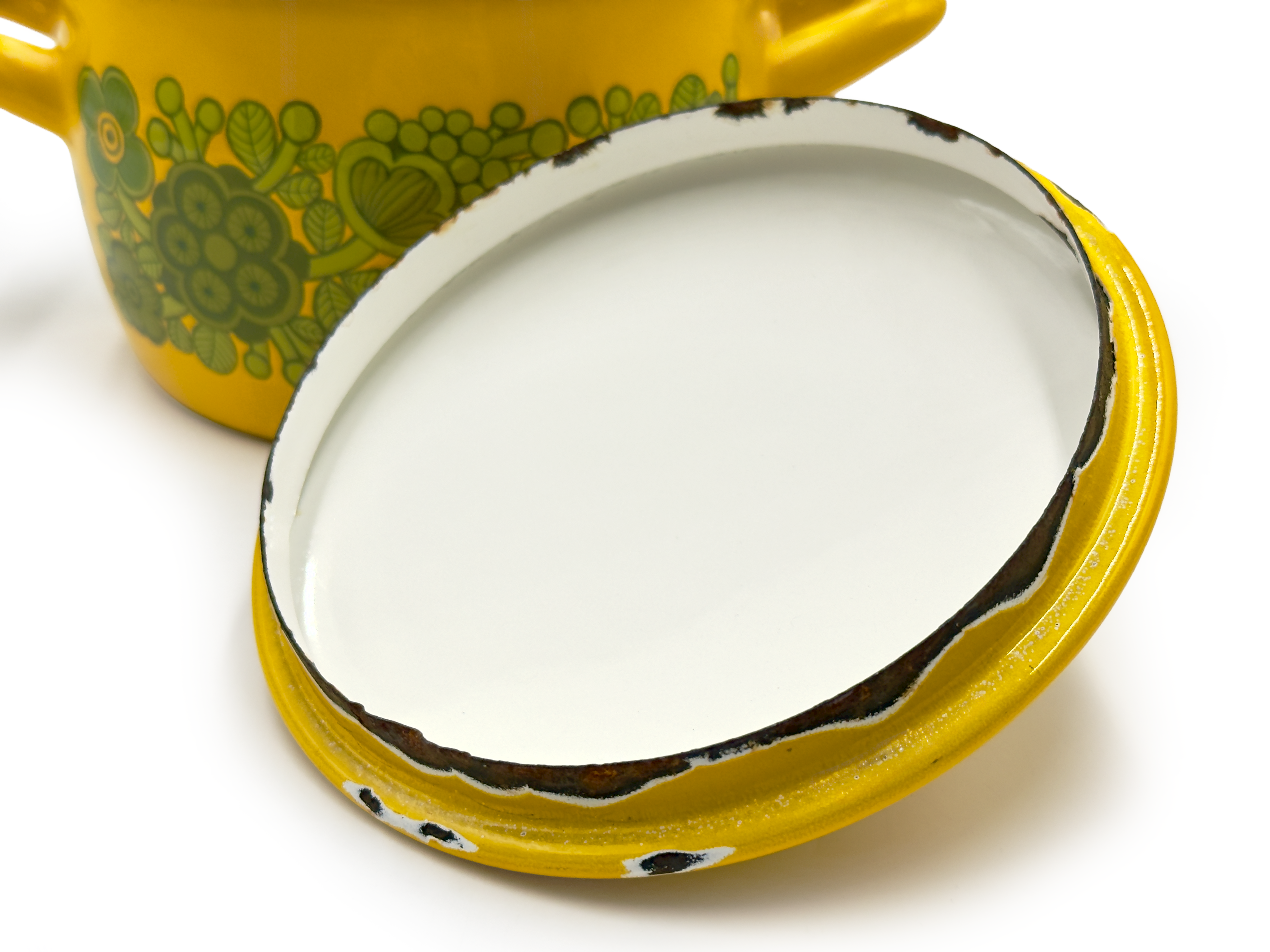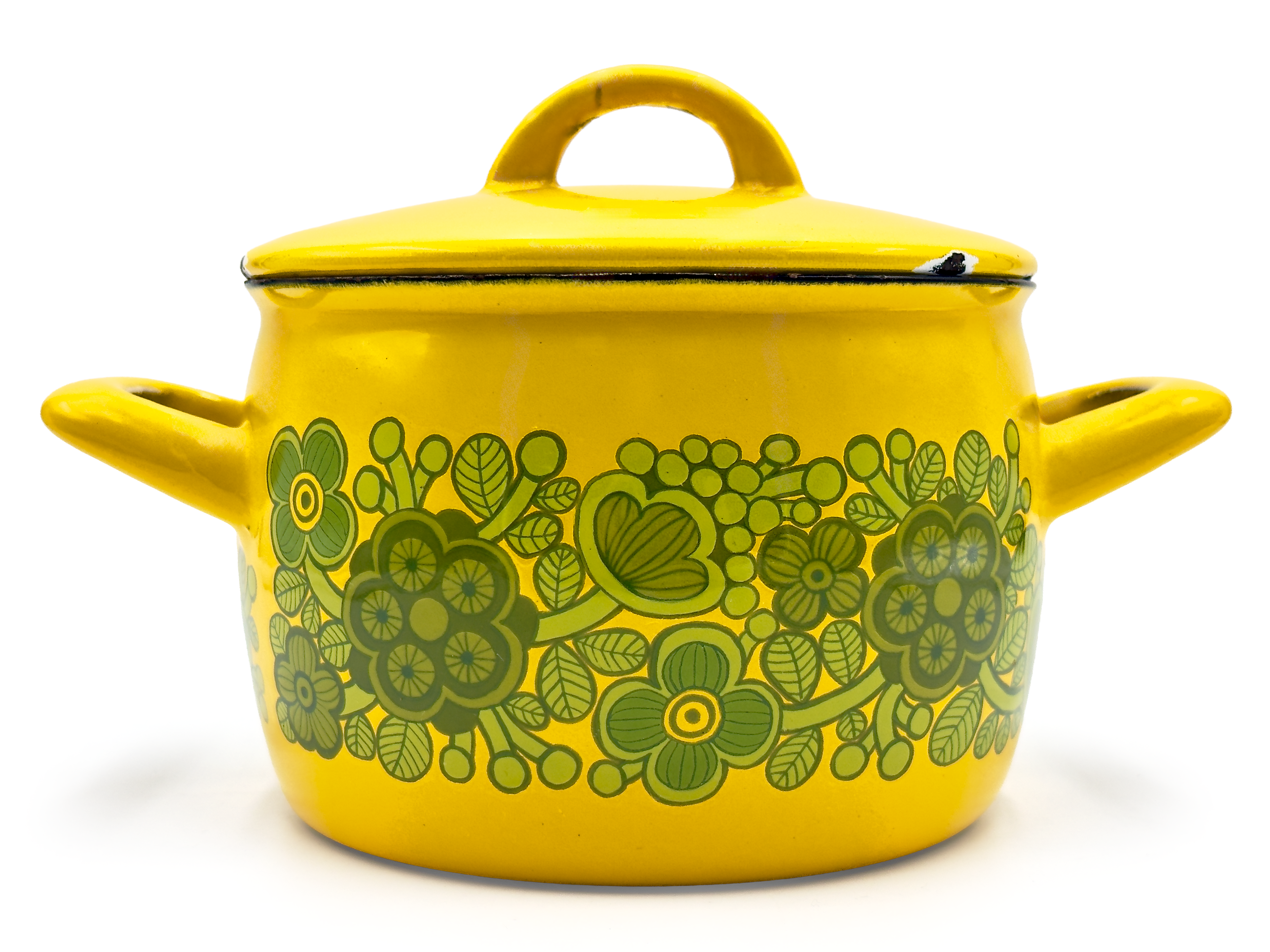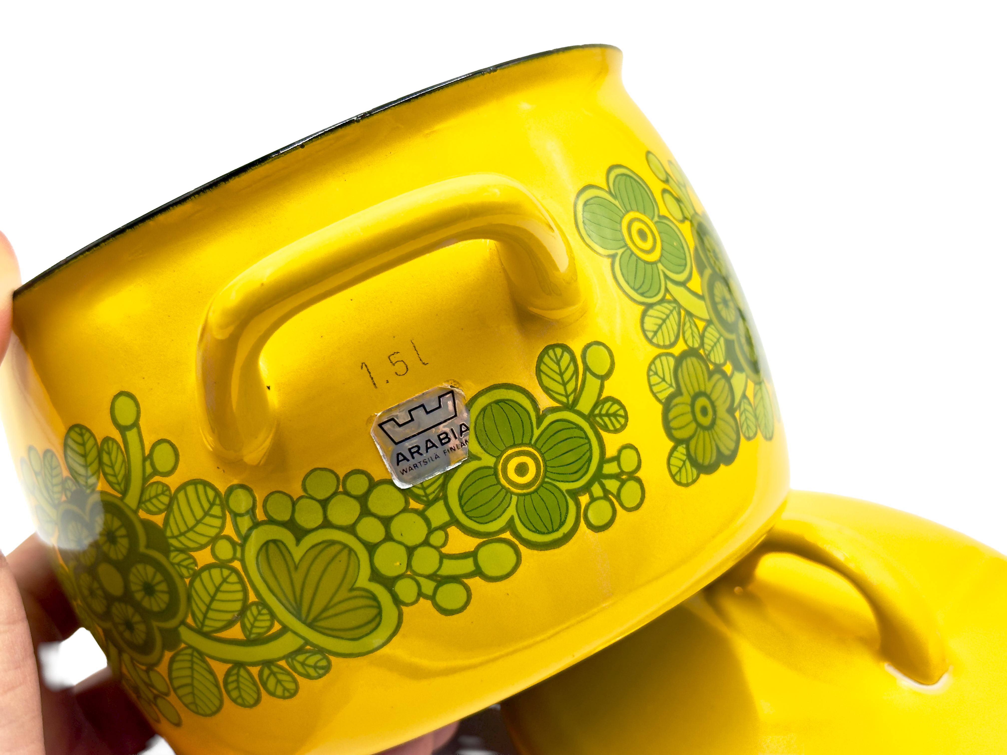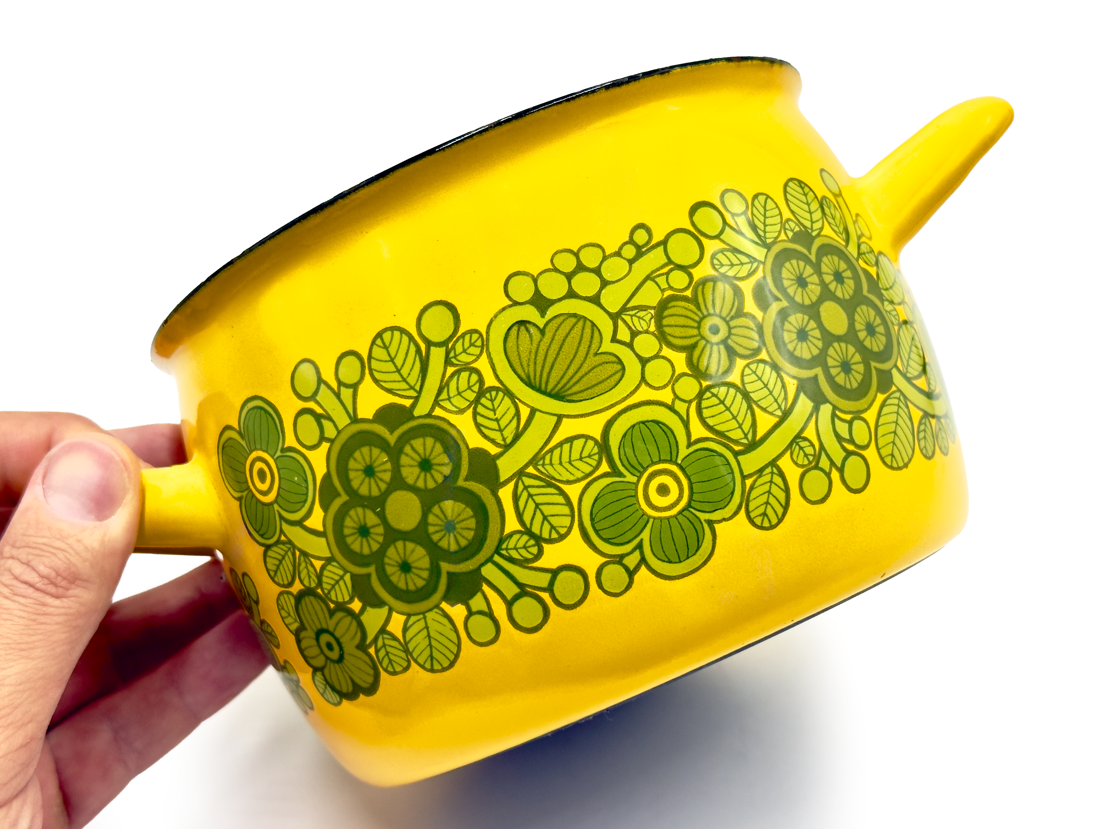 Finel (Finland) 'Primavera' in Yellow/Green, 1.5L Enamel Pot *RARE FIND*