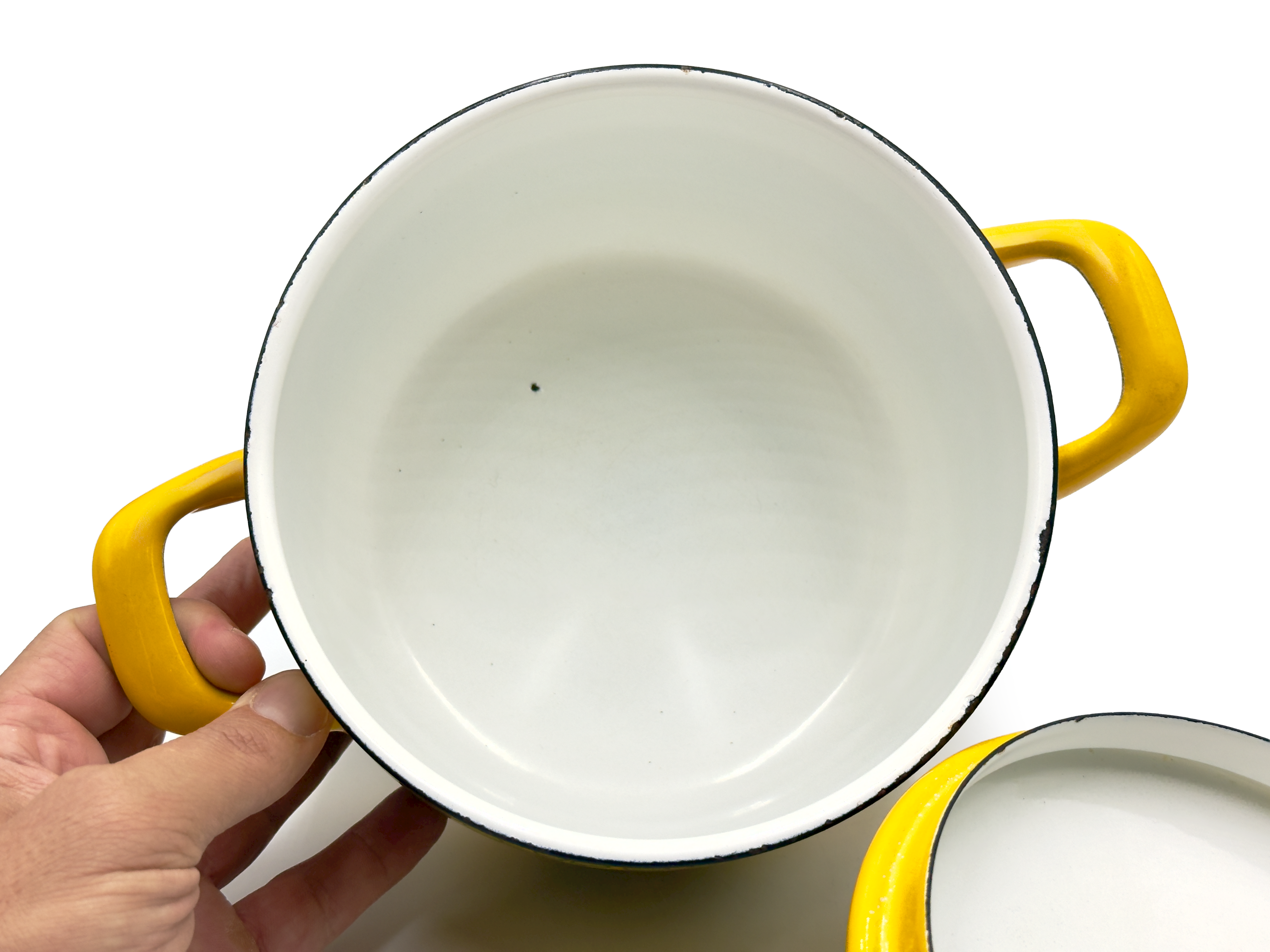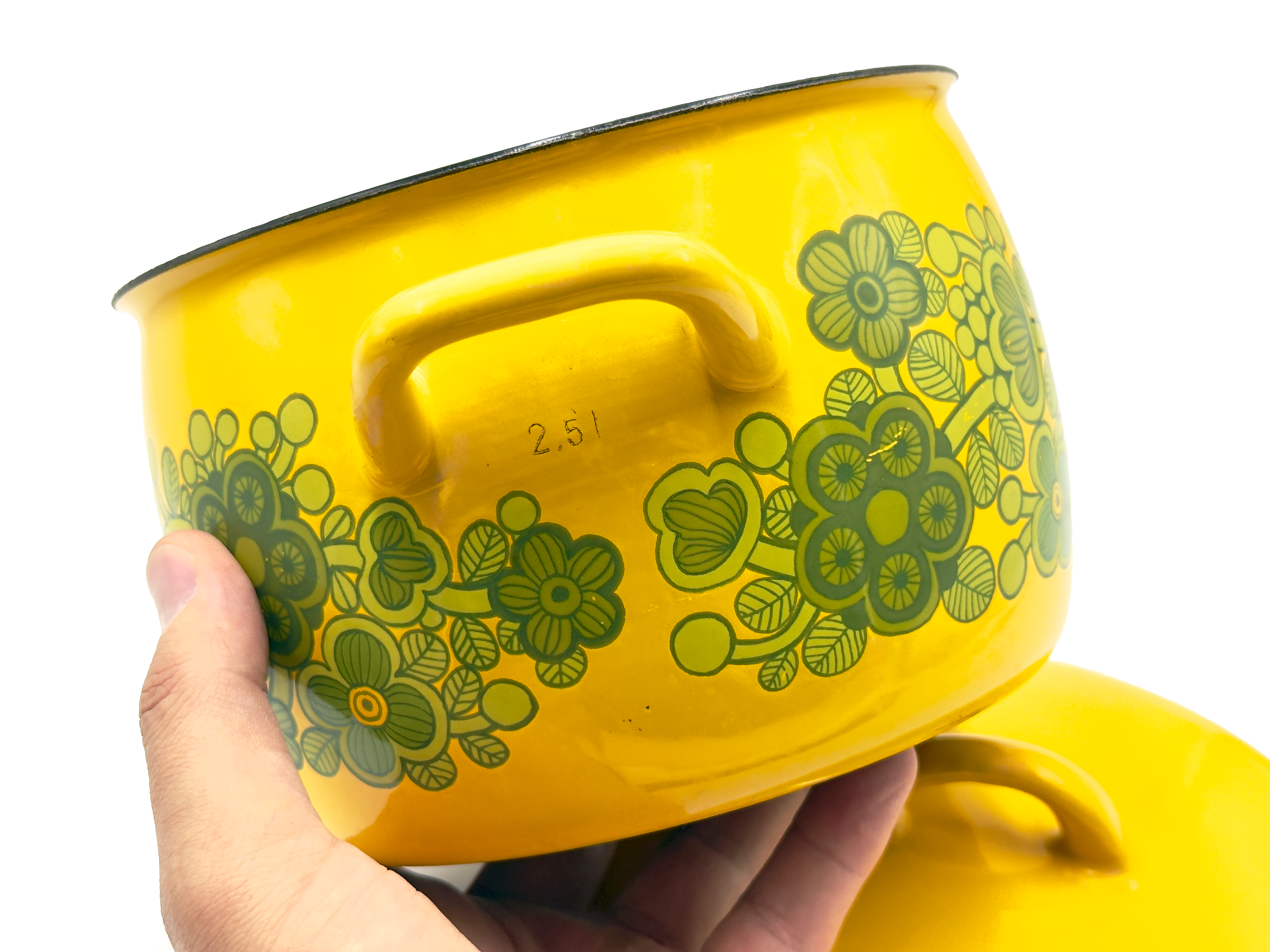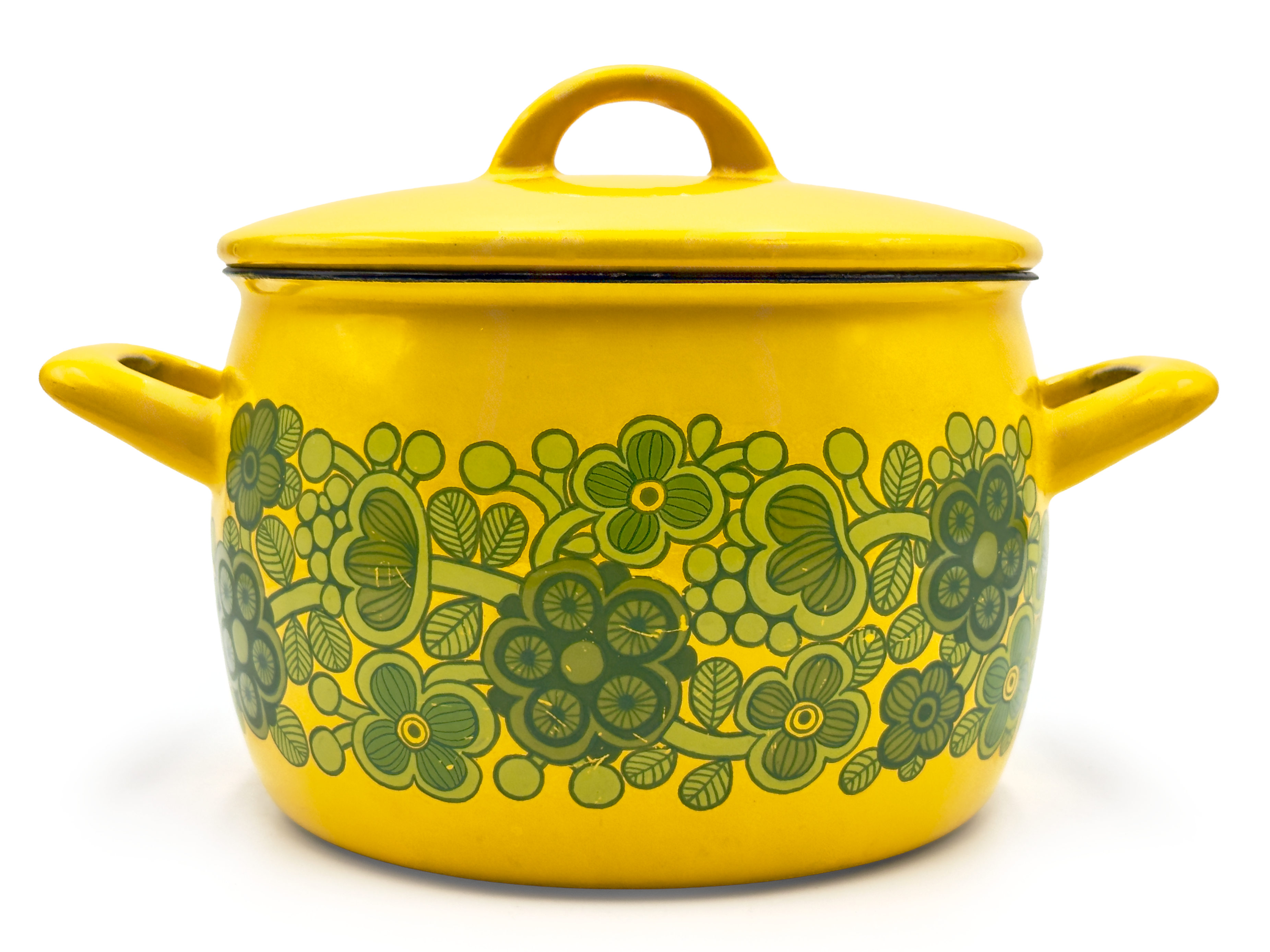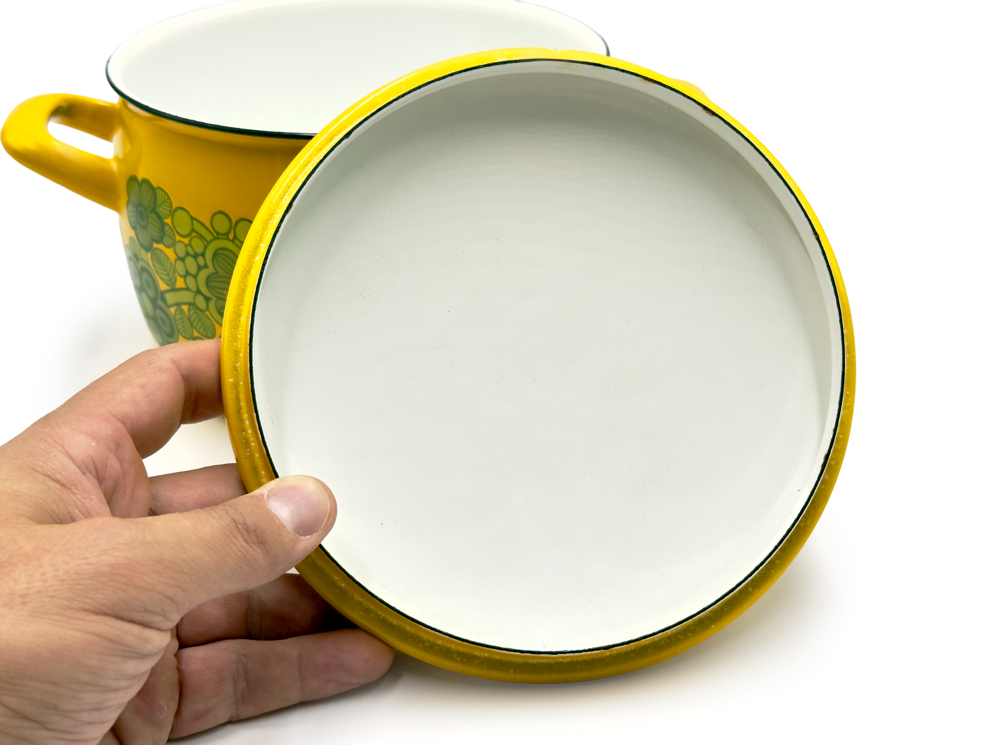 Condition Great to excellent vintage condition. There is little wear on this piece, with one small chip to the enamel inside the pot, and a small amount of light scratches to the pattern externally. All as per the images.