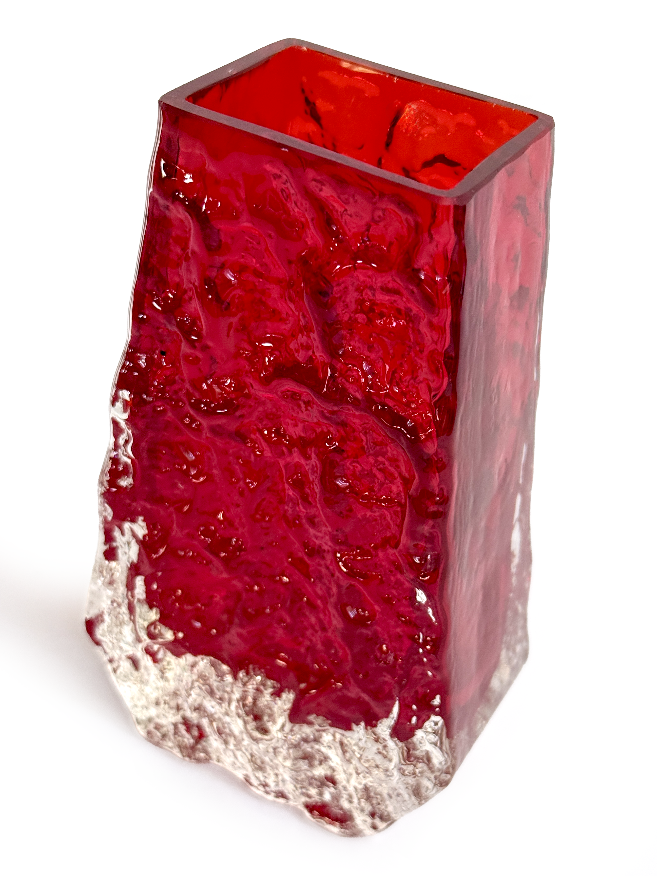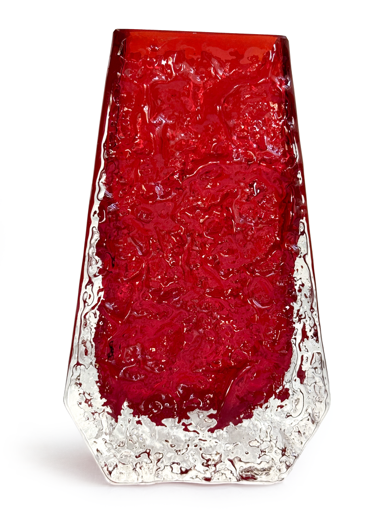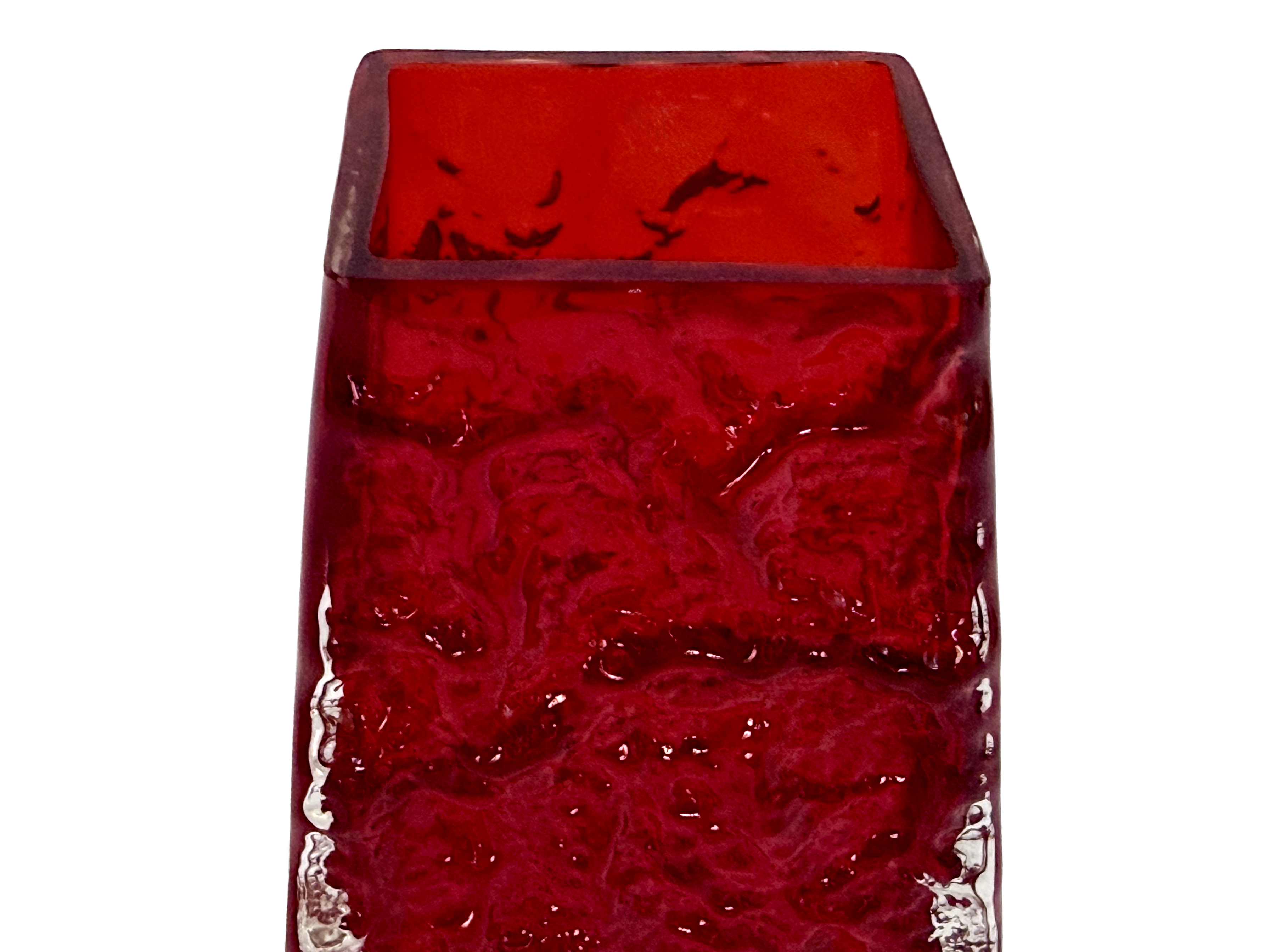 Whitefriars (England) 'Coffin' 5" Vase in Ruby, Model #9686 | Designed by Geoffrey Baxter