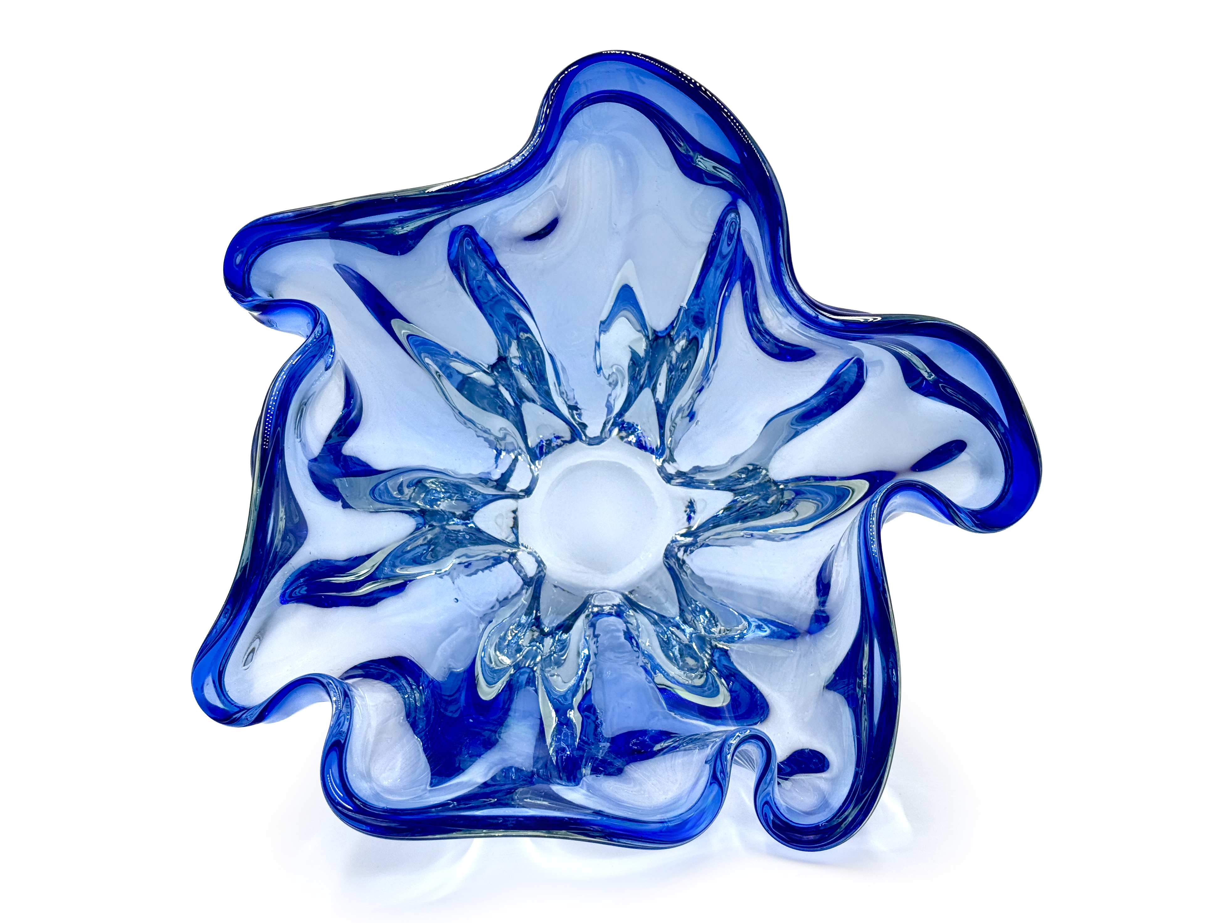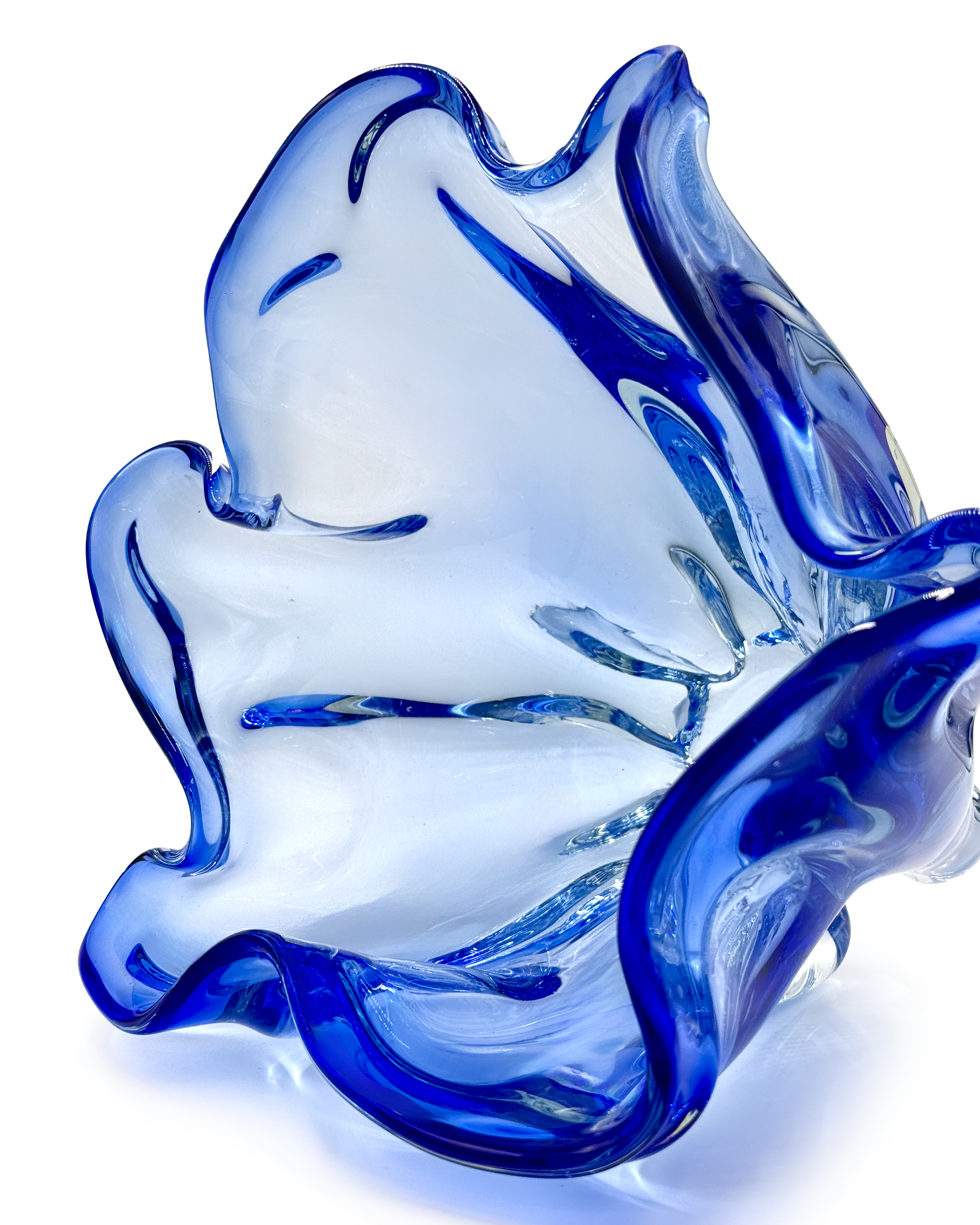 Whilst we know this piece was made in Japan simply by the style of glass, we're yet to identify the manufacturer - although it is possible that it was made by Iwatsu Glass Co, from their Hineri range.