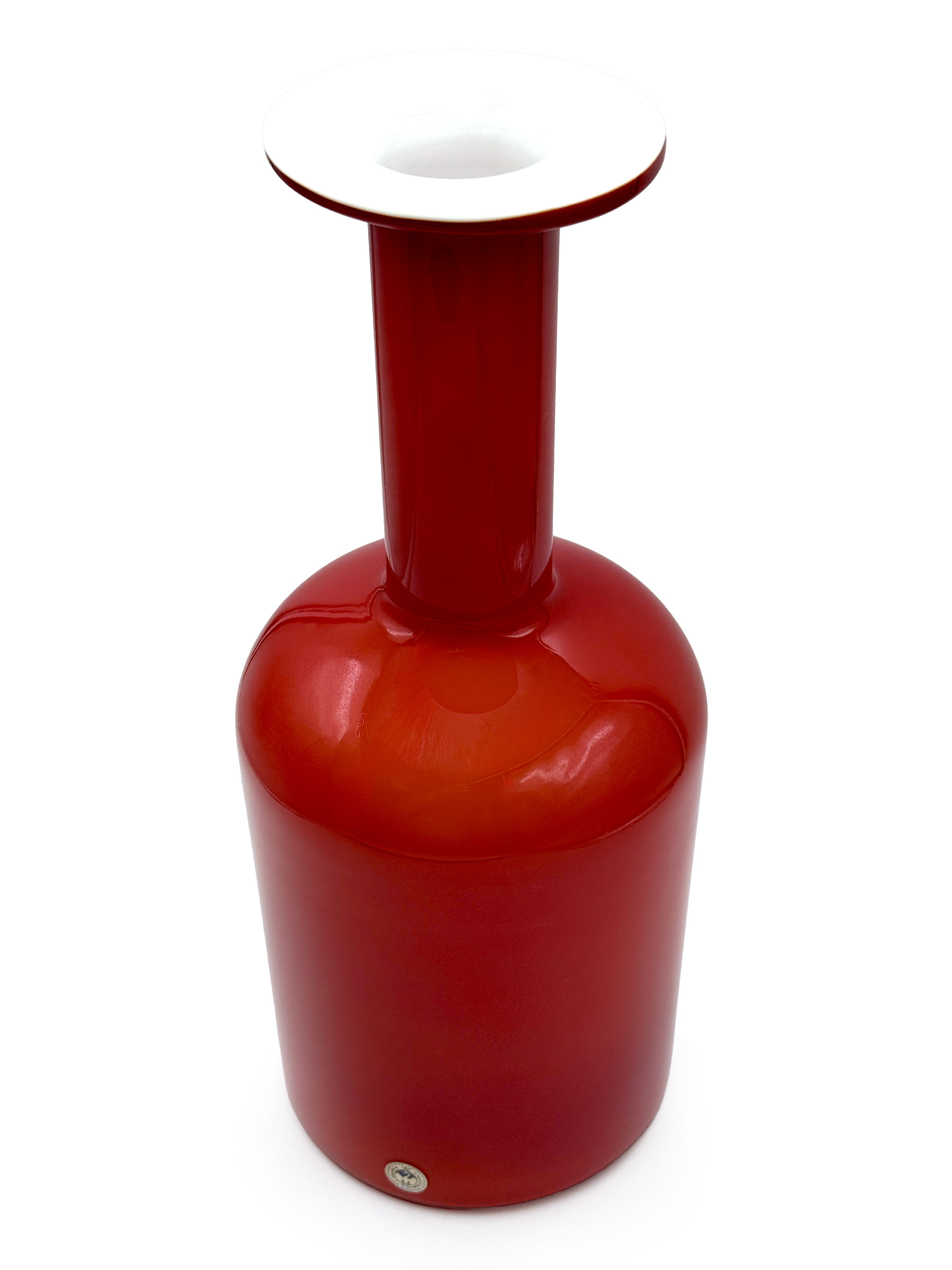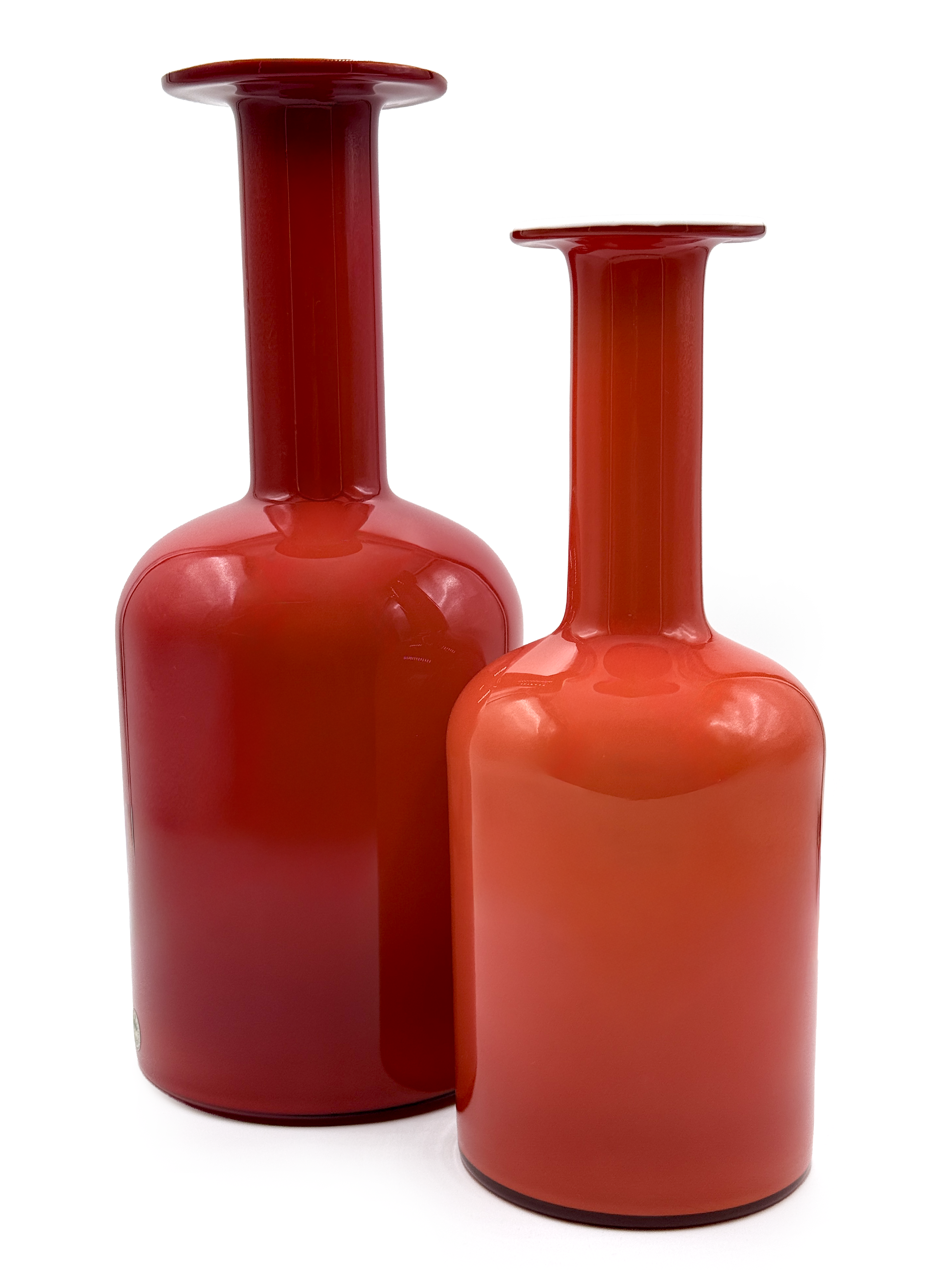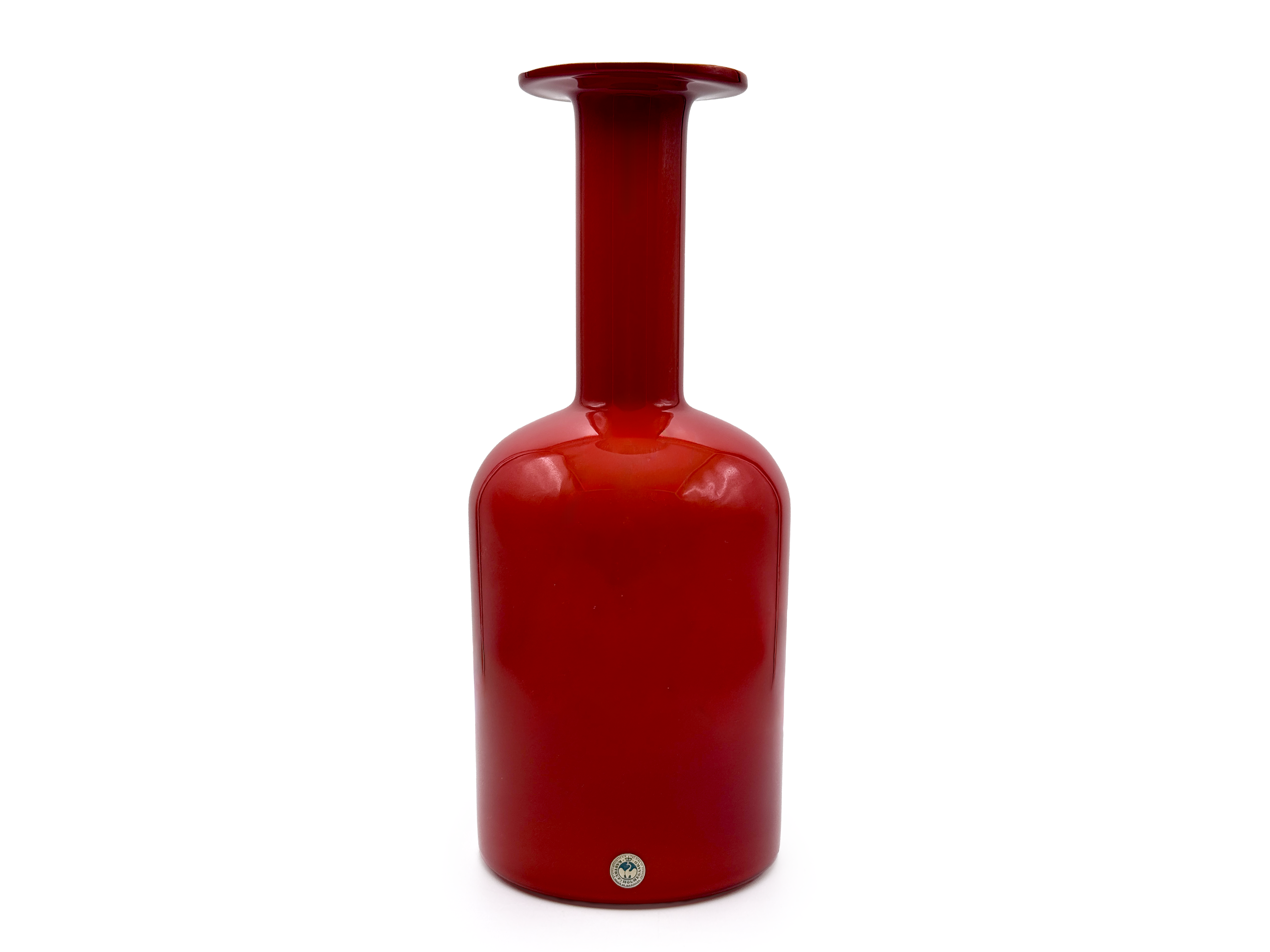 The vases were designed in 1962 in a selection of bottle forms and a limited number of colours including amber, cobalt blue and olive green. There were five sizes in total ranging from 26cm (10") to 52cm (20.5") in height.