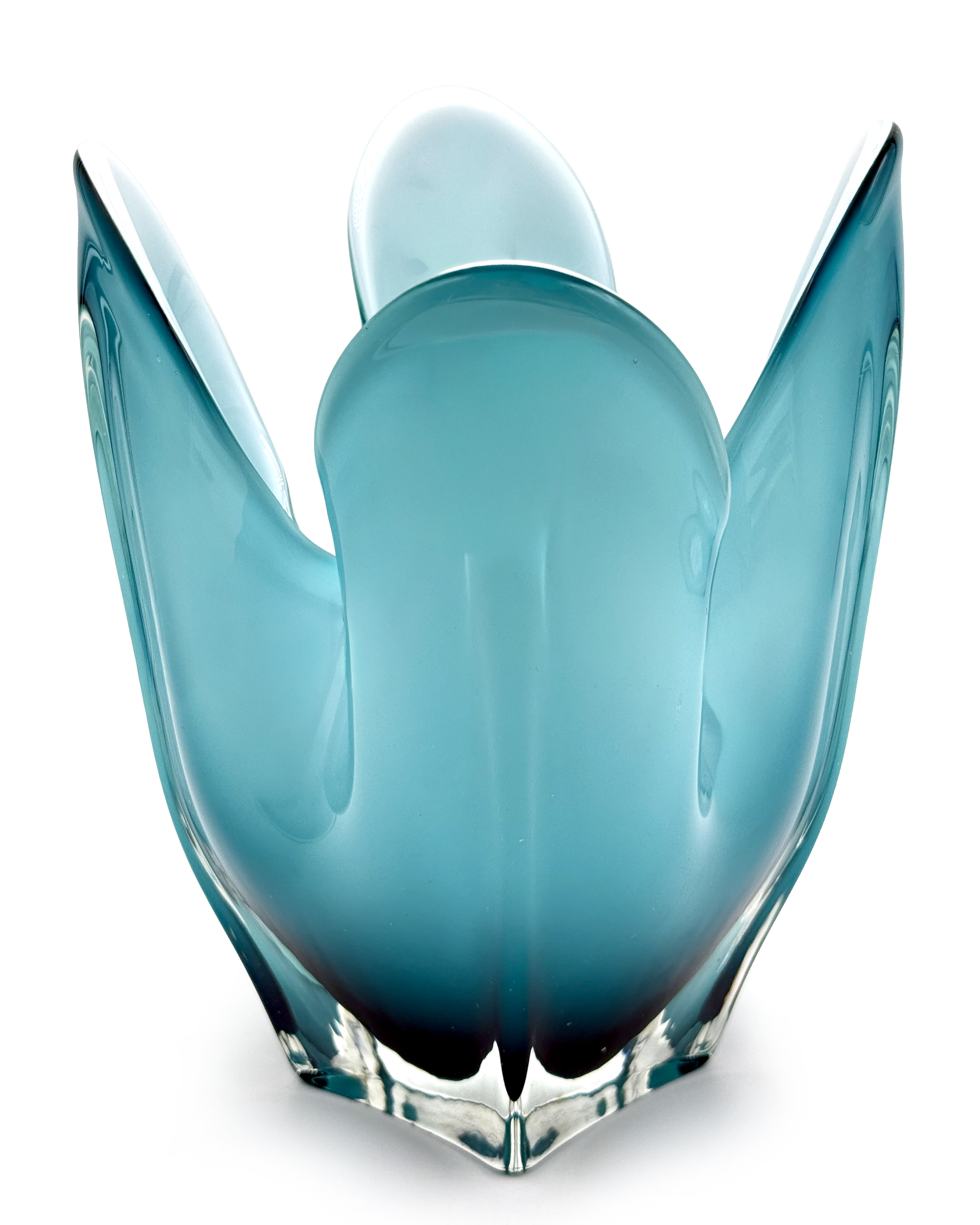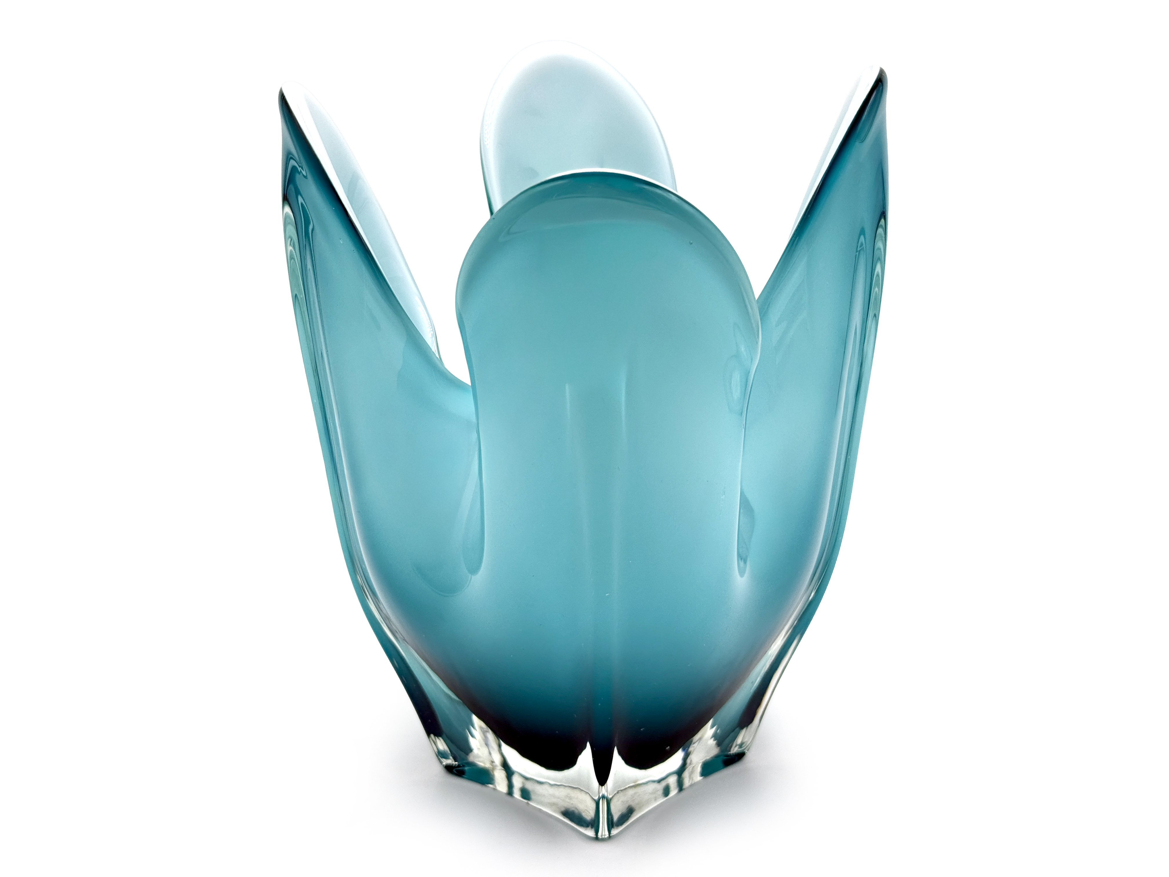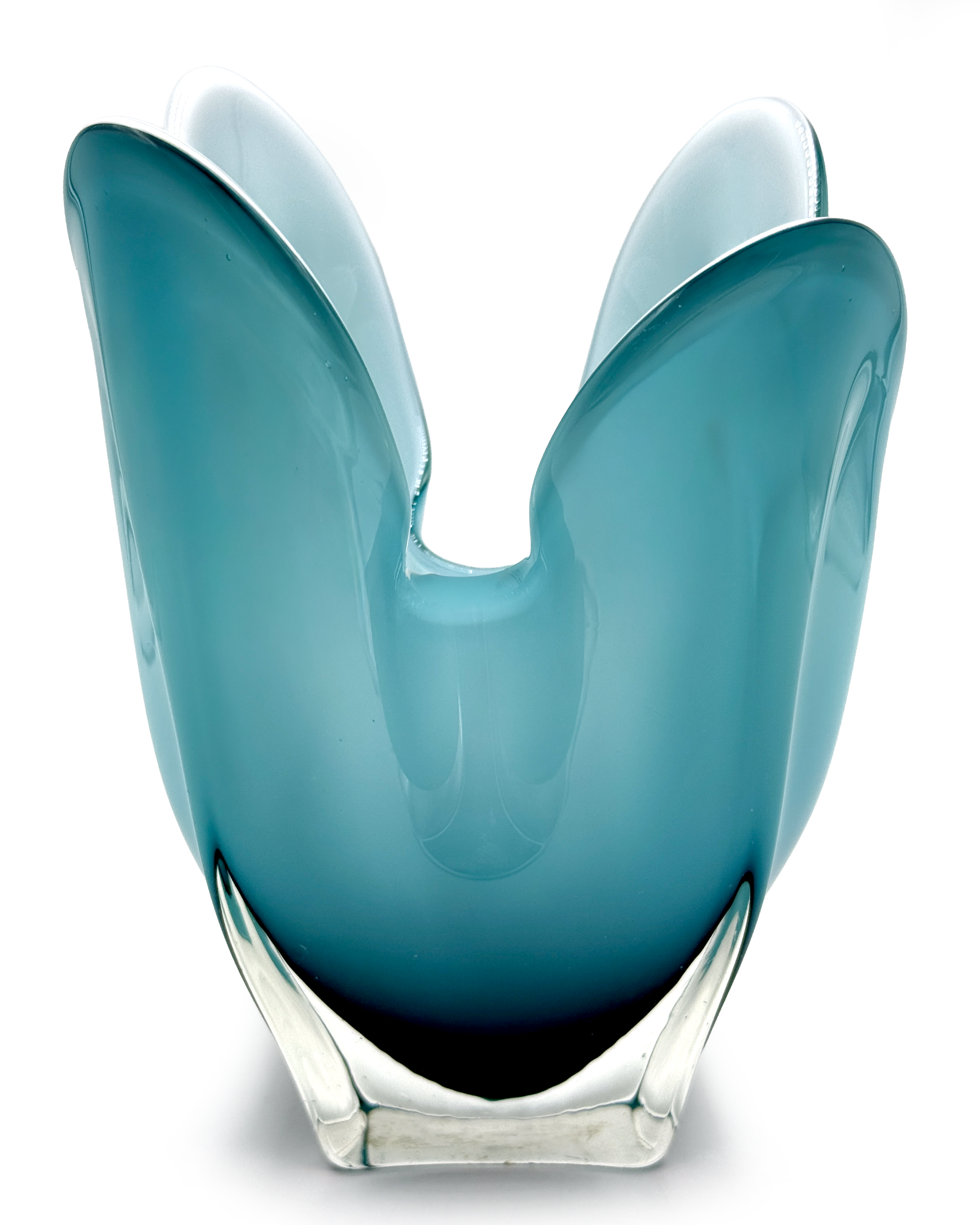 Iwatsu Glass (Japan) from their Hineri range | Art Glass 8" Handkerchief Vase/Centrepiece, in Turquoise