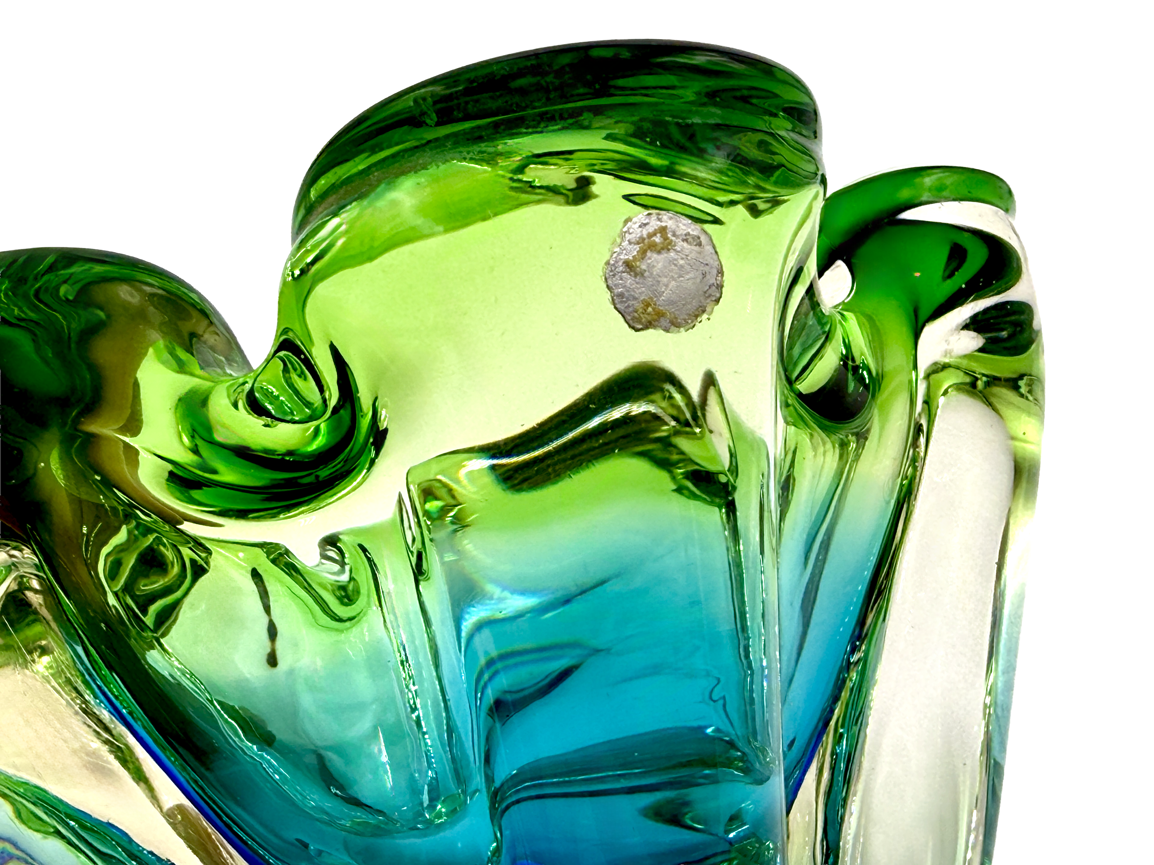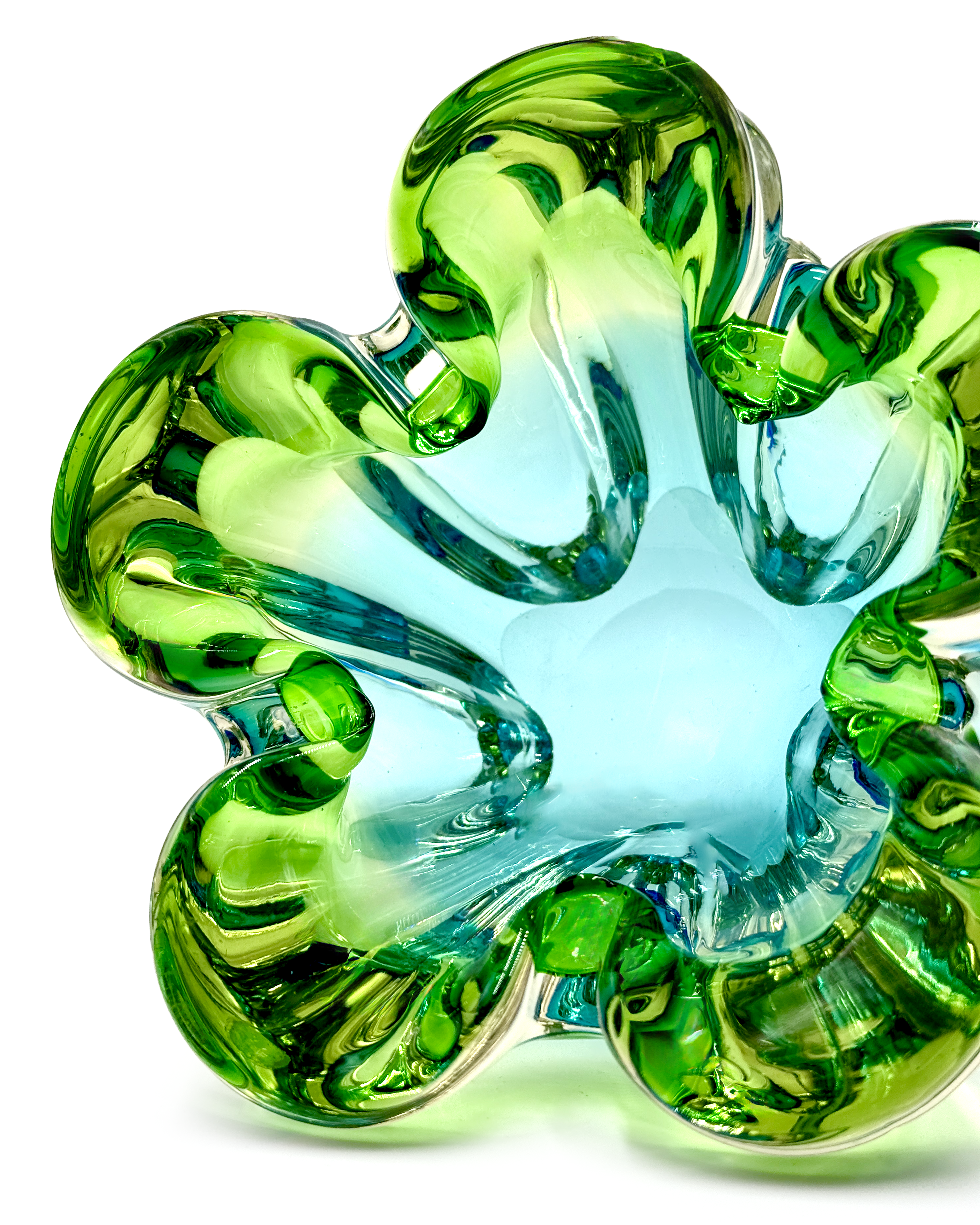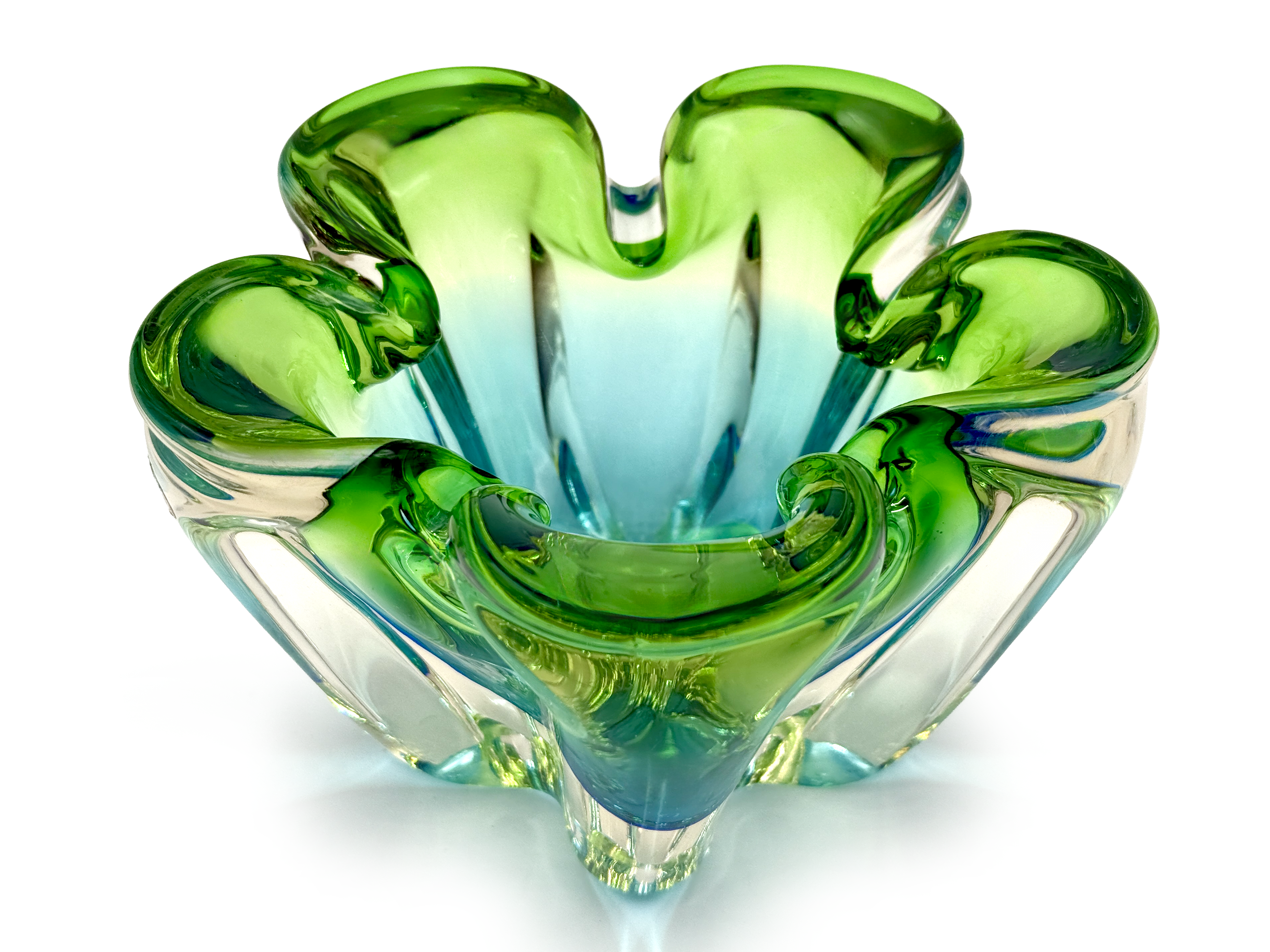 Sanyu Glass (Japan) Art Glass 6" Ashtray/Bowl, in Lime/Turquoise