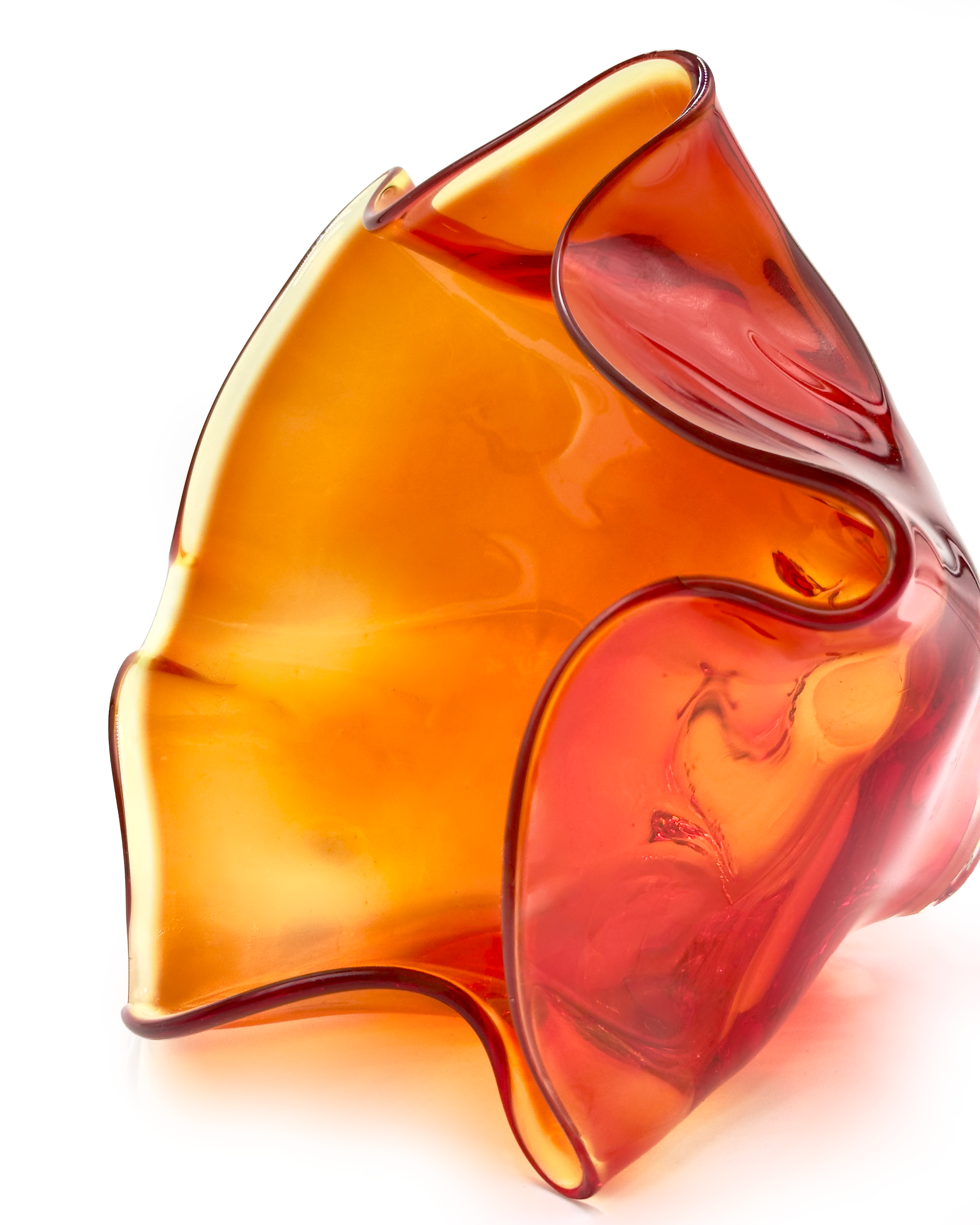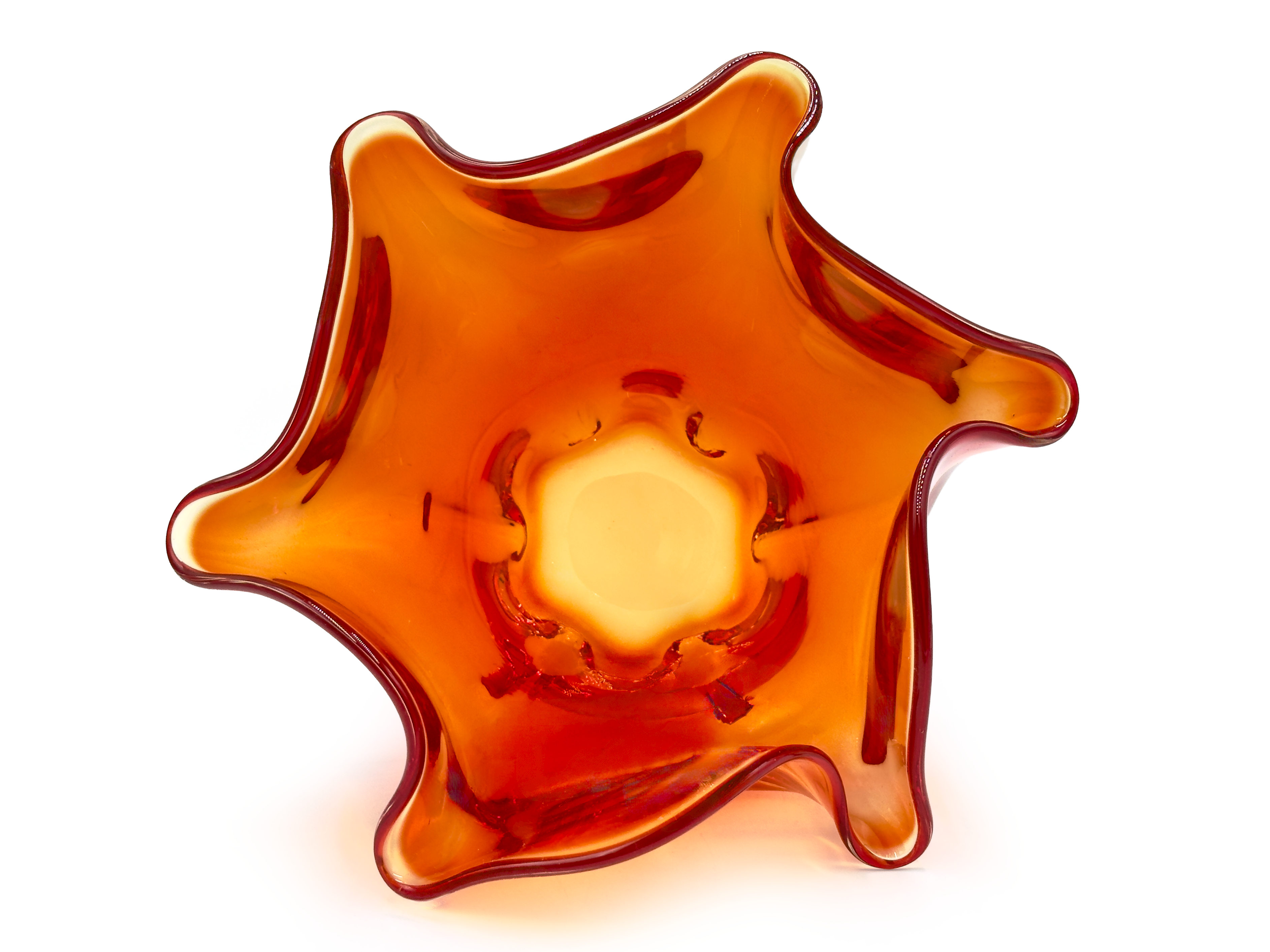 Whilst we know this piece was made in Japan simply by the style of glass, we're yet to identify the manufacturer - although it is possible that it was made by Iwatsu Glass Co, from their Hineri range.