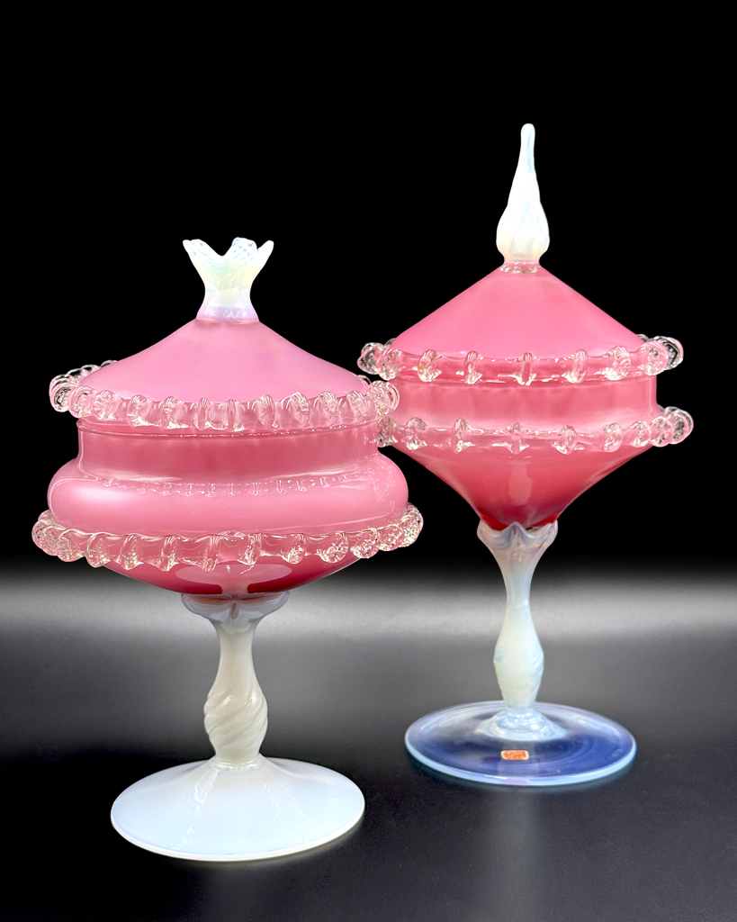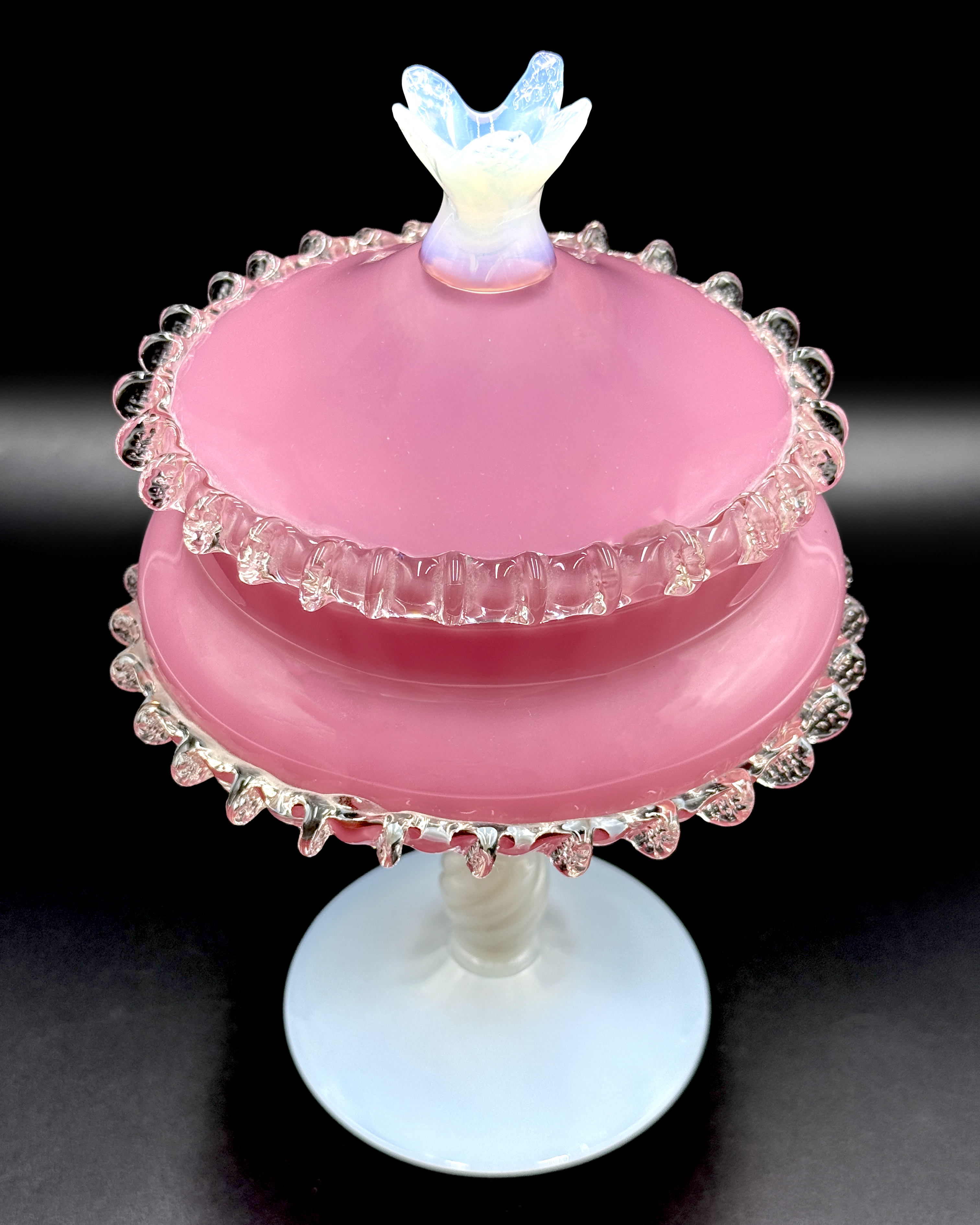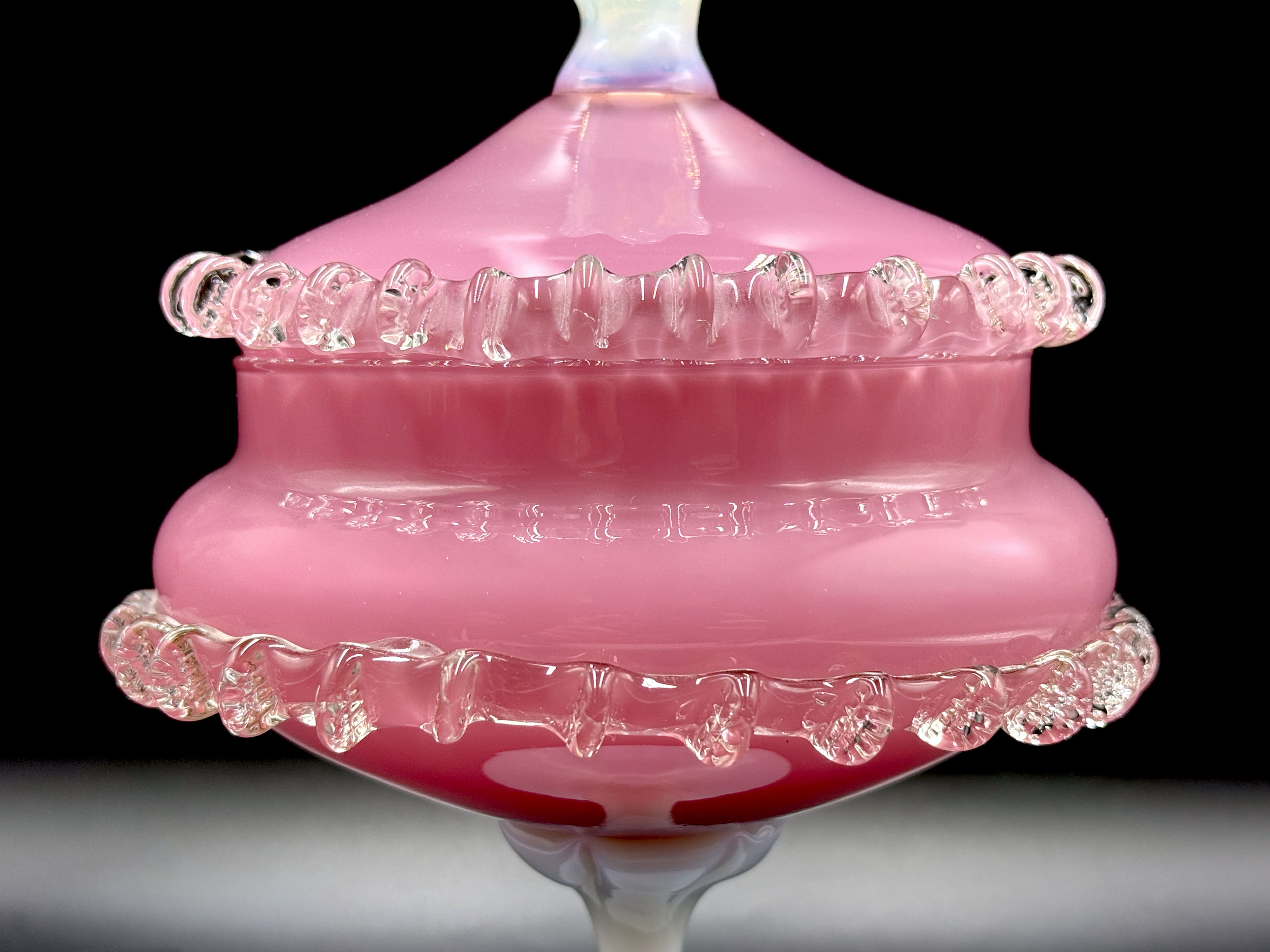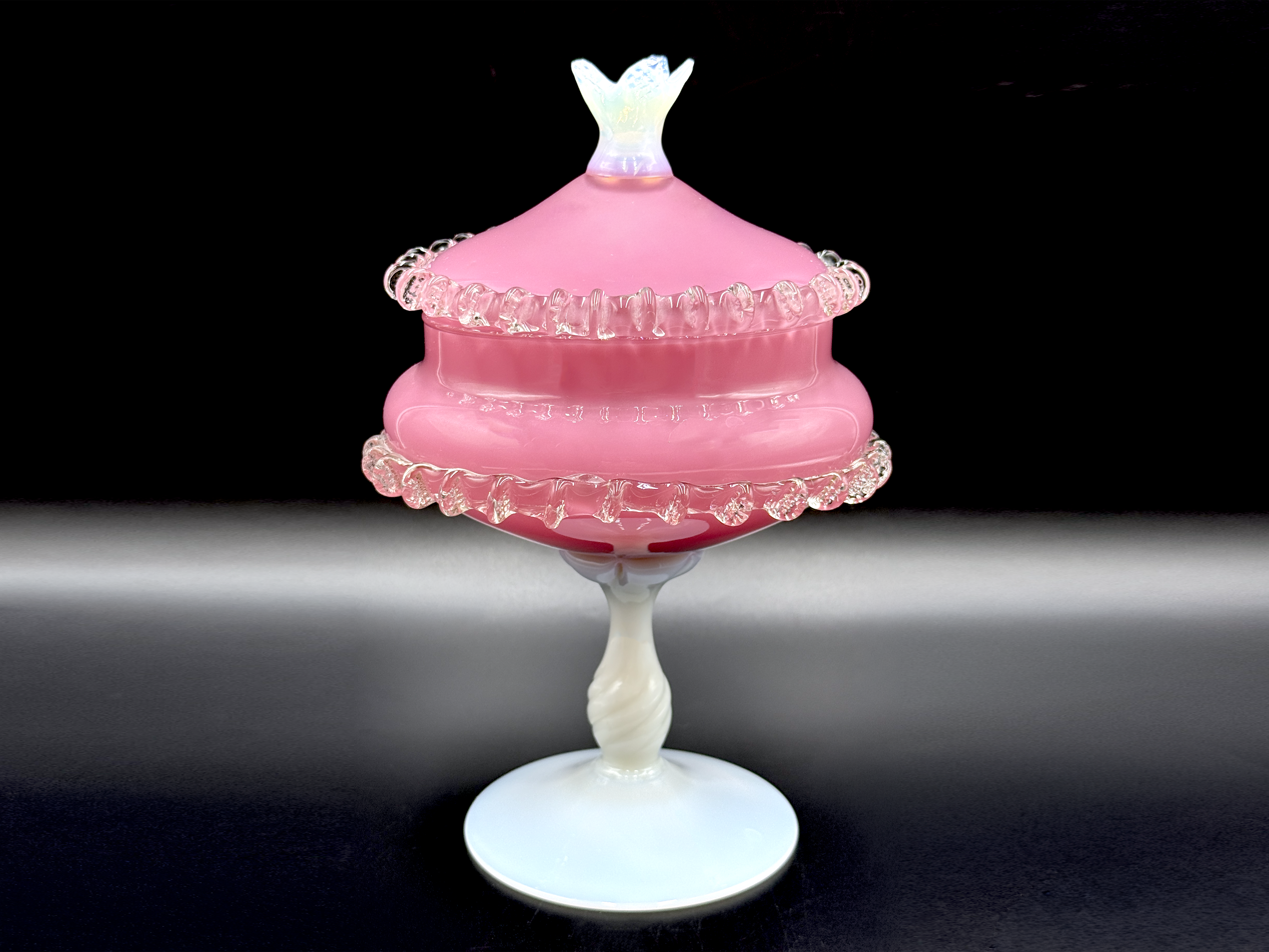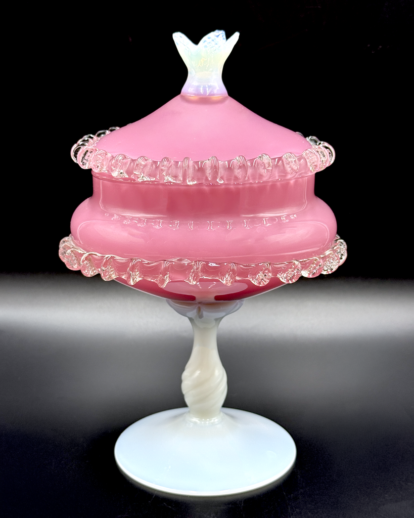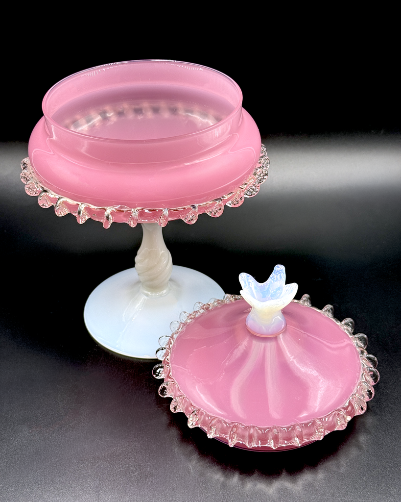 Cristalleria Arno (Empoli, Italy) Cased Glass 9.5" Candy Dish, in Pink and Opalescent White *RARE FIND*
