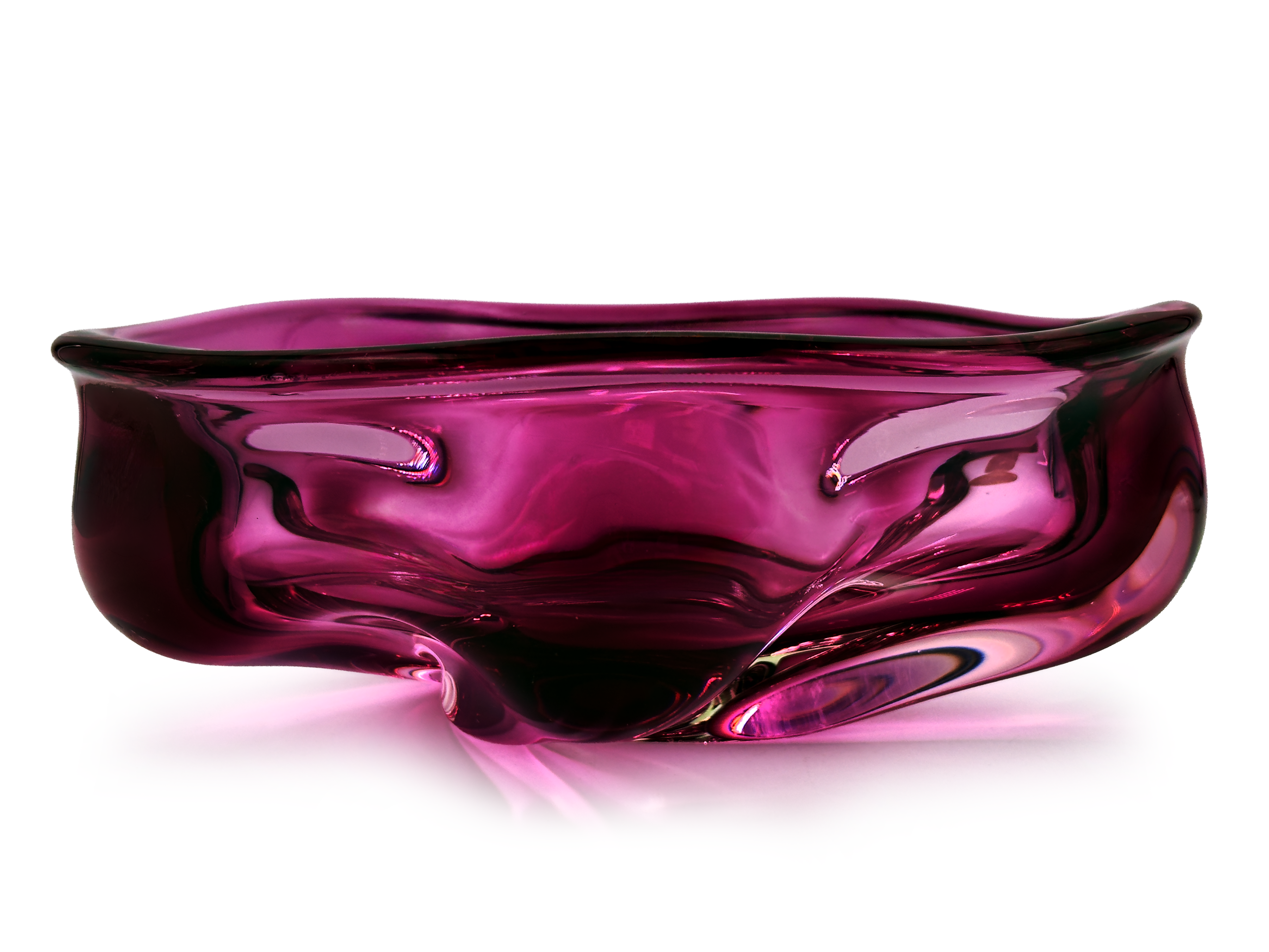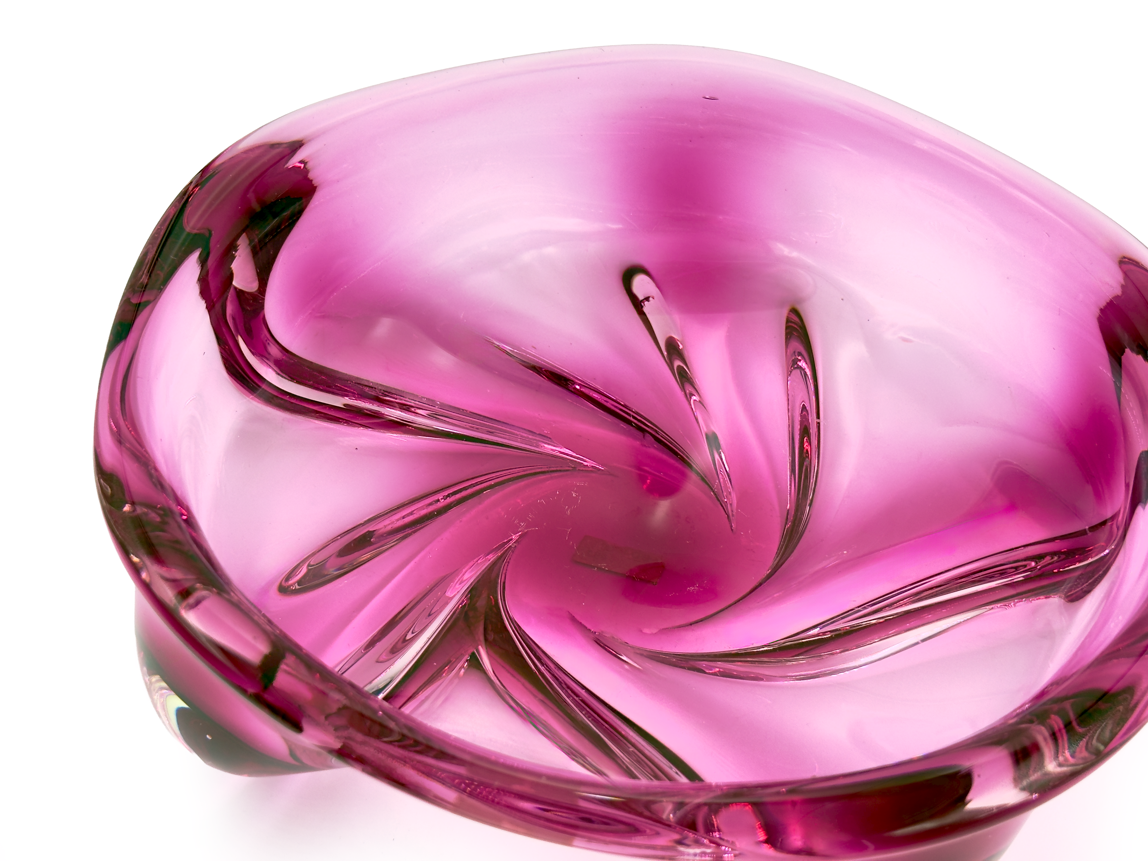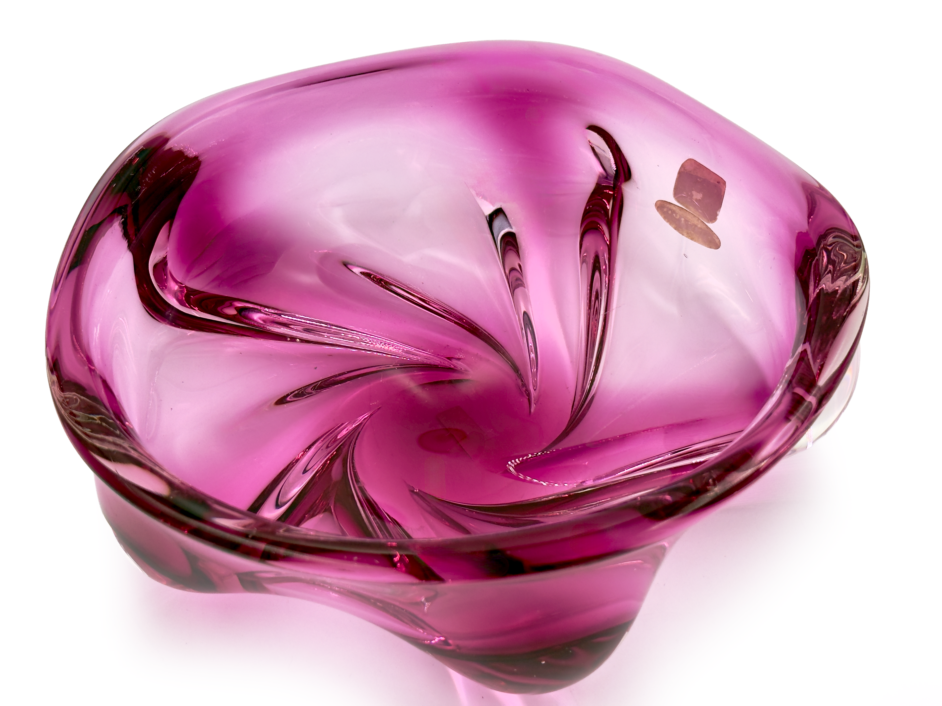 The company reached a creative and production peak during the 1960s and 1970s, releasing a diverse range of vases, centrepieces, and art glass pieces. They captured the aesthetic of mid-century modern design, frequently featuring vibrant swirls of colour cased in thick, clear glass.