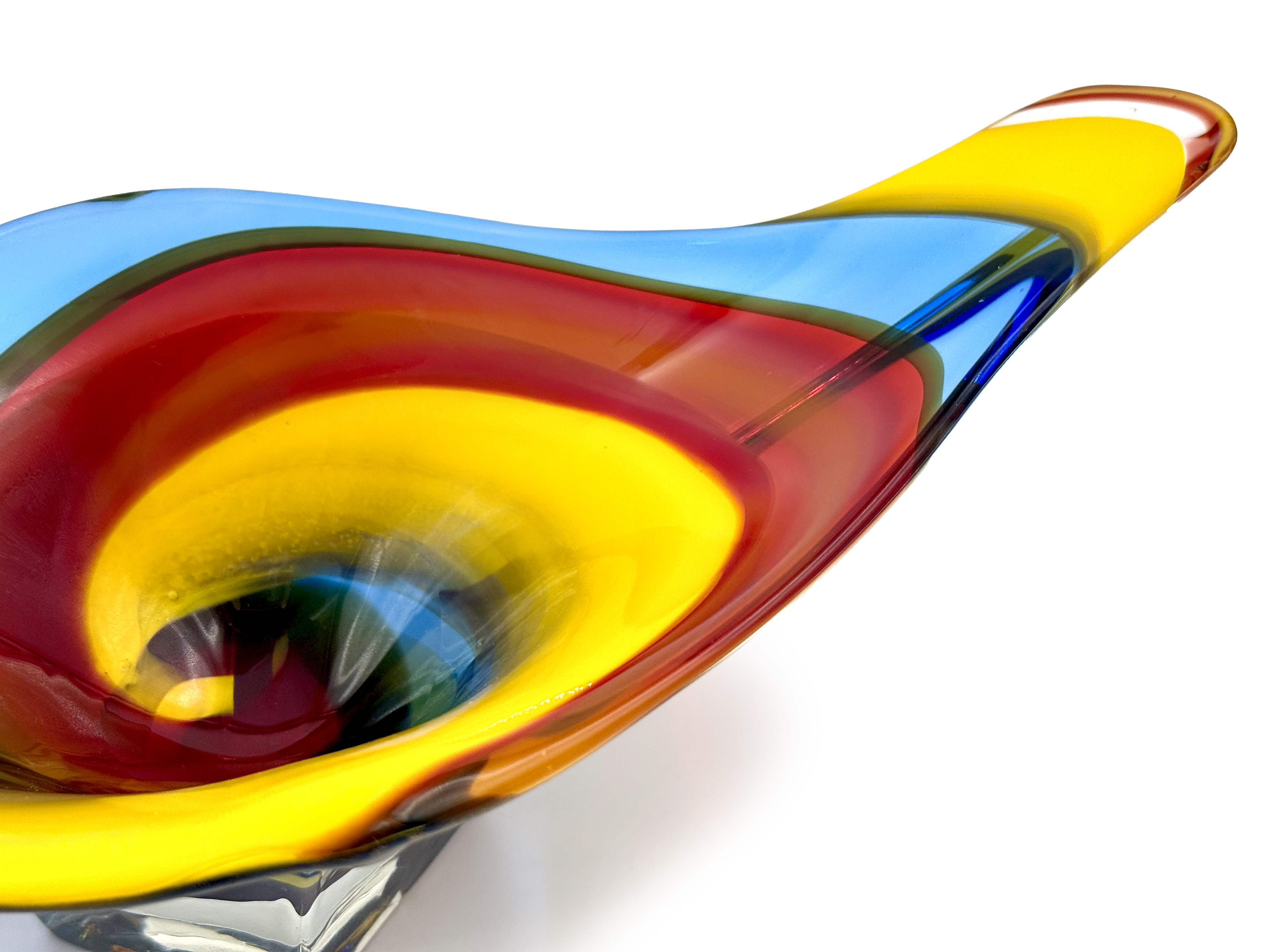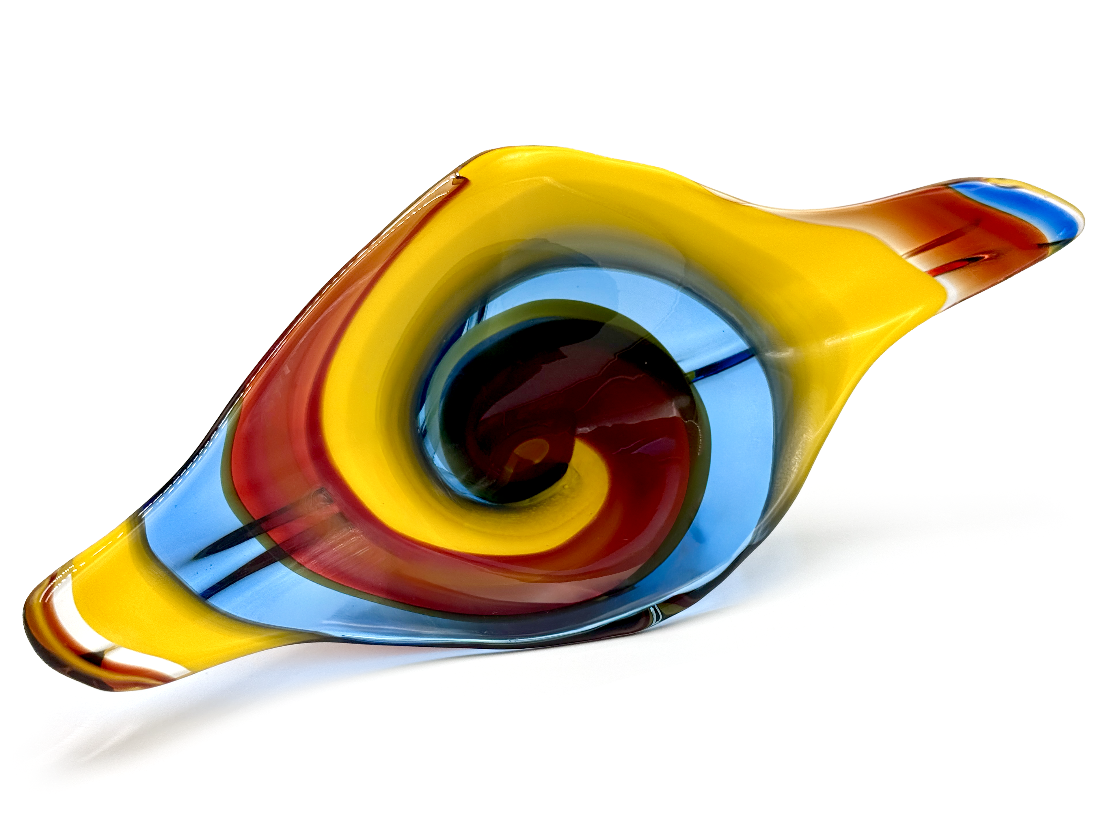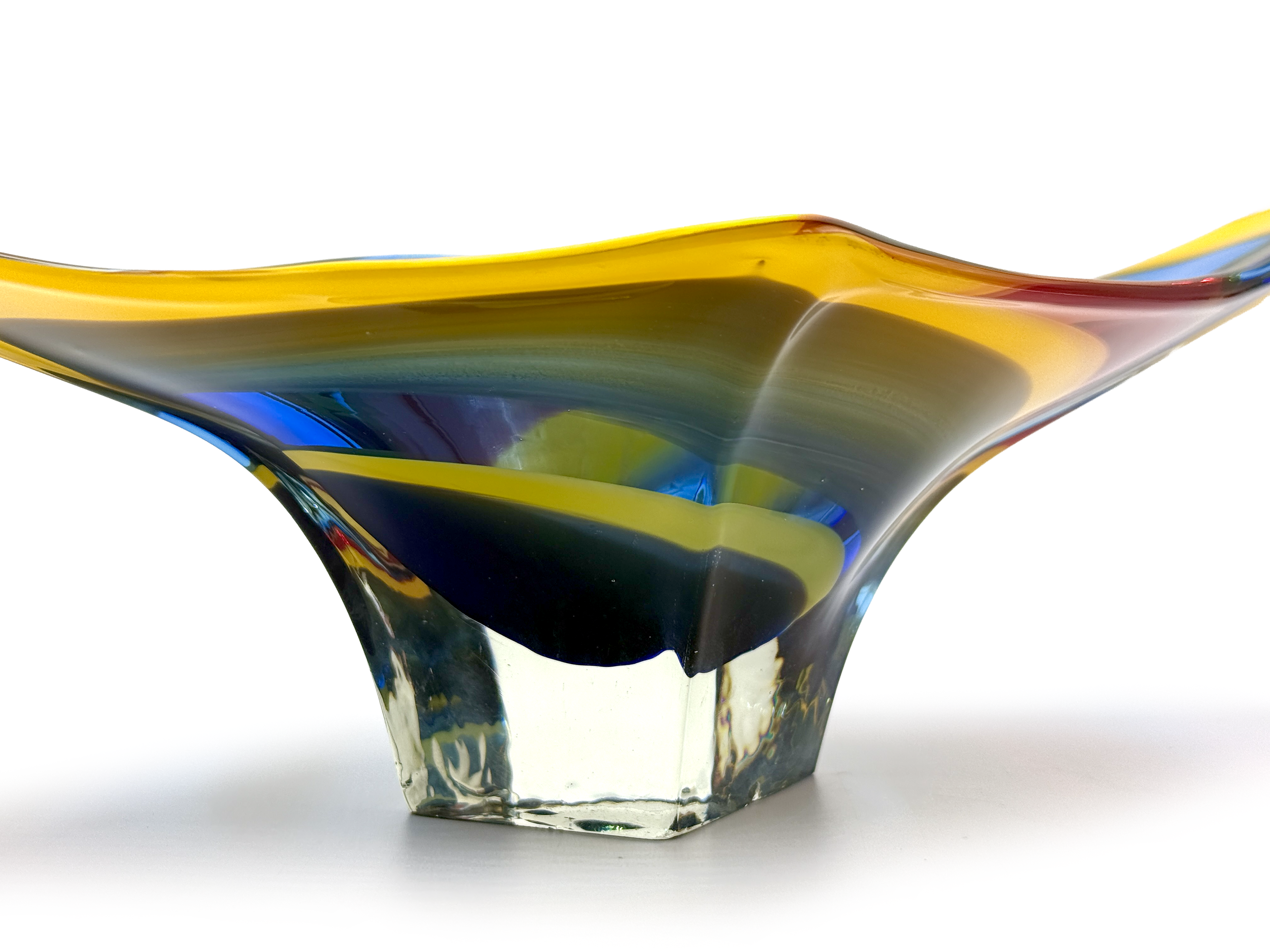 Iwatsu Glass (Japan) from their Hineri range | Art Glass 14.5" Centrepiece, in Blue/Red/Yellow