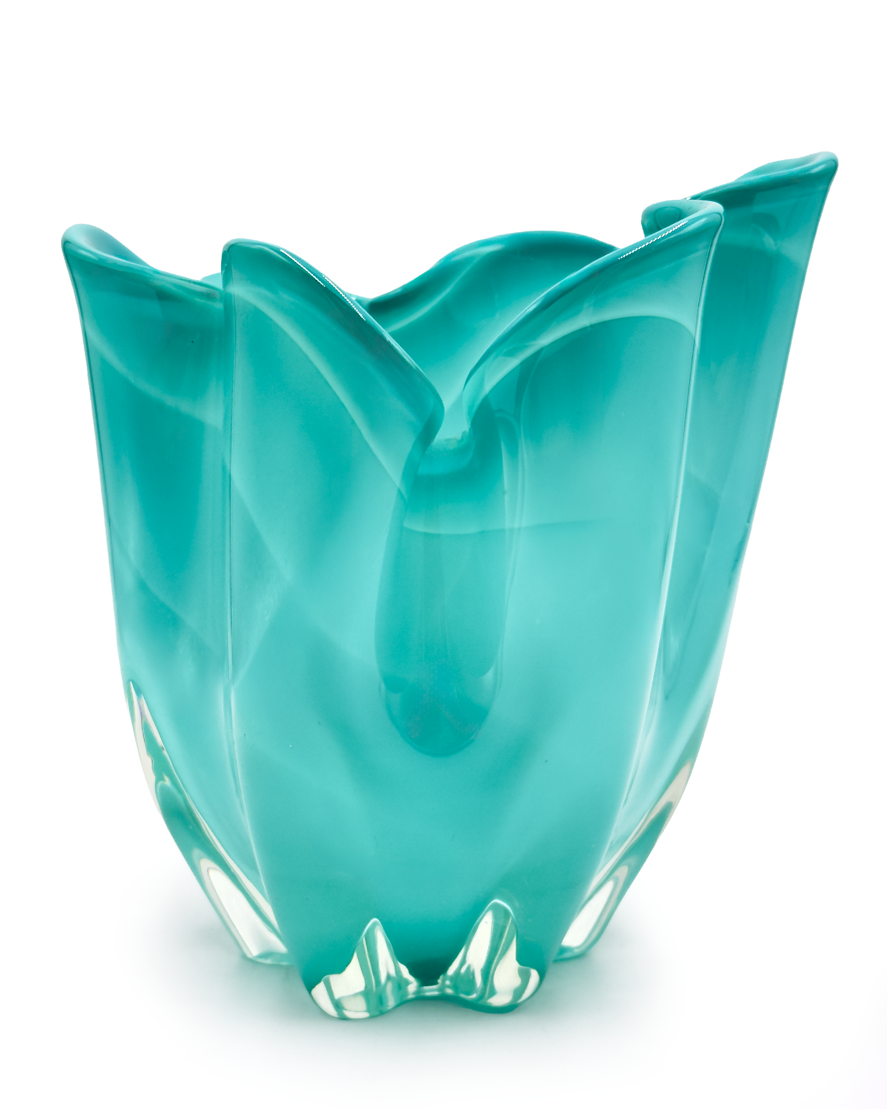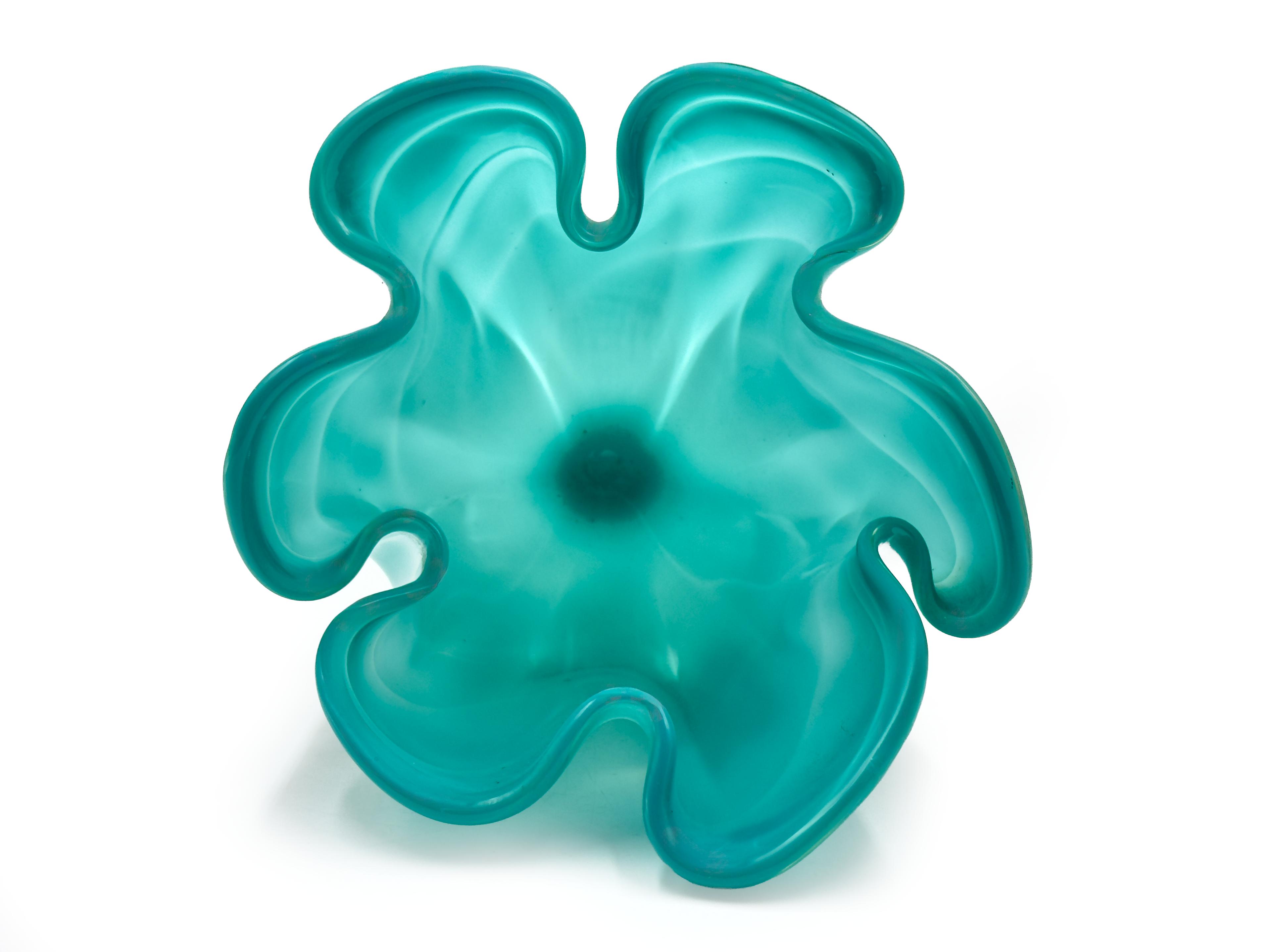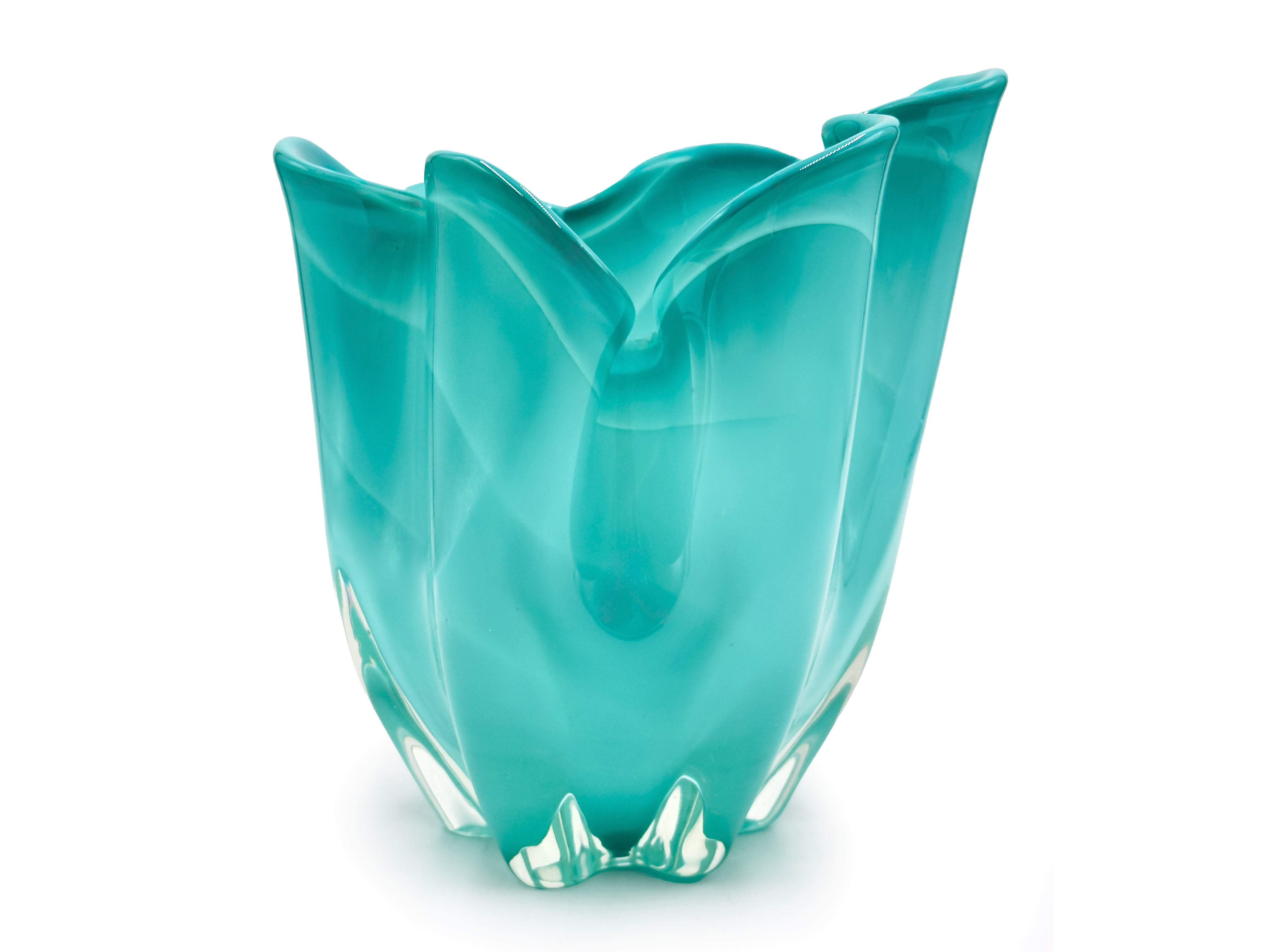 The company reached a creative and production peak during the 1960s and 1970s, releasing a diverse range of vases, centrepieces, and art glass pieces. They captured the aesthetic of mid-century modern design, frequently featuring vibrant swirls of colour cased in thick, clear glass.