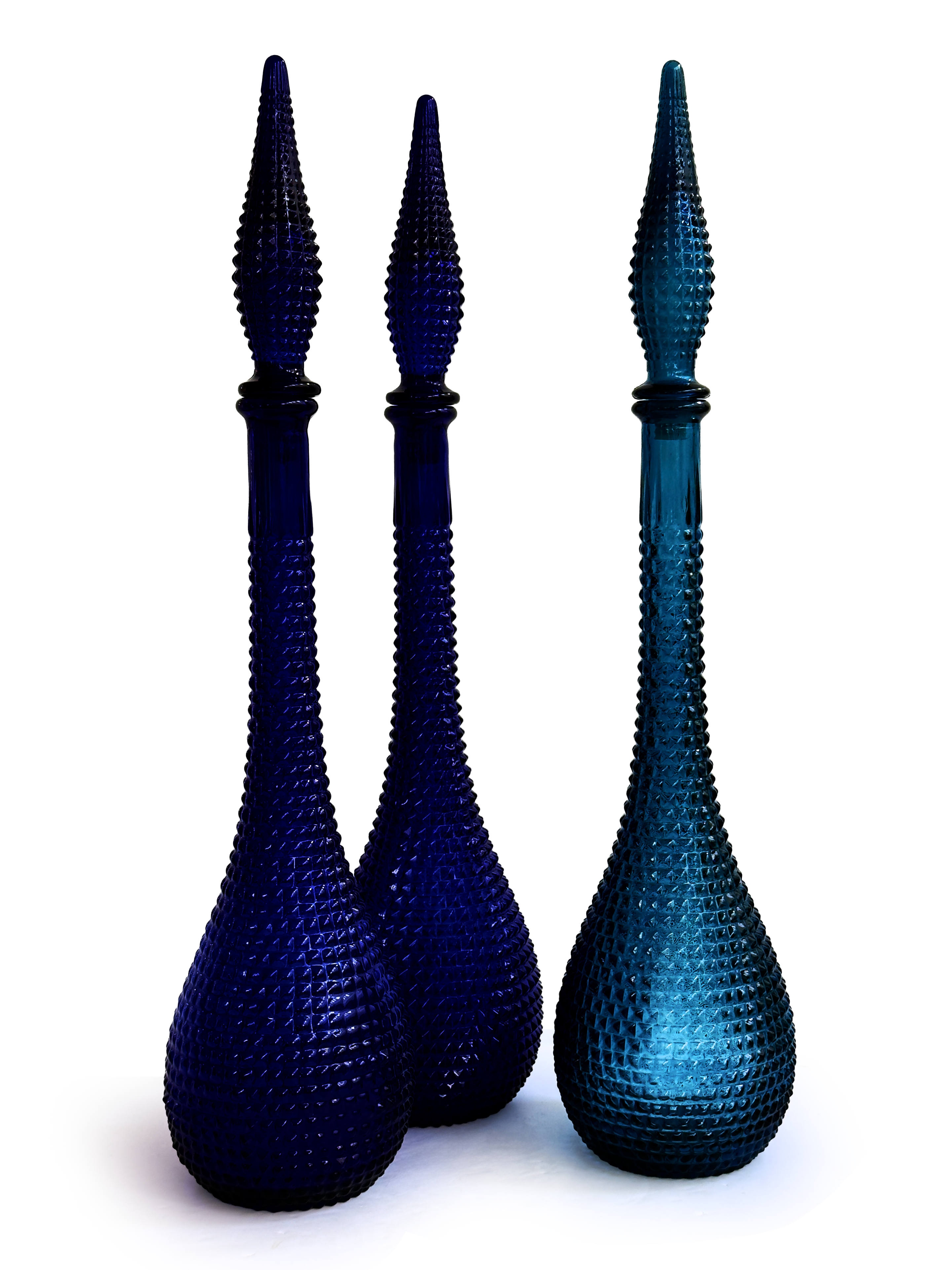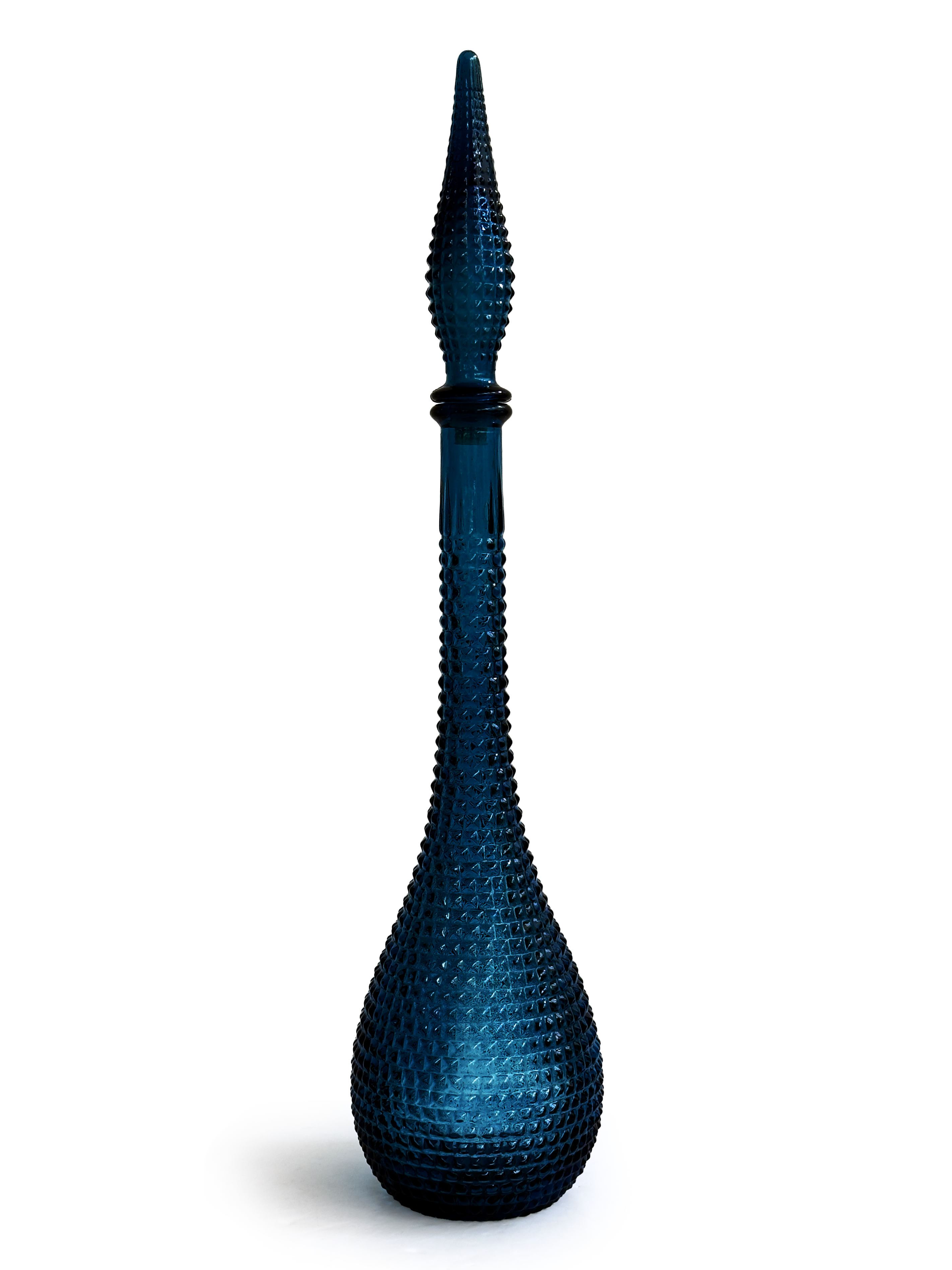 During the post-war economic boom, the region pivoted. The production of highly decorative art glass in Empoli and the surrounding areas reached an all-time high, bound strictly for Western international markets. Throughout the 1950s and into the early 1970s, vibrant cased glass vessels, heavily textured vases, and the now-iconic 'genie bottle' decanters were exported en masse. They were sold at various prominent department stores across the United States, the United Kingdom, and Australia.