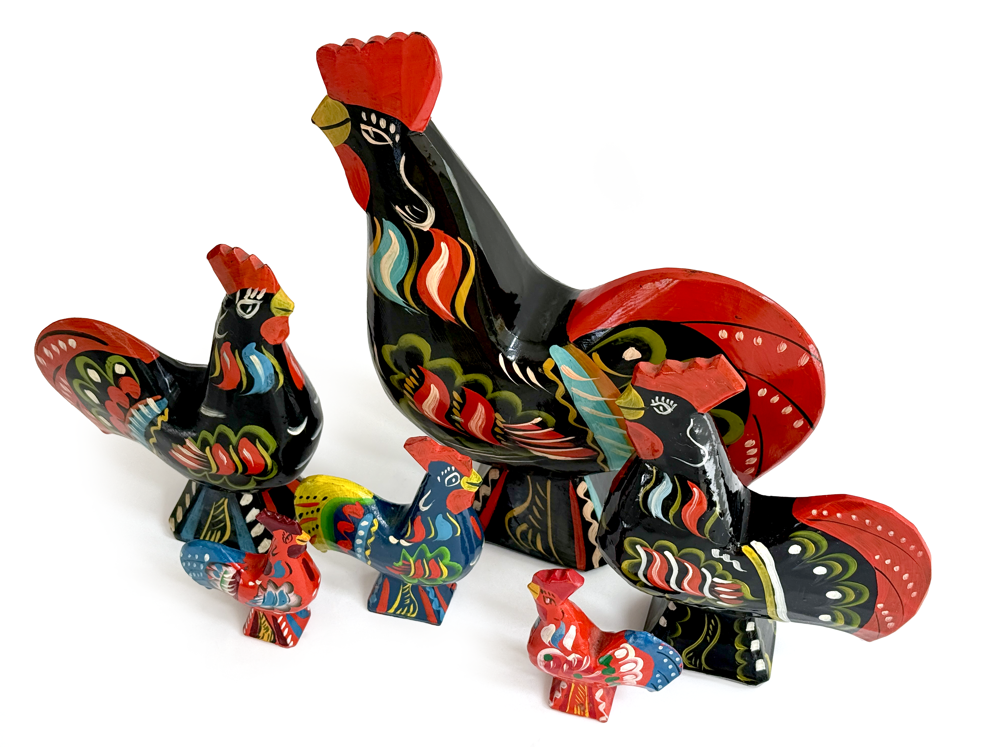 In the 17th century little wooden horses and roosters were sold at markets in small towns and villages in Dalarna, in central Sweden. A hundred years later wooden horses and roosters were carved by men working in the forests during long winter evenings and brought back to the village for the children to play with.