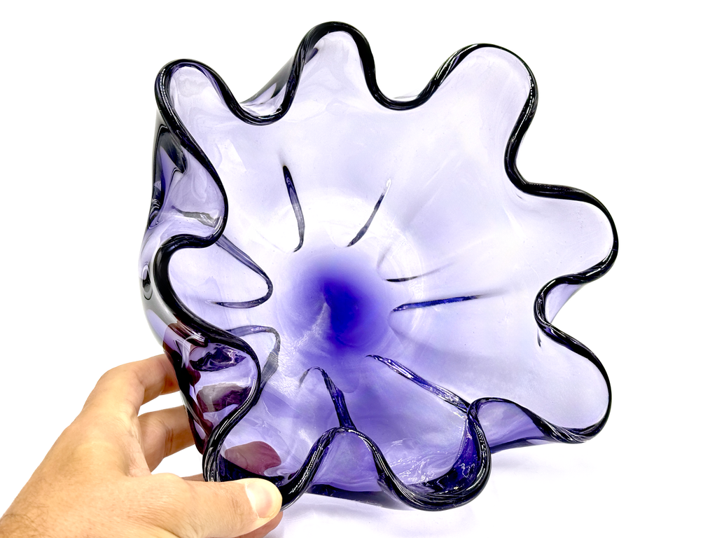Iwatsu Glass (Japan) from their Hineri range | Art Glass 11" Centrepiece, in Purple