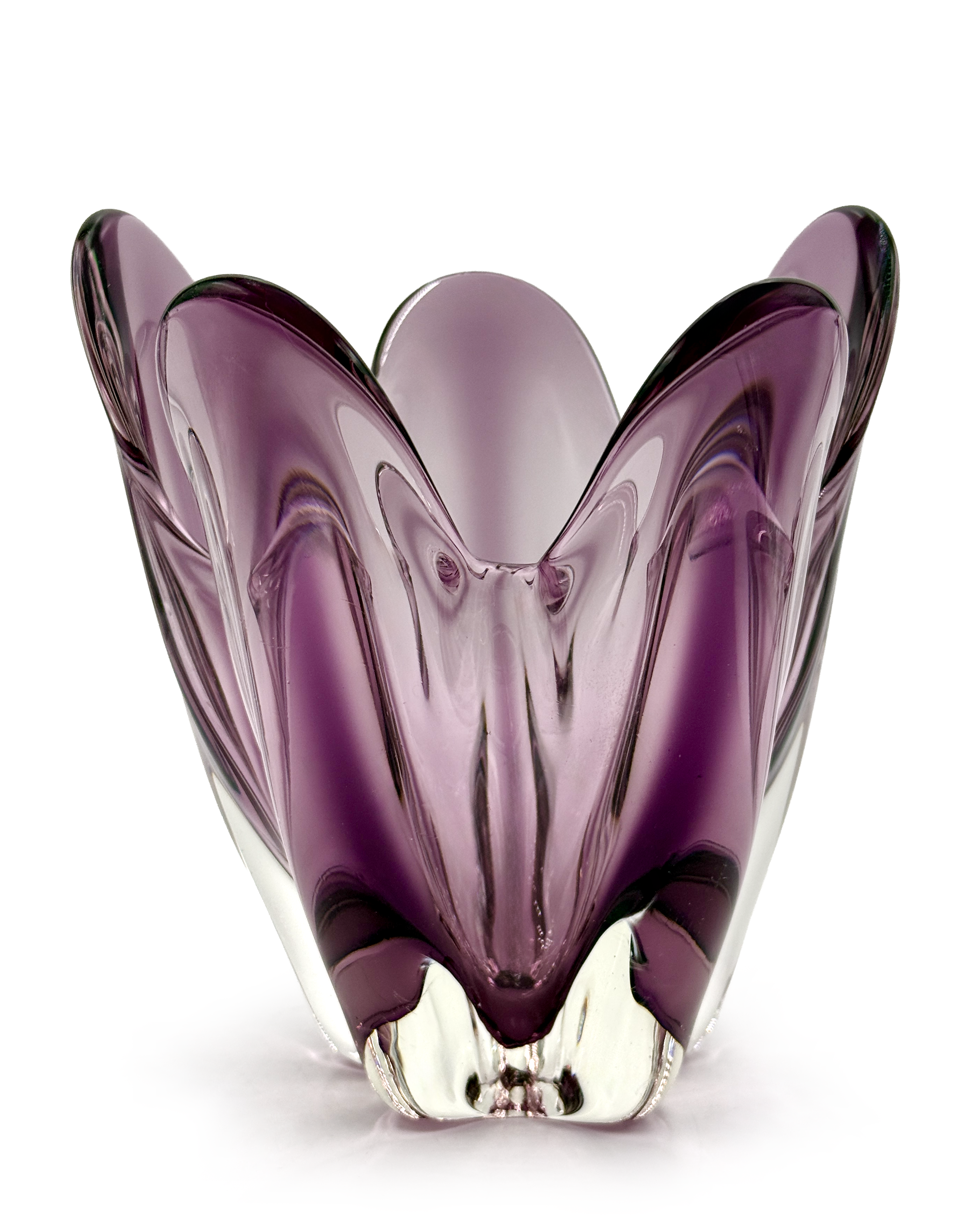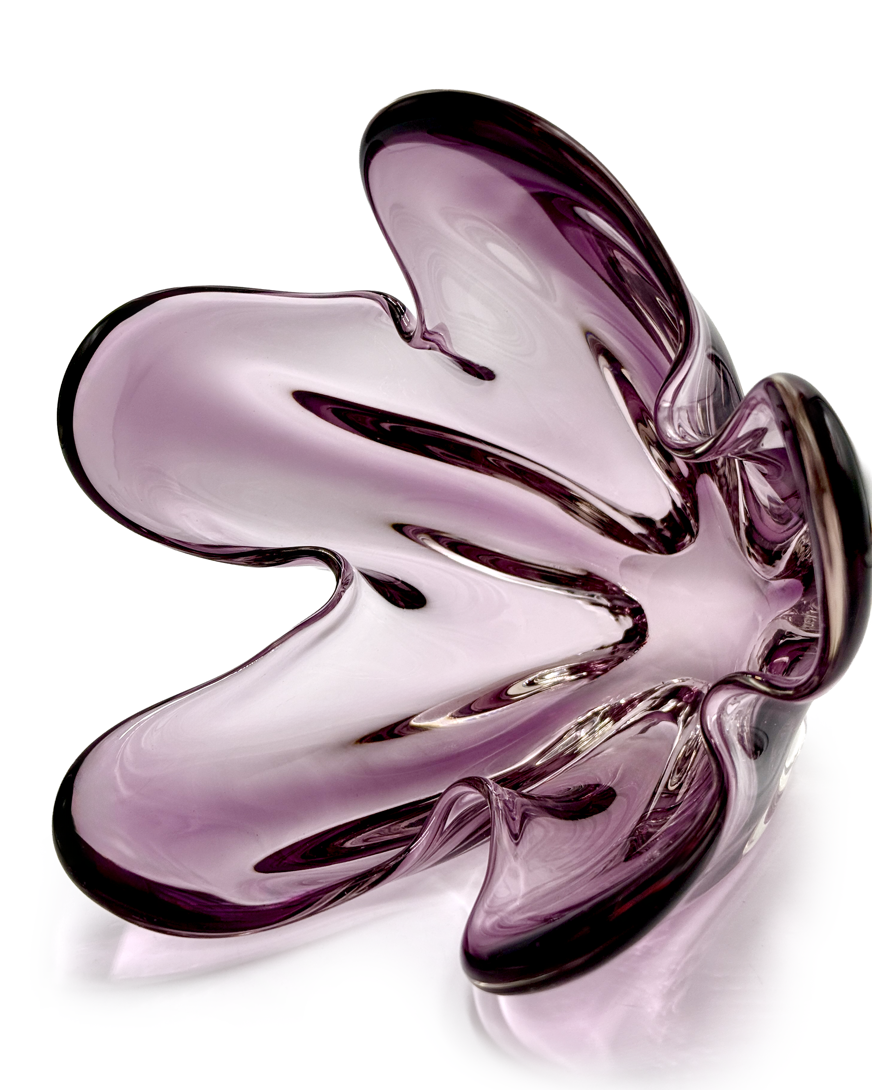 A gorgeous bowl/centrepiece. This style, often referred to as a handkerchief vase, is a well-known model and appears in a variety of colours.