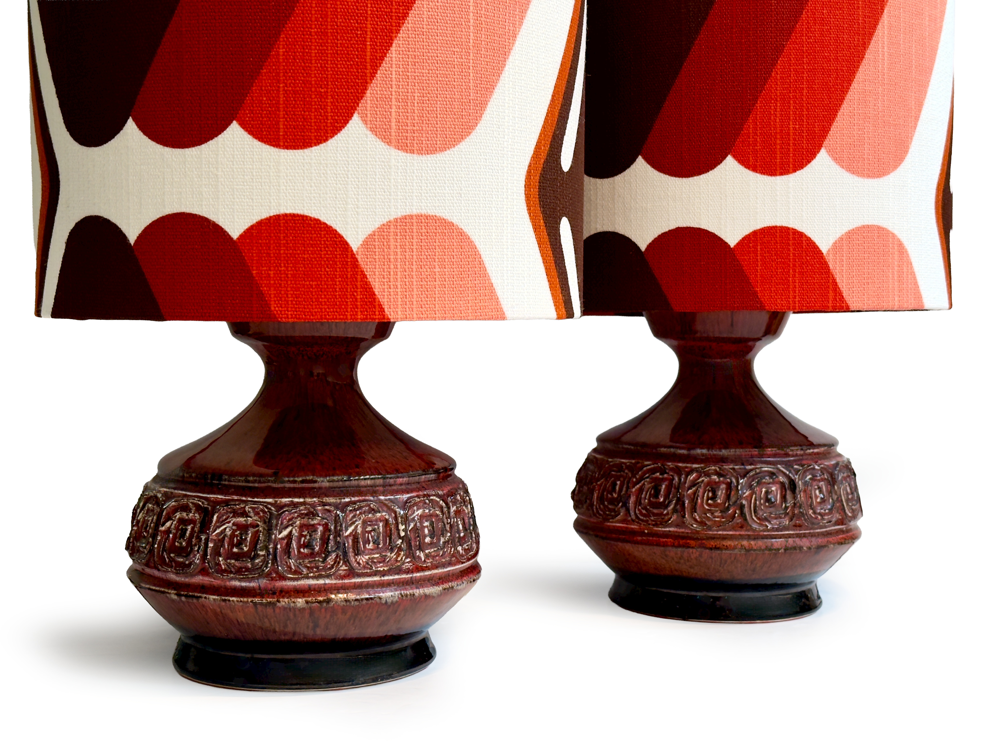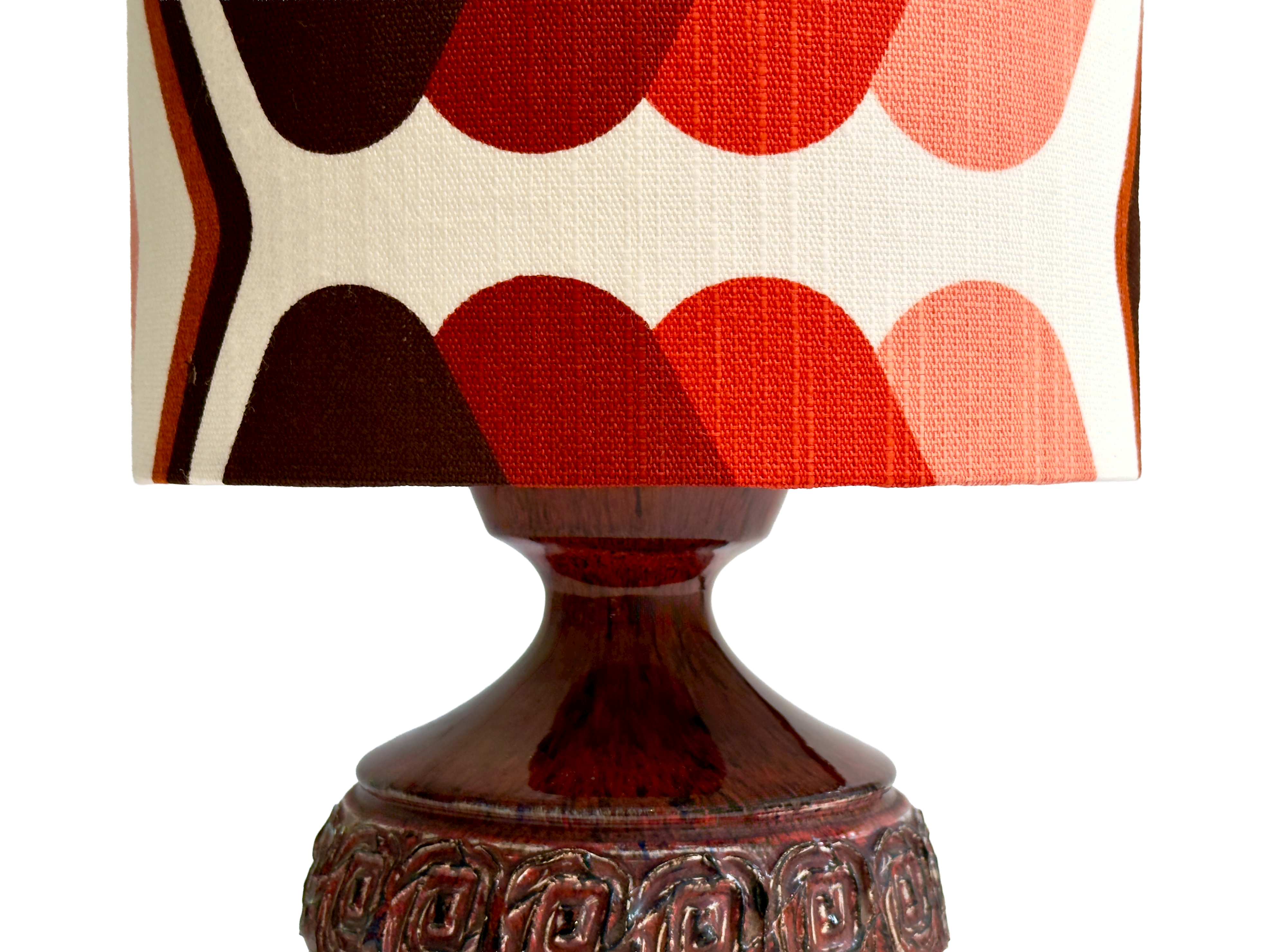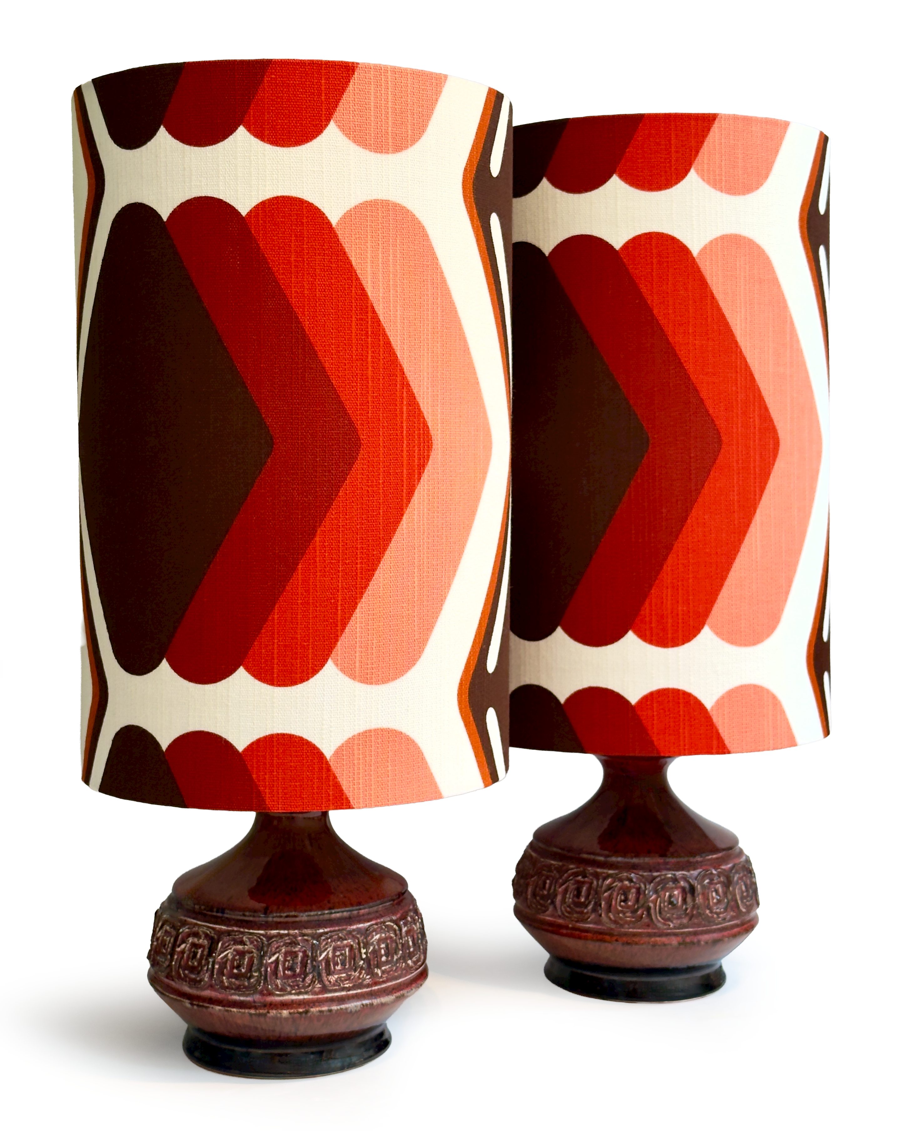 Shade Material Hand-made in-house from premium West German vintage fabric. The pattern can be seen in a couple different ways, as demonstrated in the images.