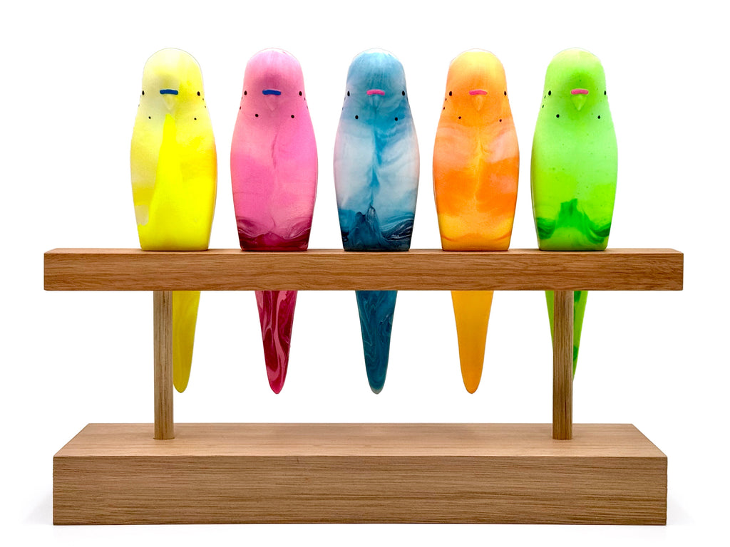 Inspired by the optimistic personalities of Australian wildlife, Pete’s work is renowned for his signature bursts of glowing colour and beautiful textures, all reflected in his bold collages, paintings and sculptures.