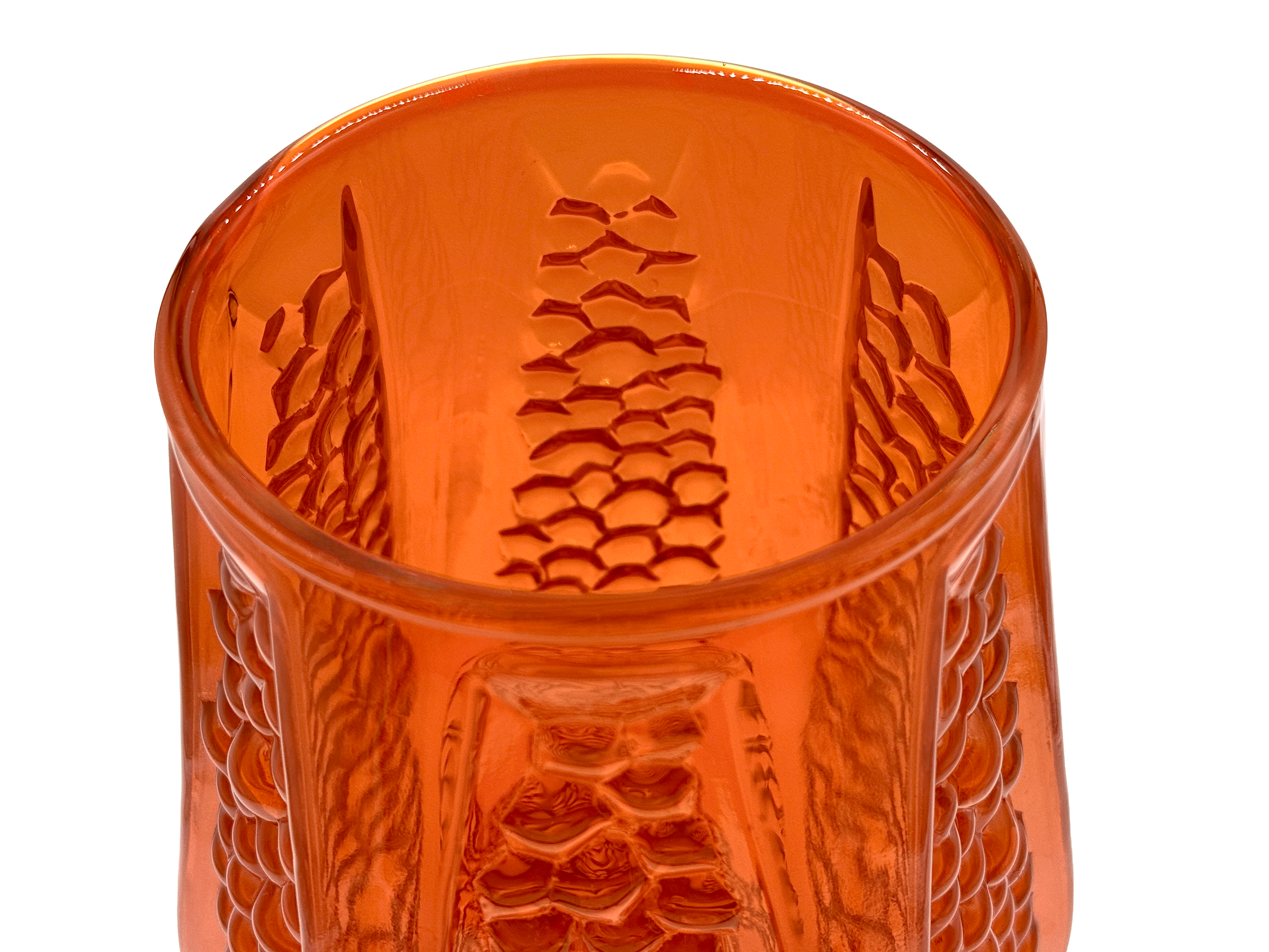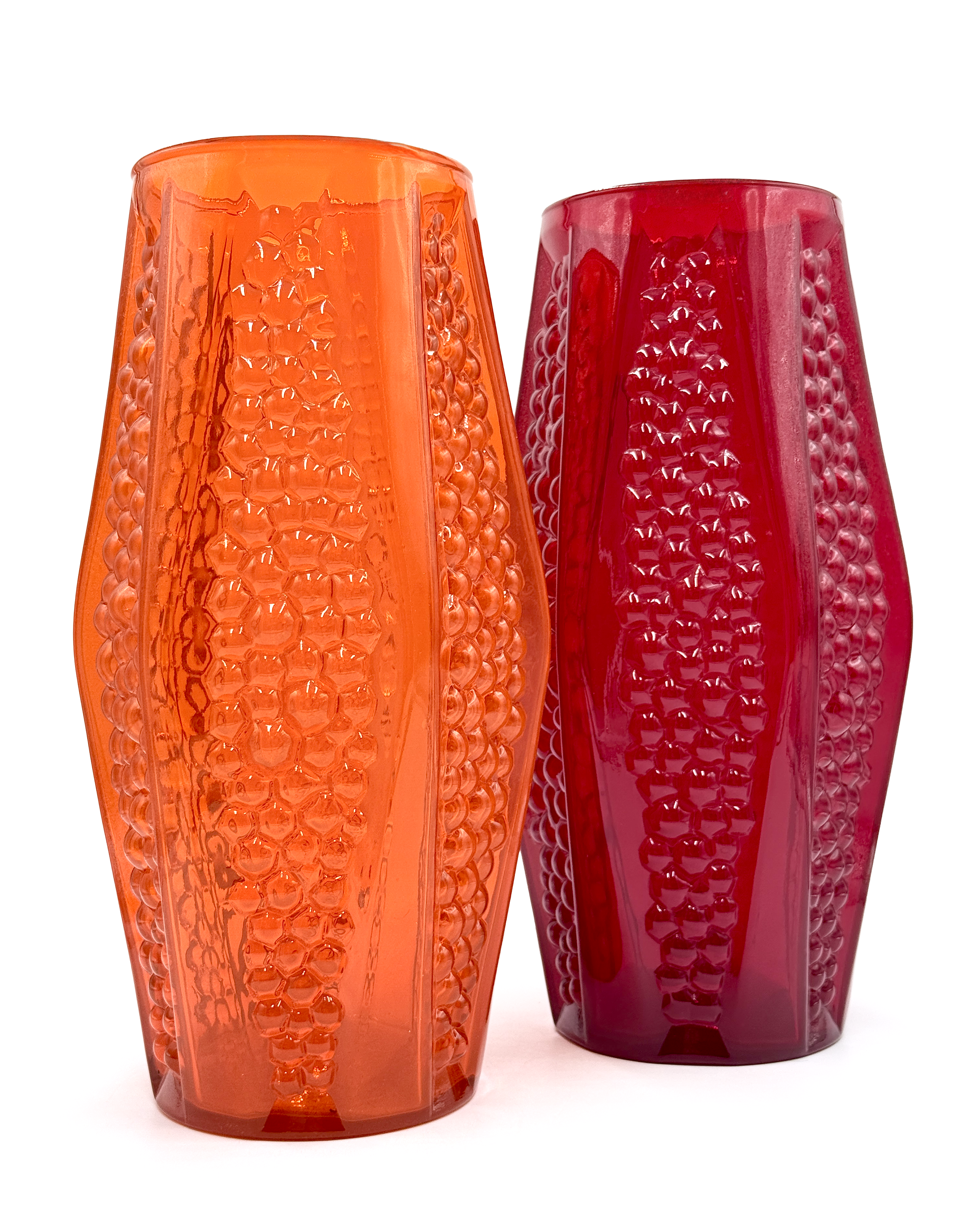 Wayne Husted, a well known designer for American firm Blenko Glass, is known to have worked with and produced designs for the company during a stint in the 1960s. These were released as part of their 'Antiqua' range.