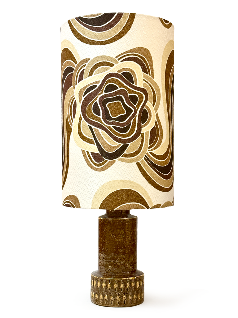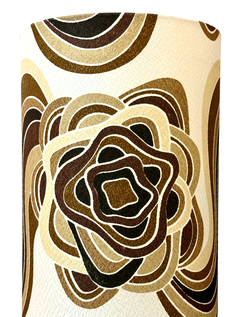 Shade Material Hand-made from vintage fabric, thanks to Retrotastik. The pattern can be seen in a couple different ways, as demonstrated in the images.