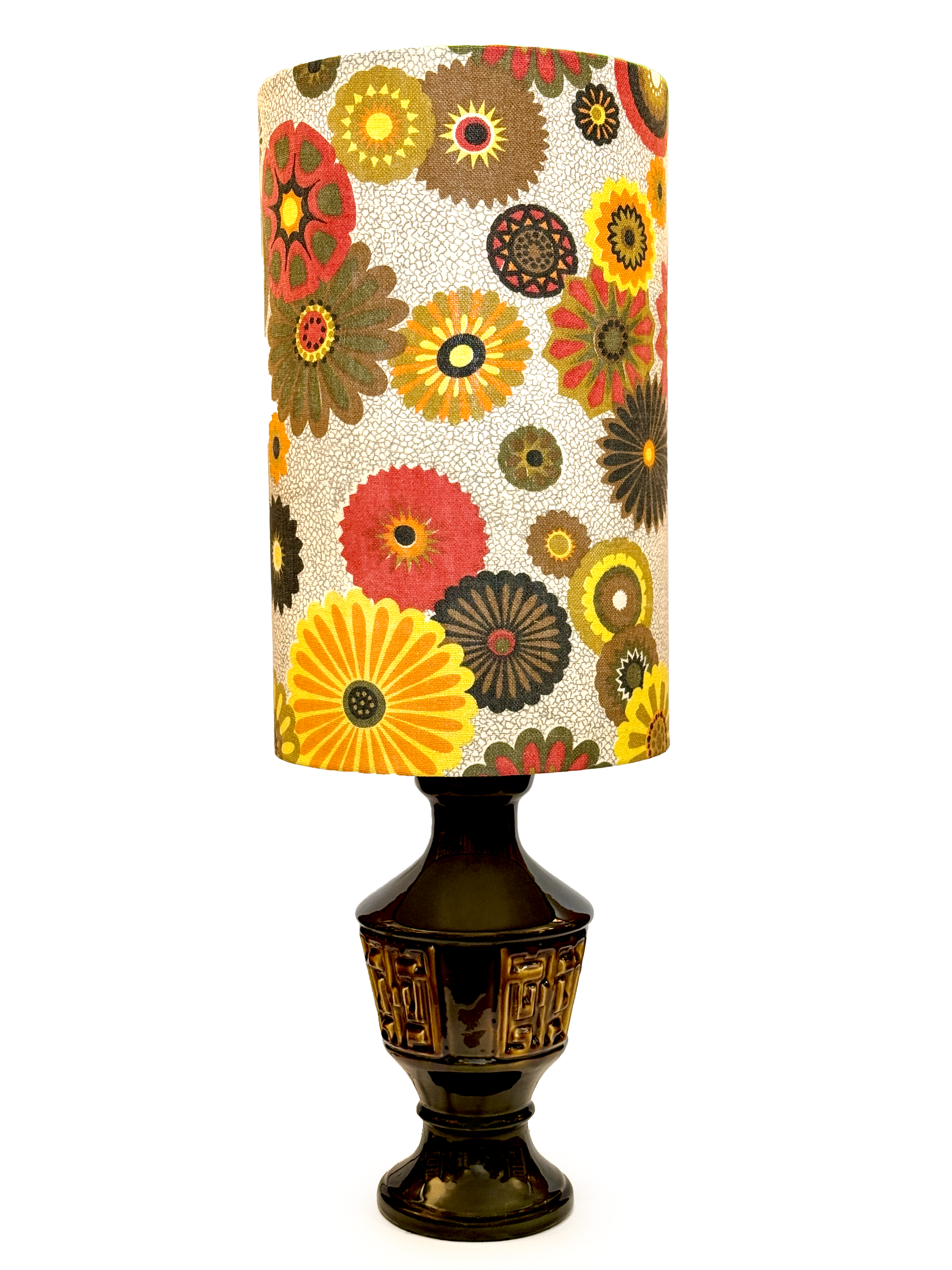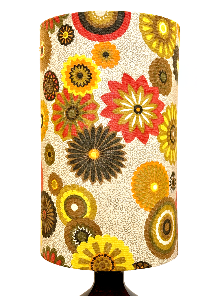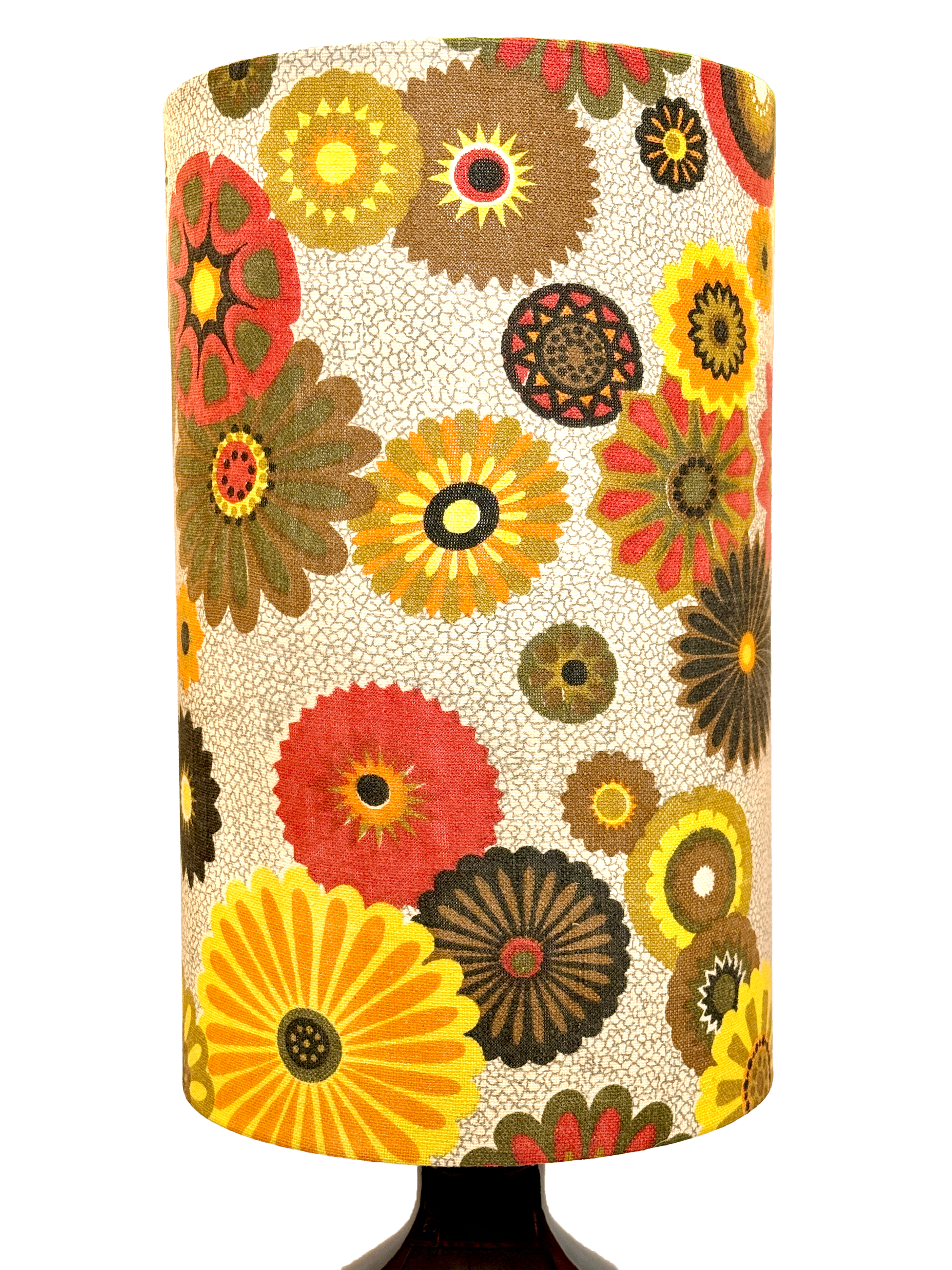 Shade Material Hand-made from vintage fabric, thanks to Retrotastik. The pattern can be seen in a couple different ways, as demonstrated in the images.