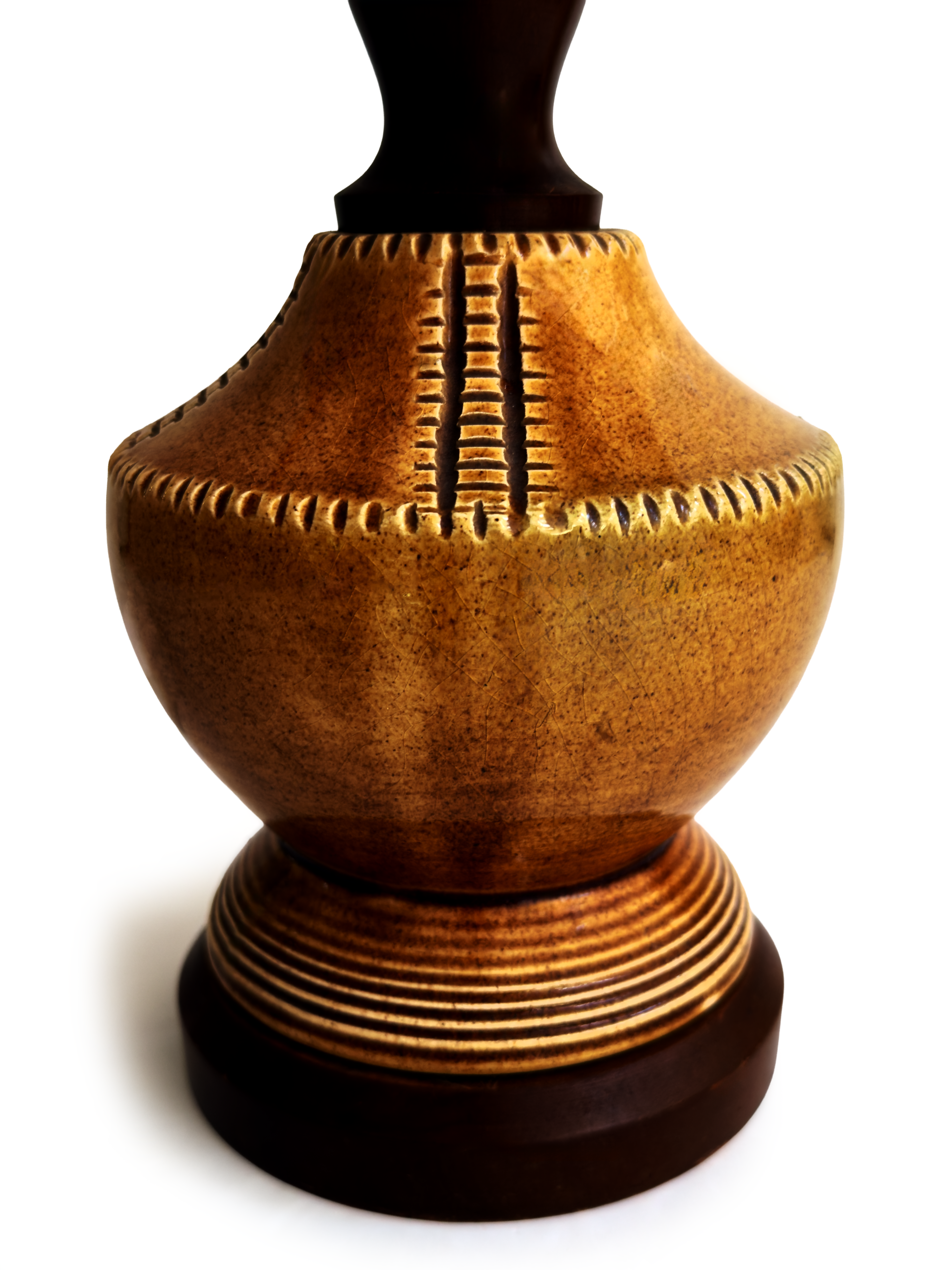 Rakumba Pottery (Australia) Large 26.5" Table Lamp in Caramel, with Hand-Made Lampshade (Vintage Fabric)