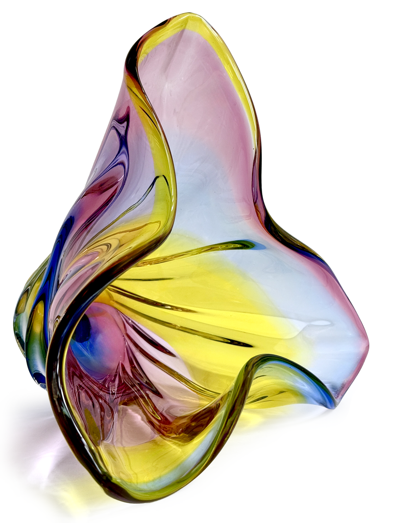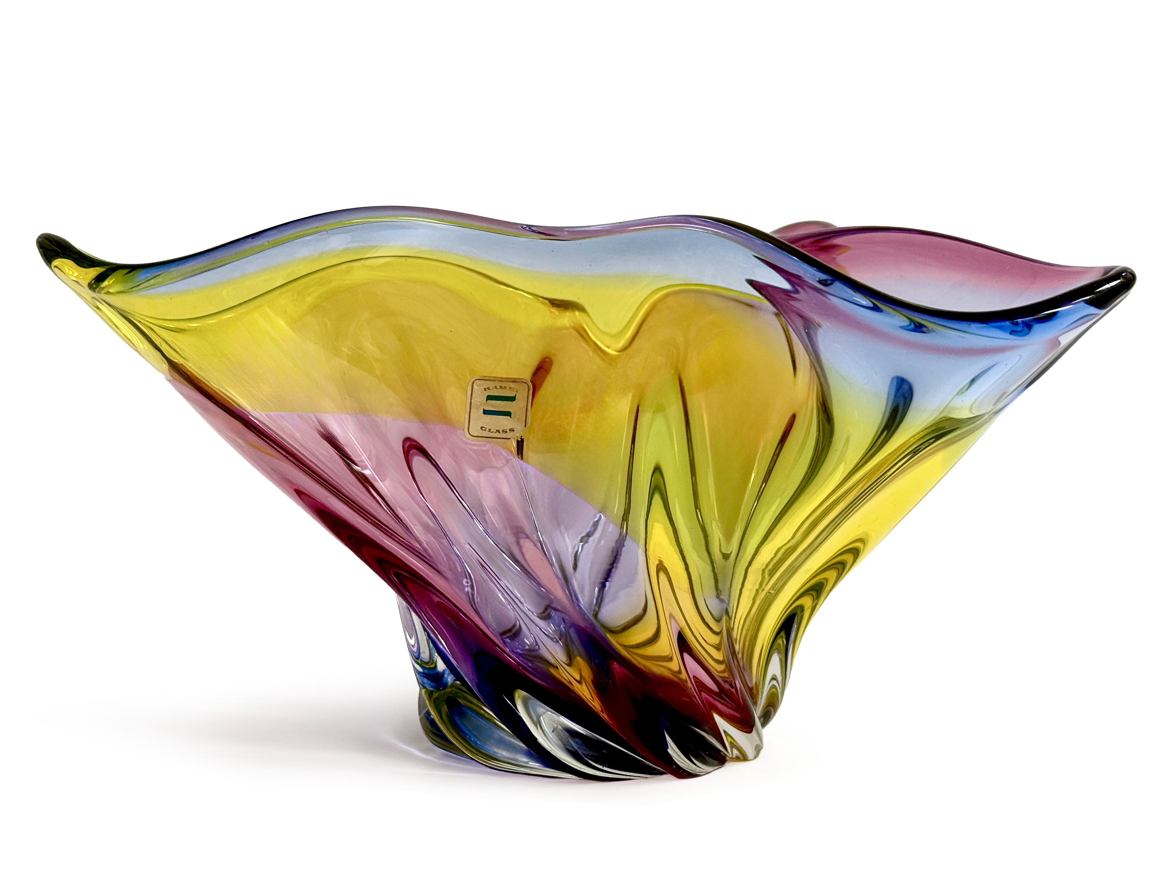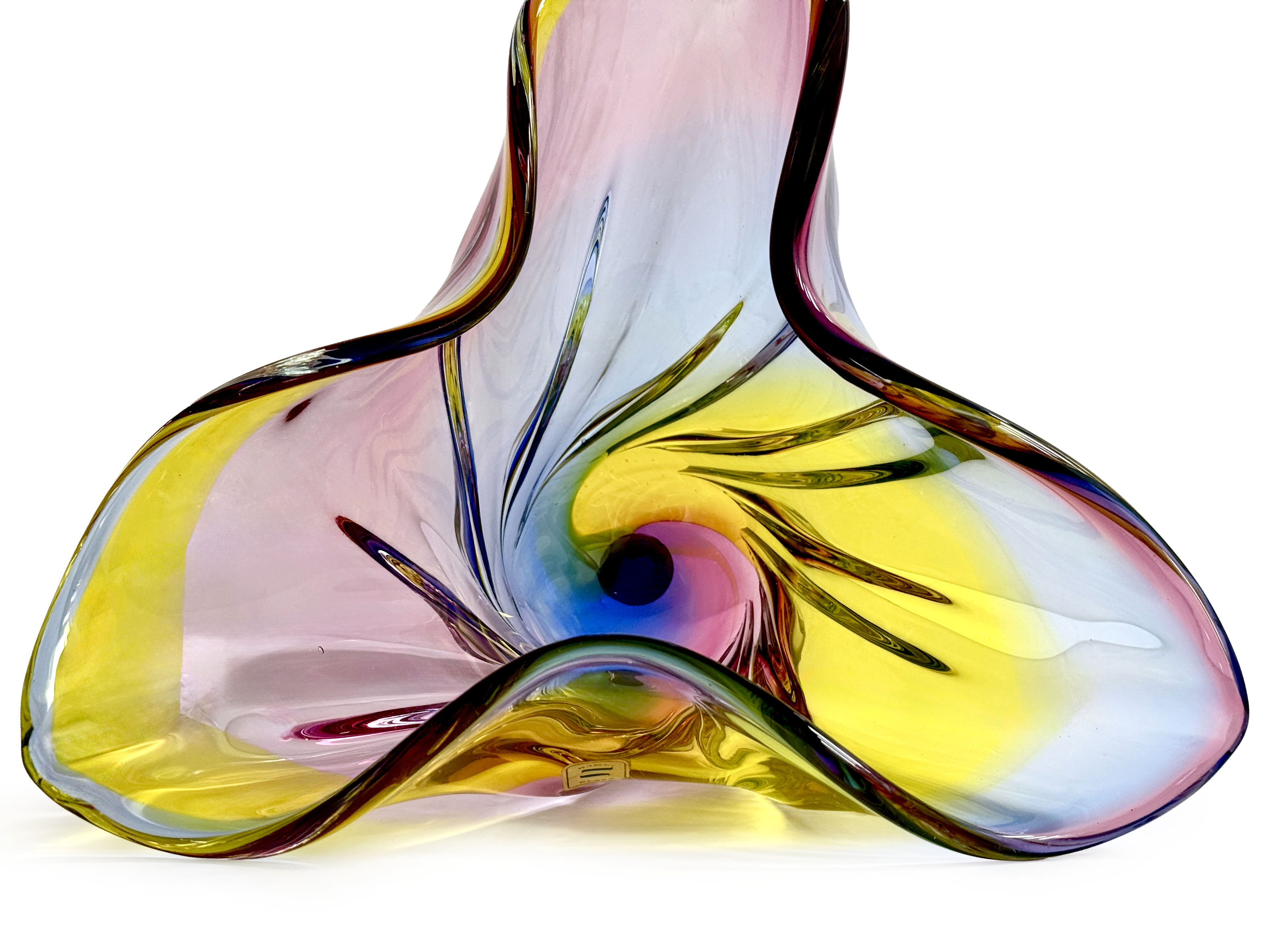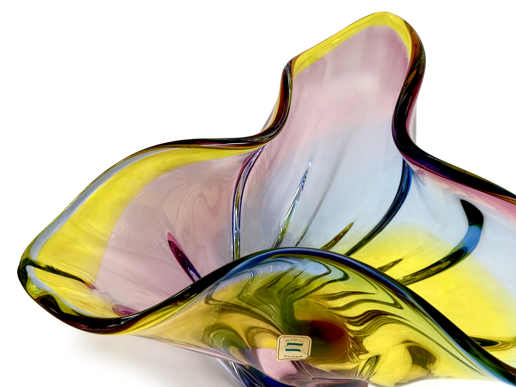 Hokuyo Glass (Japan) Art Glass 'Rainbow' 11" Centrepiece, in Blue/Pink/Yellow *RARE FIND*