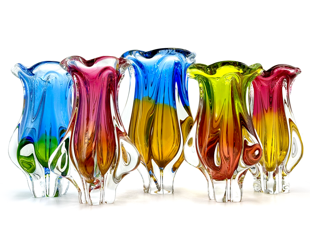 Josef Hospodka - the most well known designer for the firm - joined the factory and became head designer at Borske Sklo and Chřibská from 1958-1970. During this period, Hospodka was responsible for designing some of the most recognisable forms of the company with their organic, sculptural shapes. So popular as such they remained in production until the factory closed.