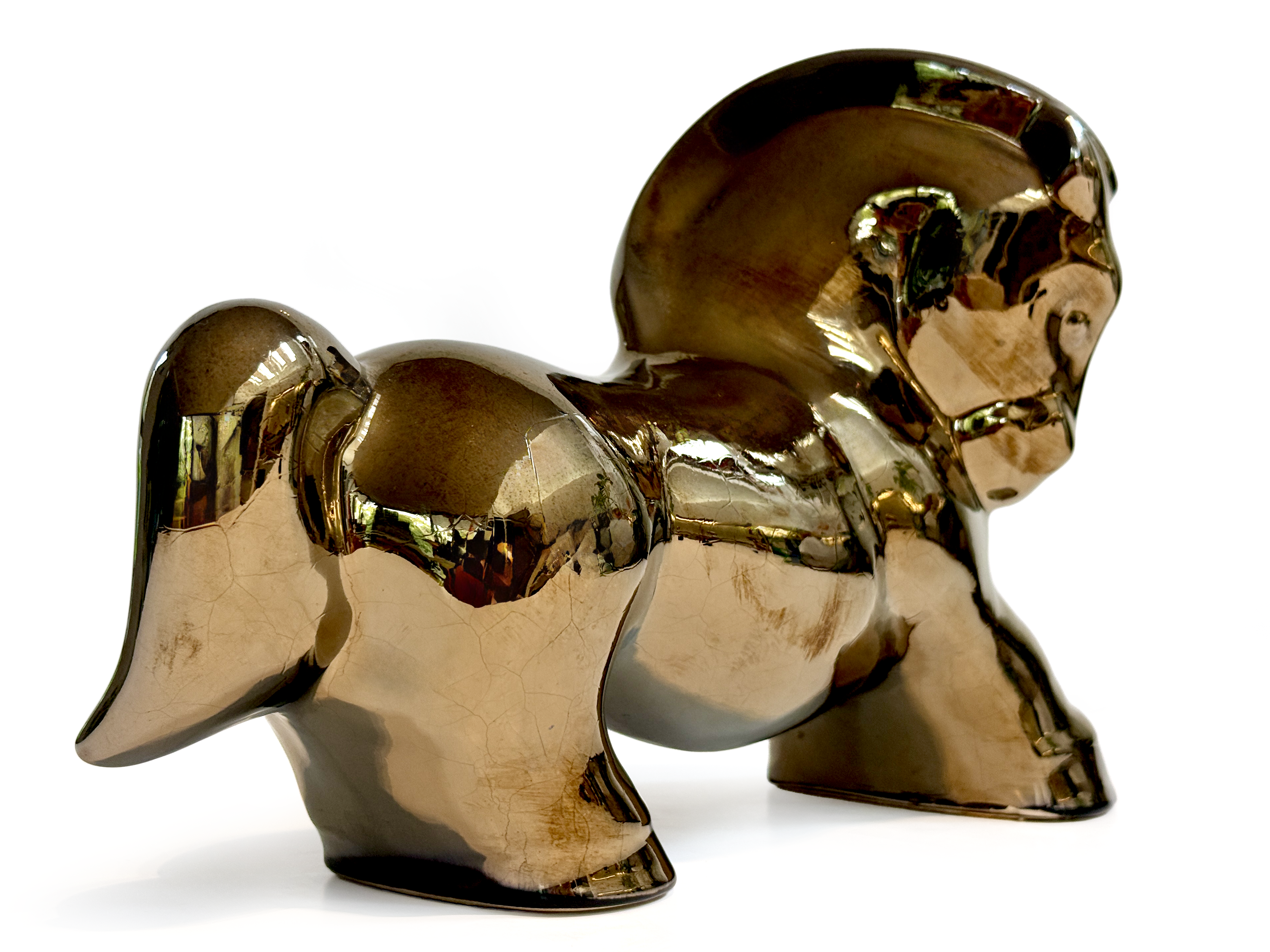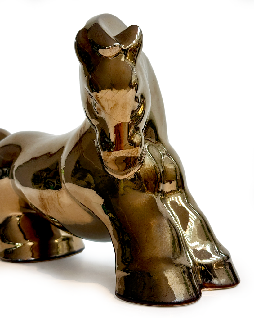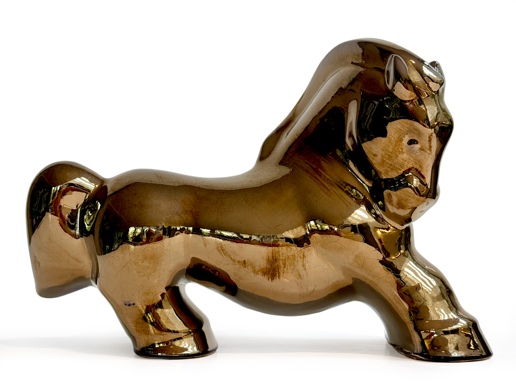 Rakumba Pottery (Australia) 11.5" Horse, in Gold *RARE FIND*