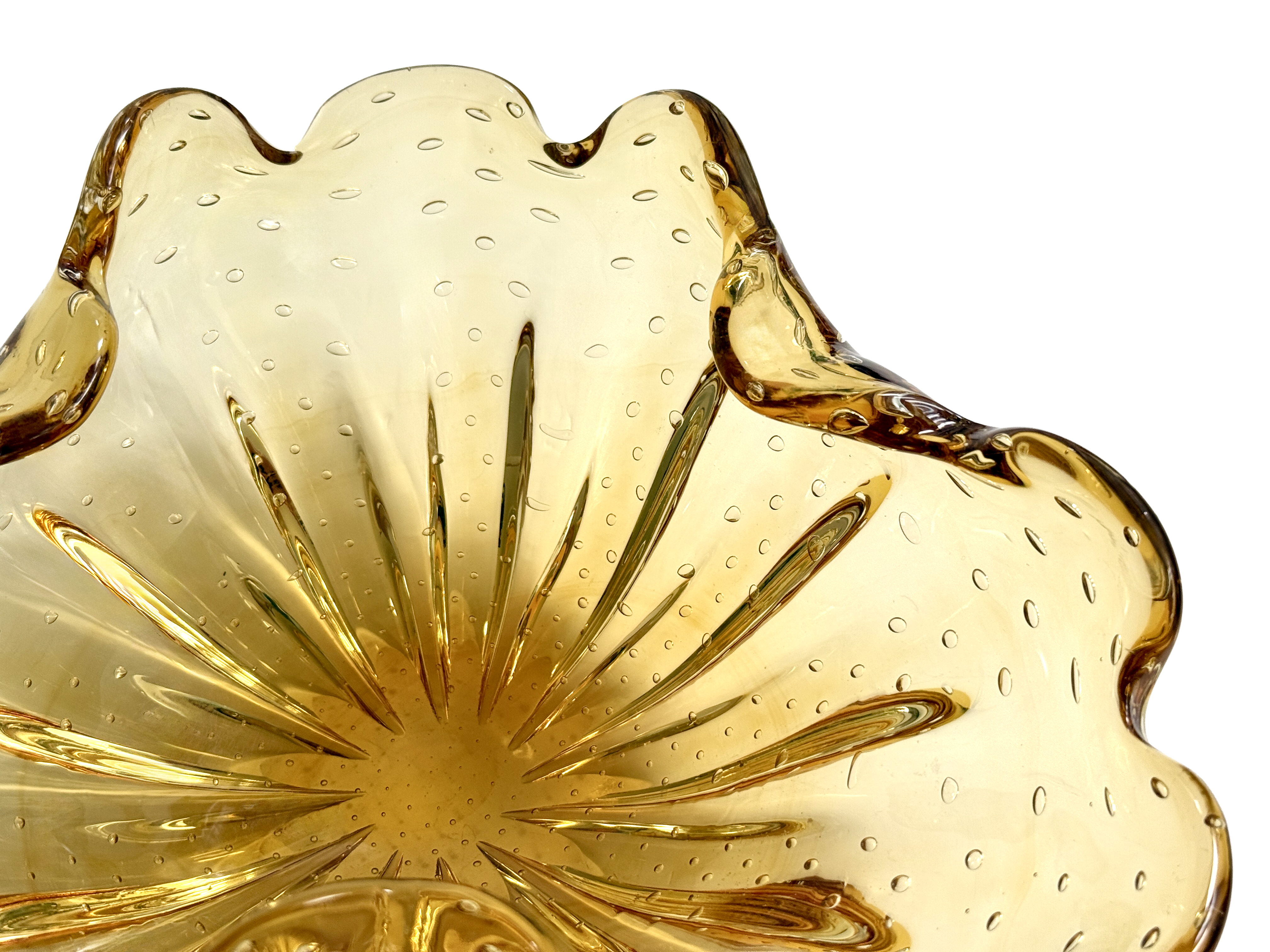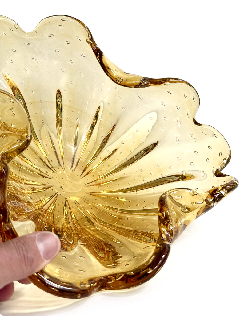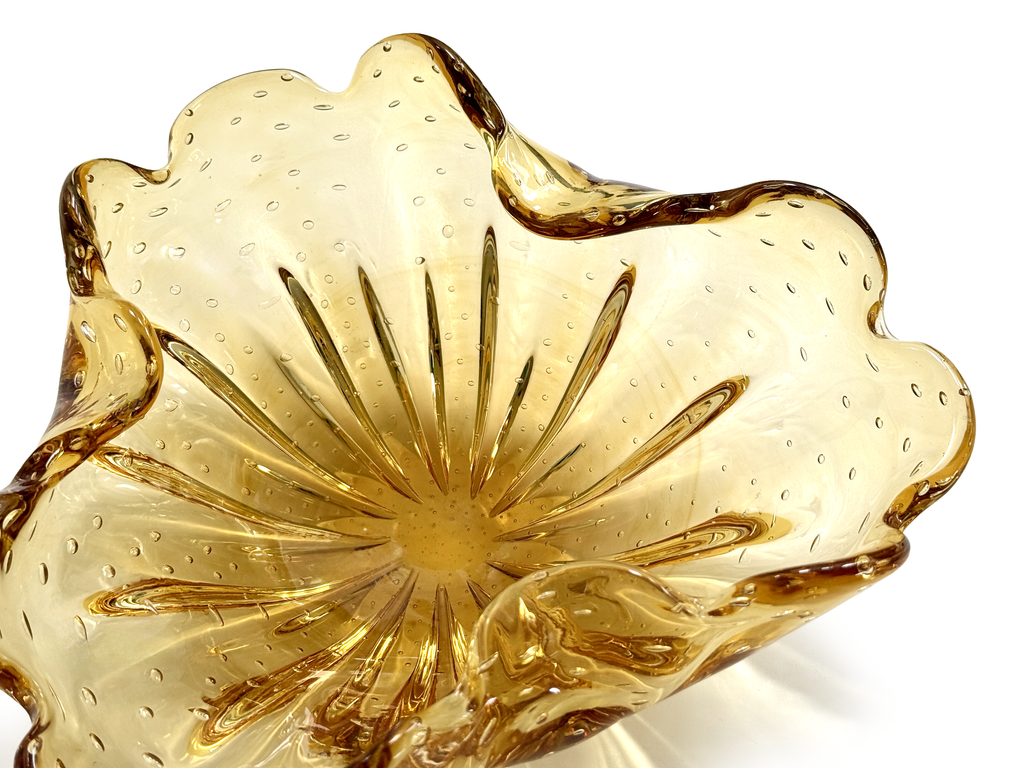 This particular centrepiece, in its gorgeous amber tones, features the controlled bubble or bullicante style throughout the glass.