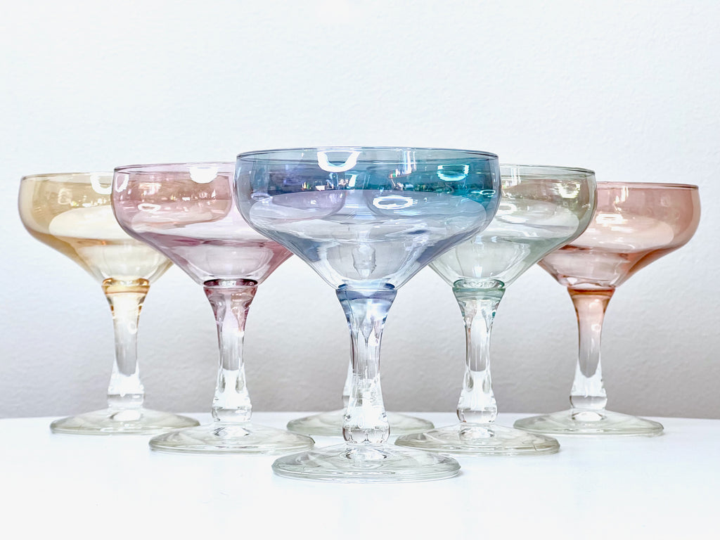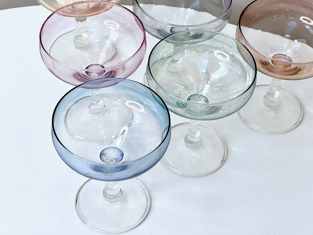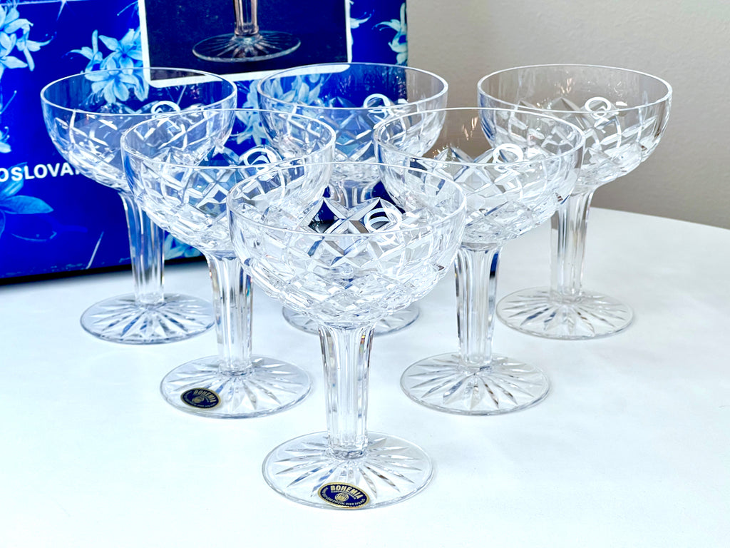 Bohemia Crystal (Czechoslovakia) Hollow-Stem Crystal Champagne Coupe Glasses [Set x6] Original Vintage Packaging *RARE FIND*