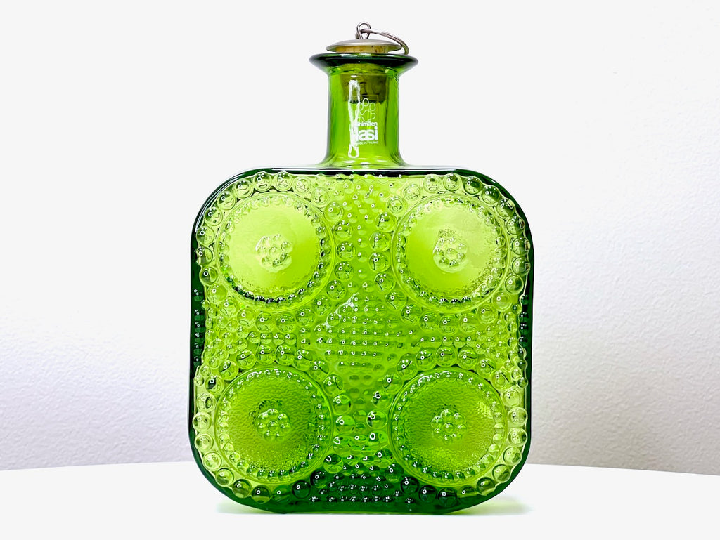The Riihimaki glassworks was founded in 1910, in the town of Riihimaki, Finland, by M. A. Kolehmainen and his son A. P. Kolehmainen. At first they made domestic glass and container glass, and began making glass bottles and window glass in 1919.
