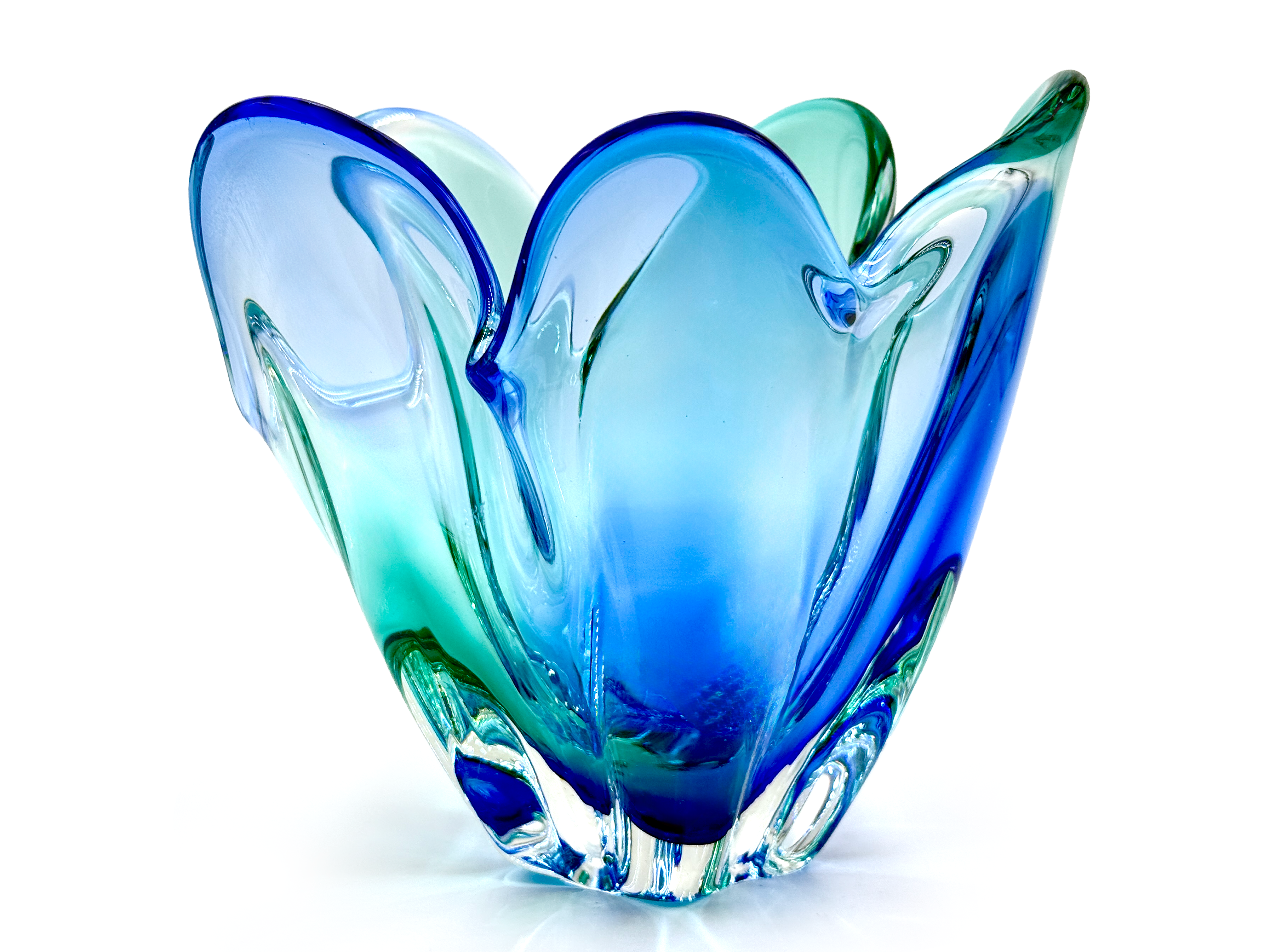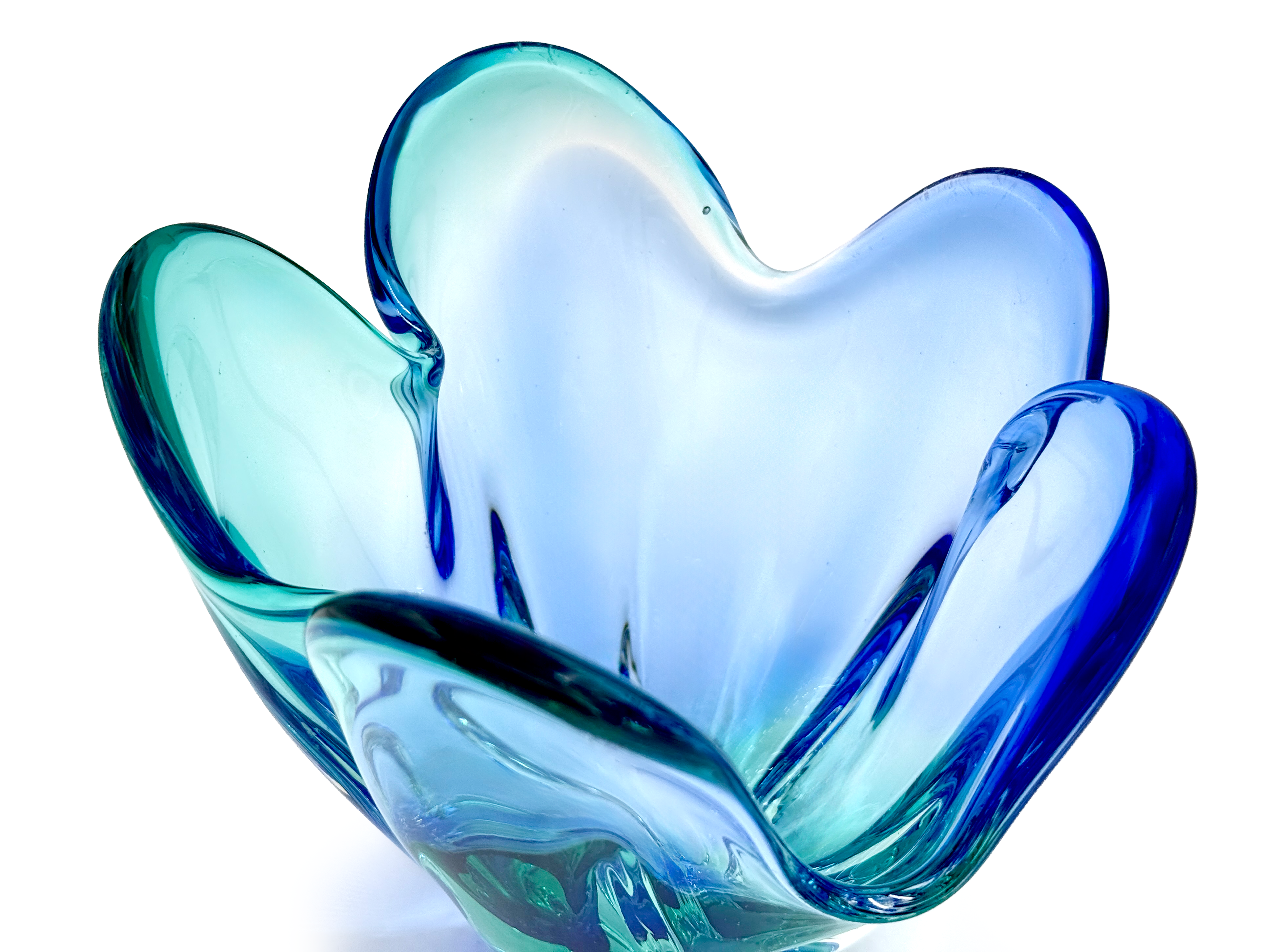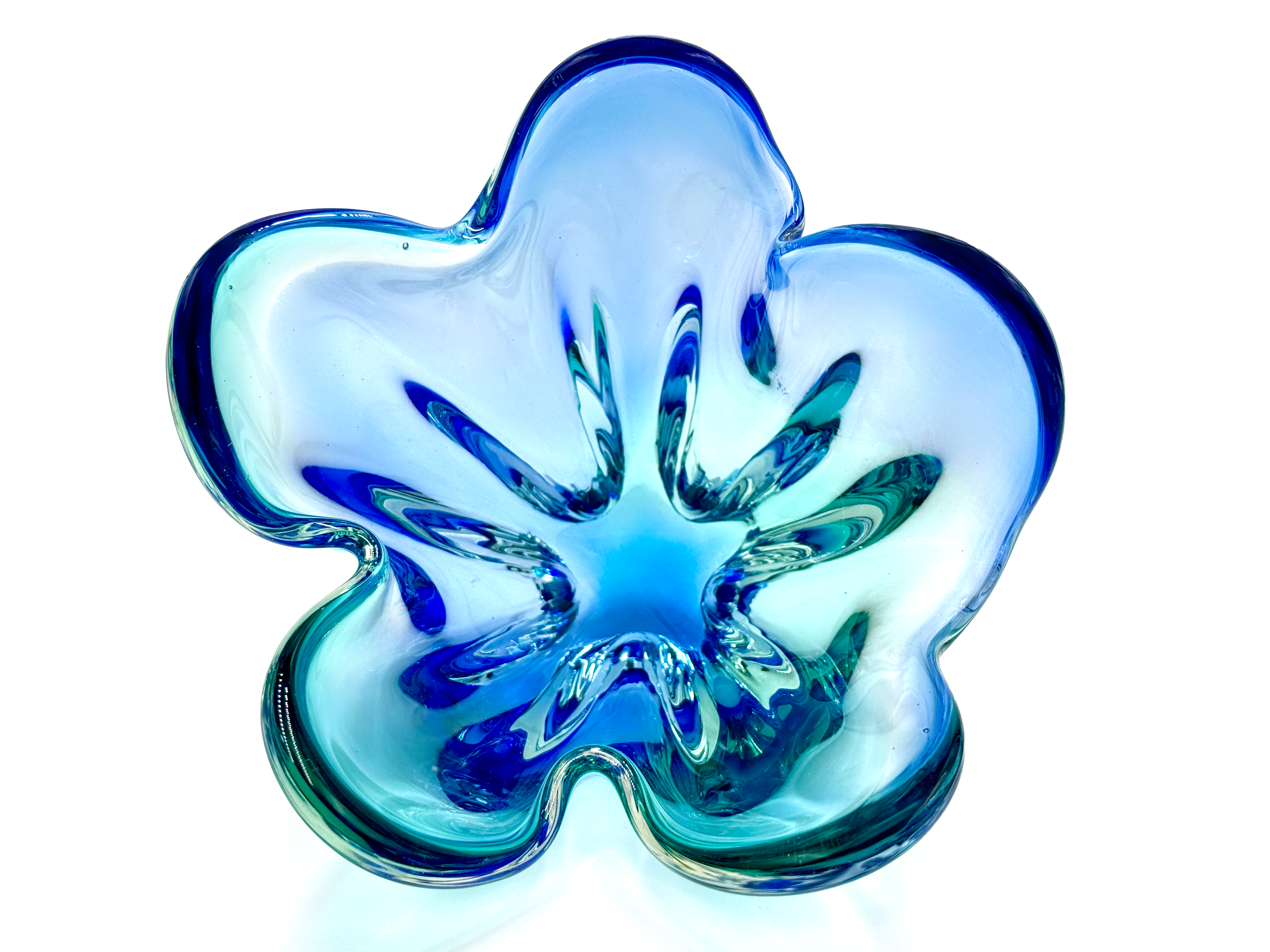 Iwatsu Glass (Japón) de su gama Hineri | Tazón/centro de mesa de pañuelo de vidrio artístico