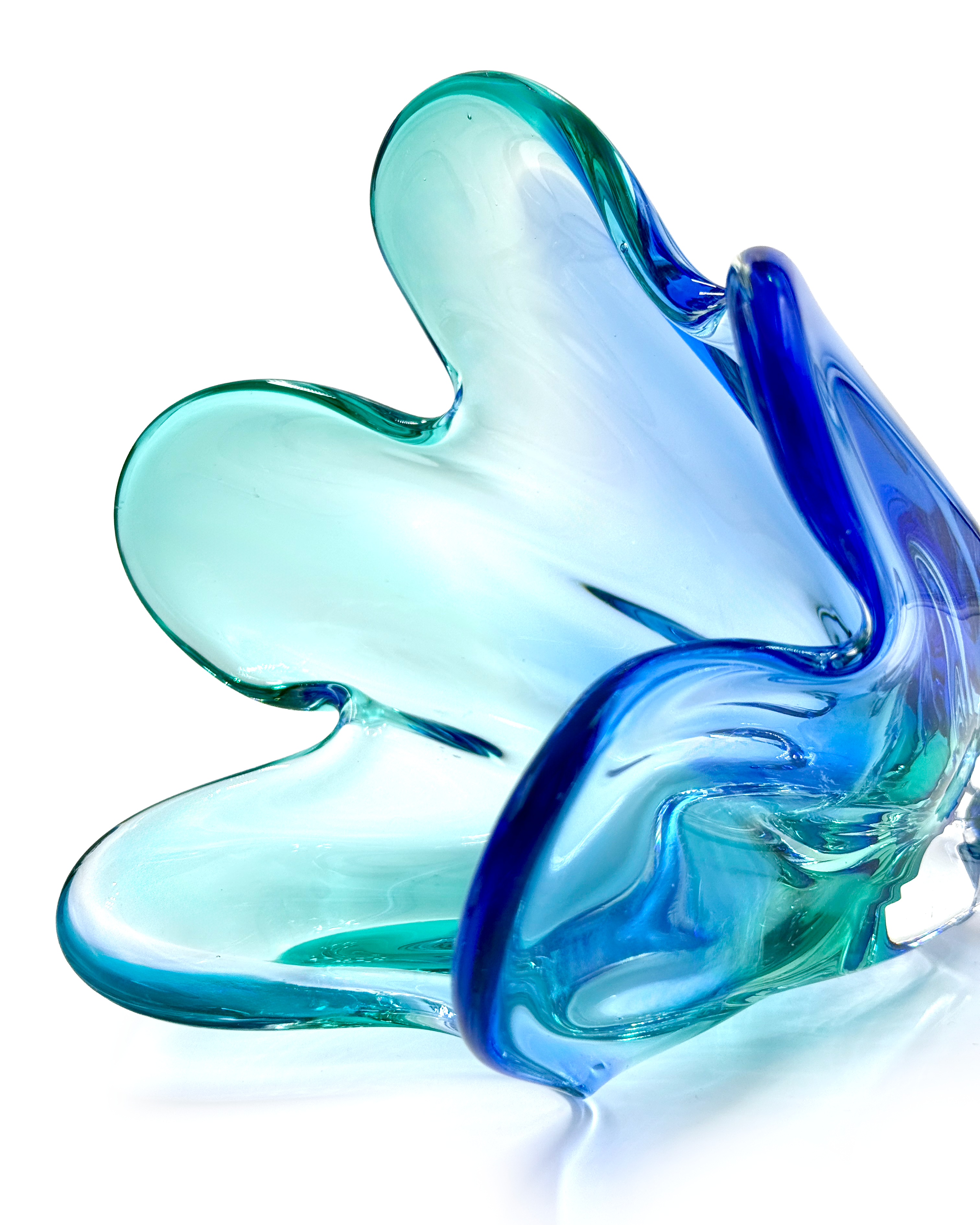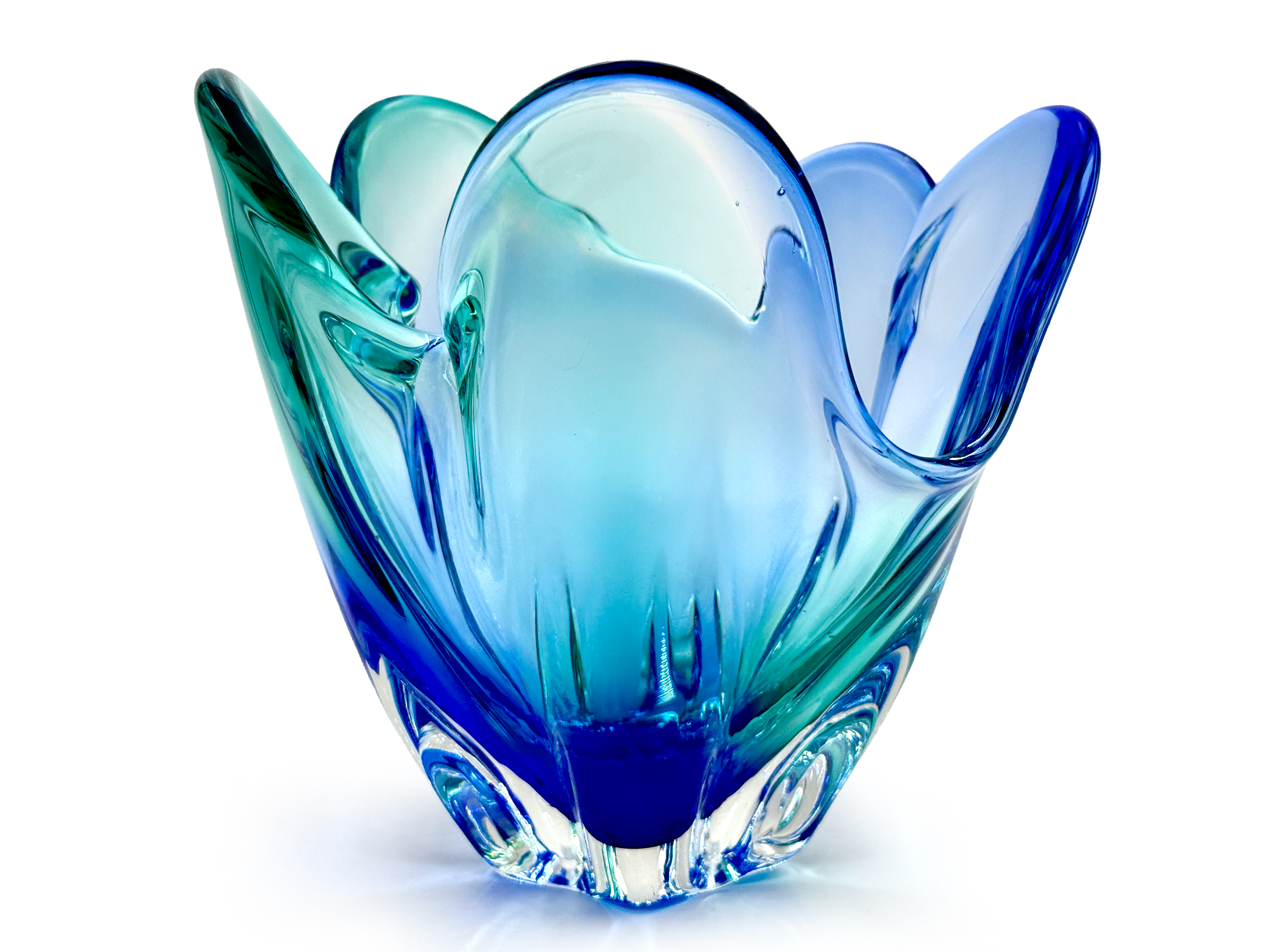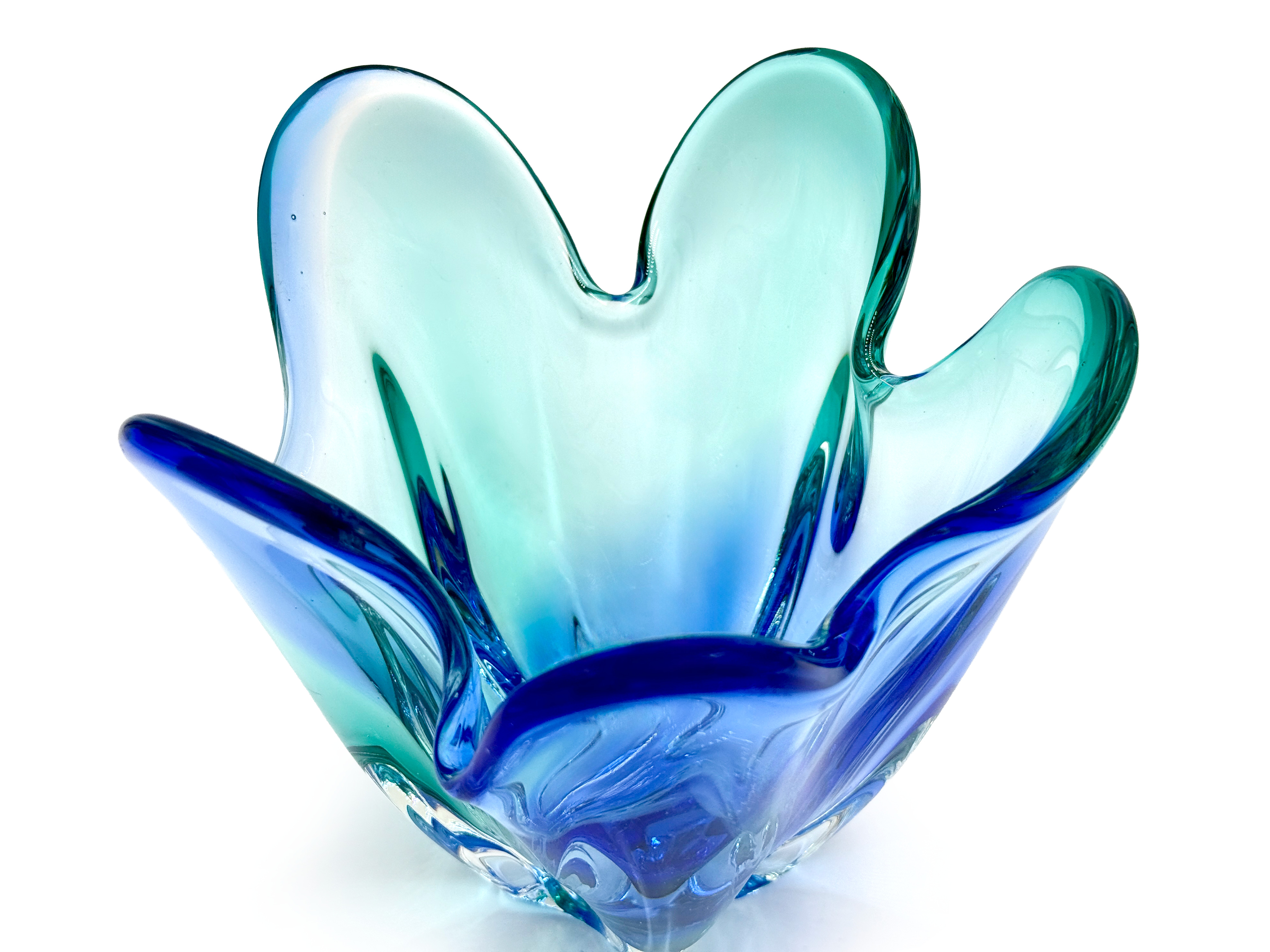 Iwatsu Glass (Japón) de su gama Hineri | Tazón/centro de mesa de pañuelo de vidrio artístico