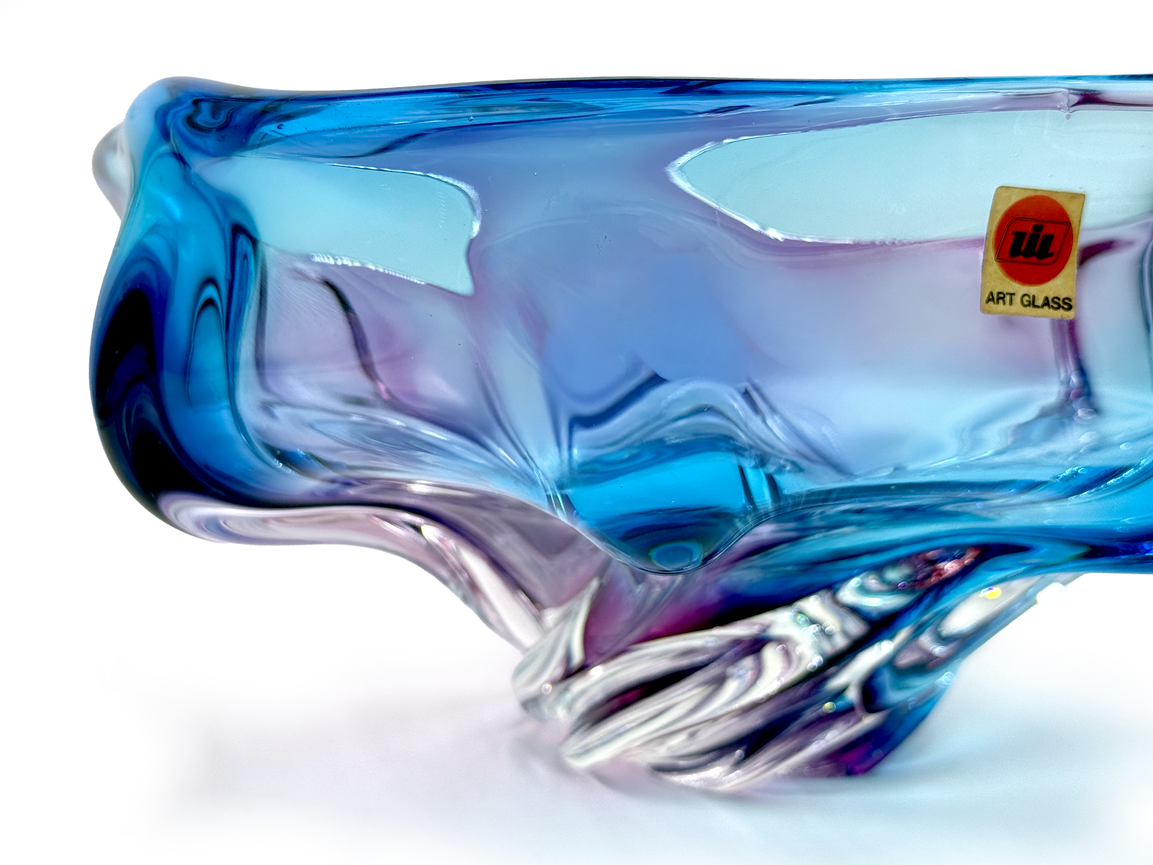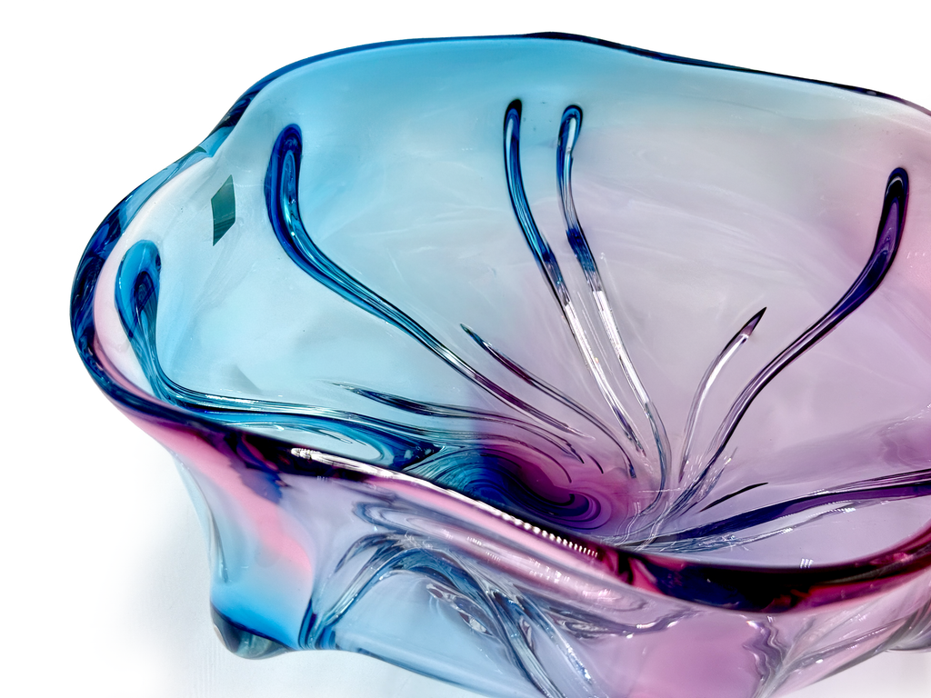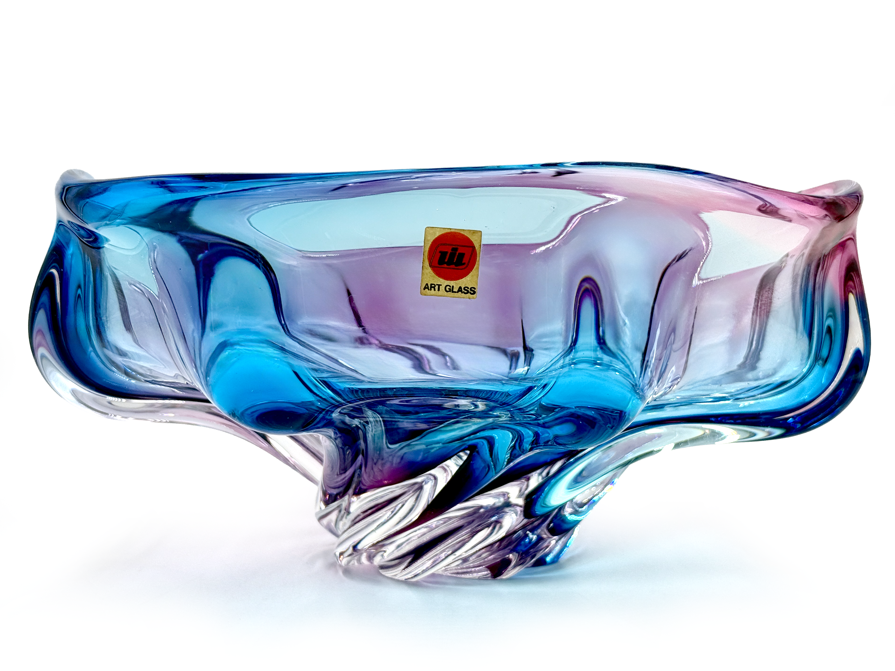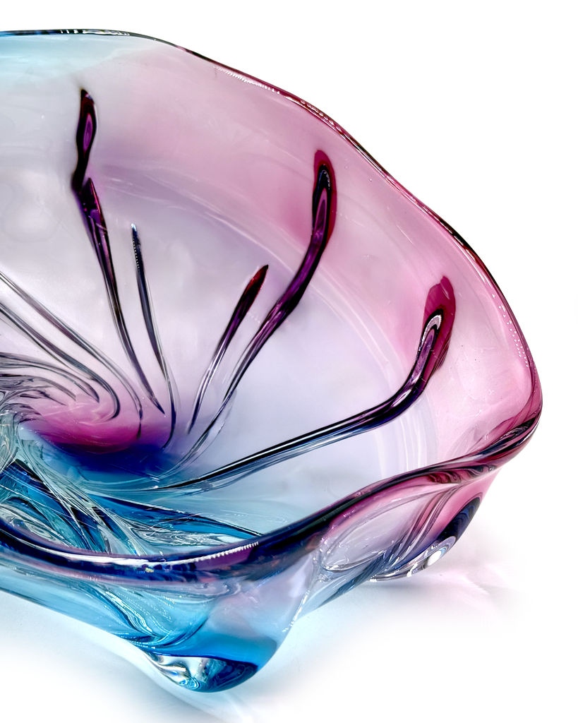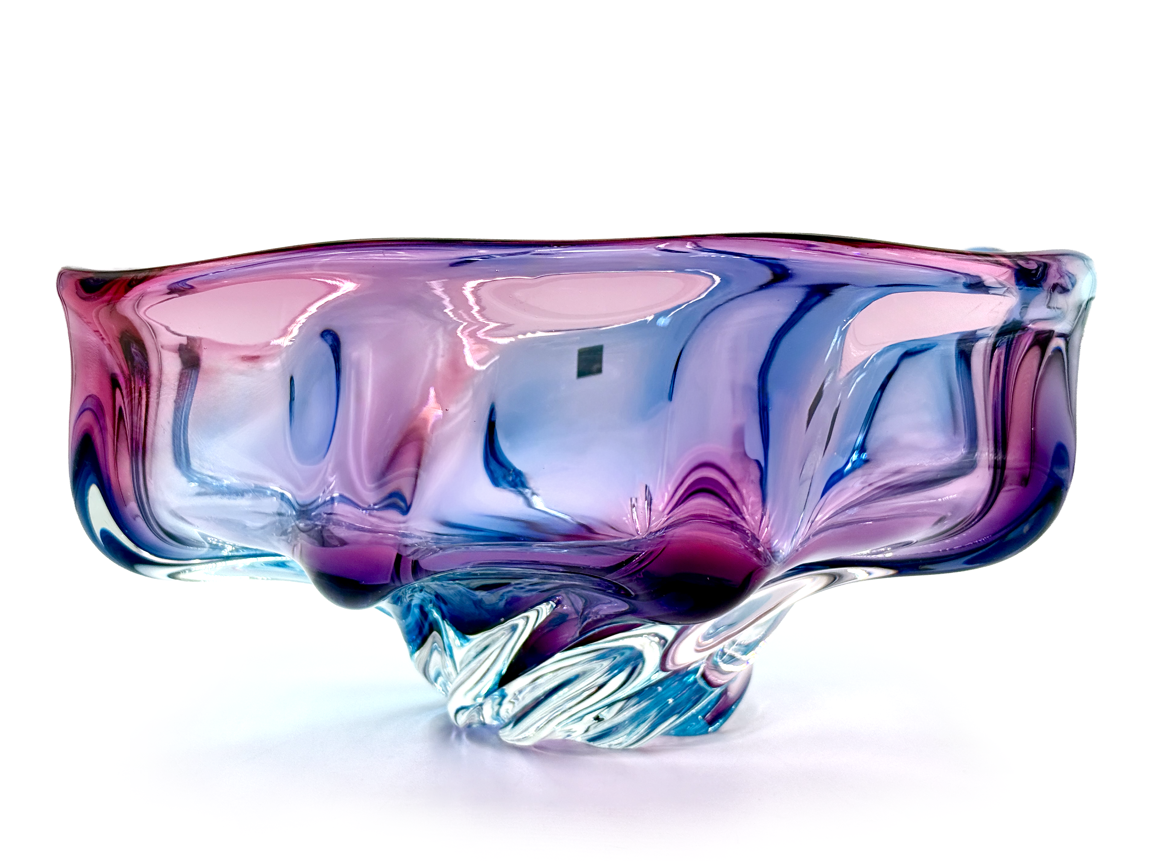 Iwatsu Glass (Japón) de su gama Hineri | Tazón/centro de mesa de pañuelo de vidrio artístico
