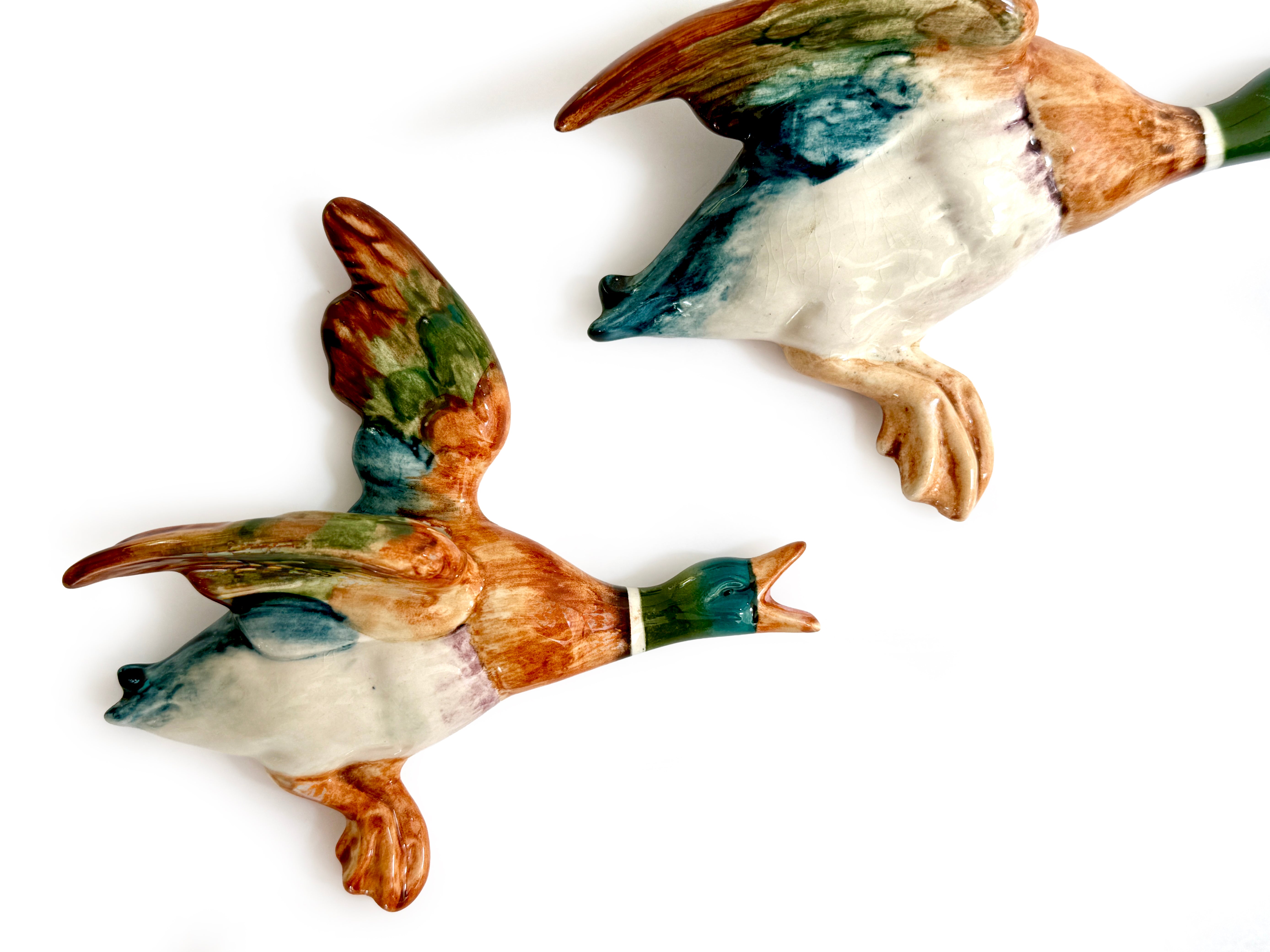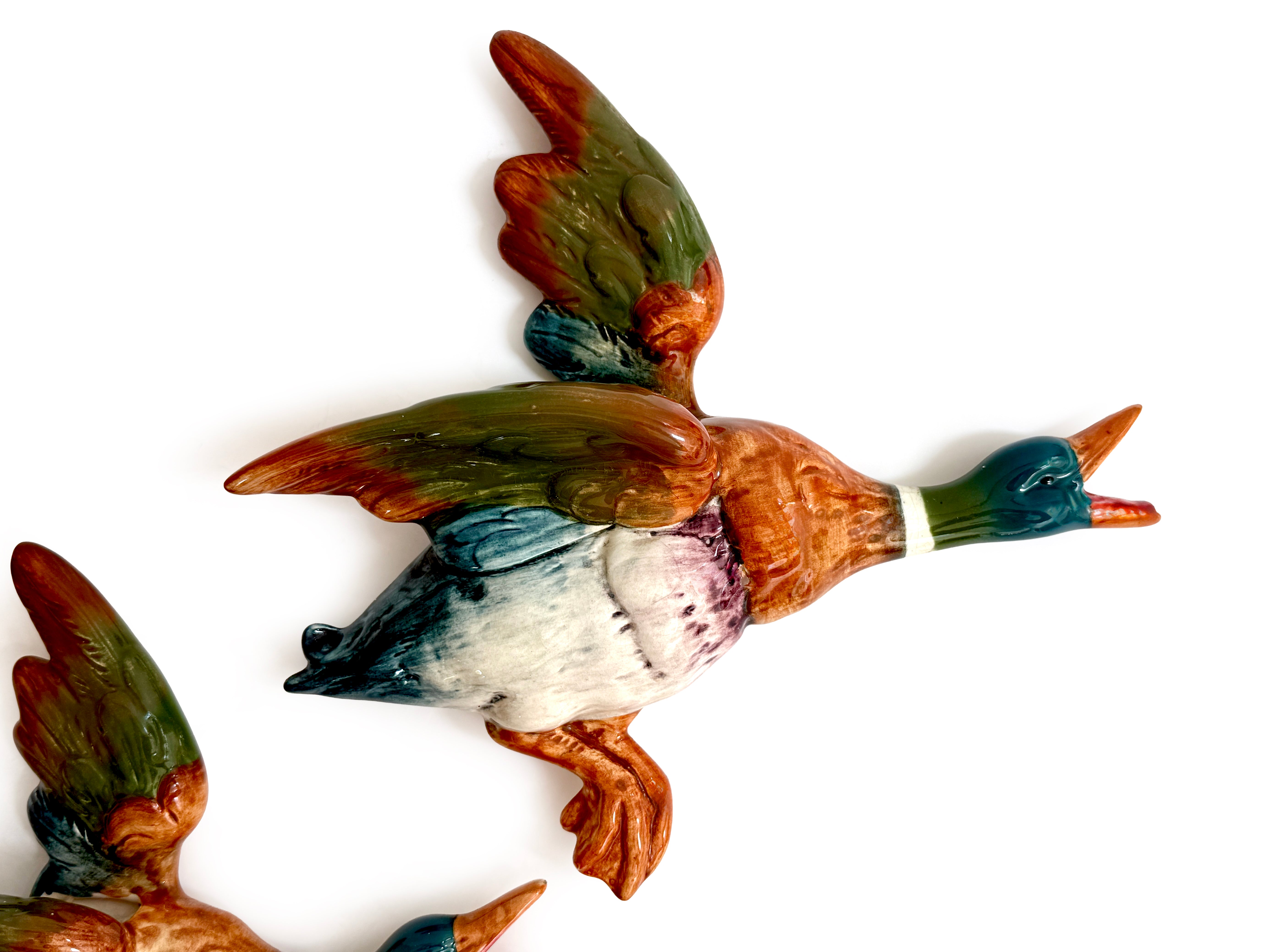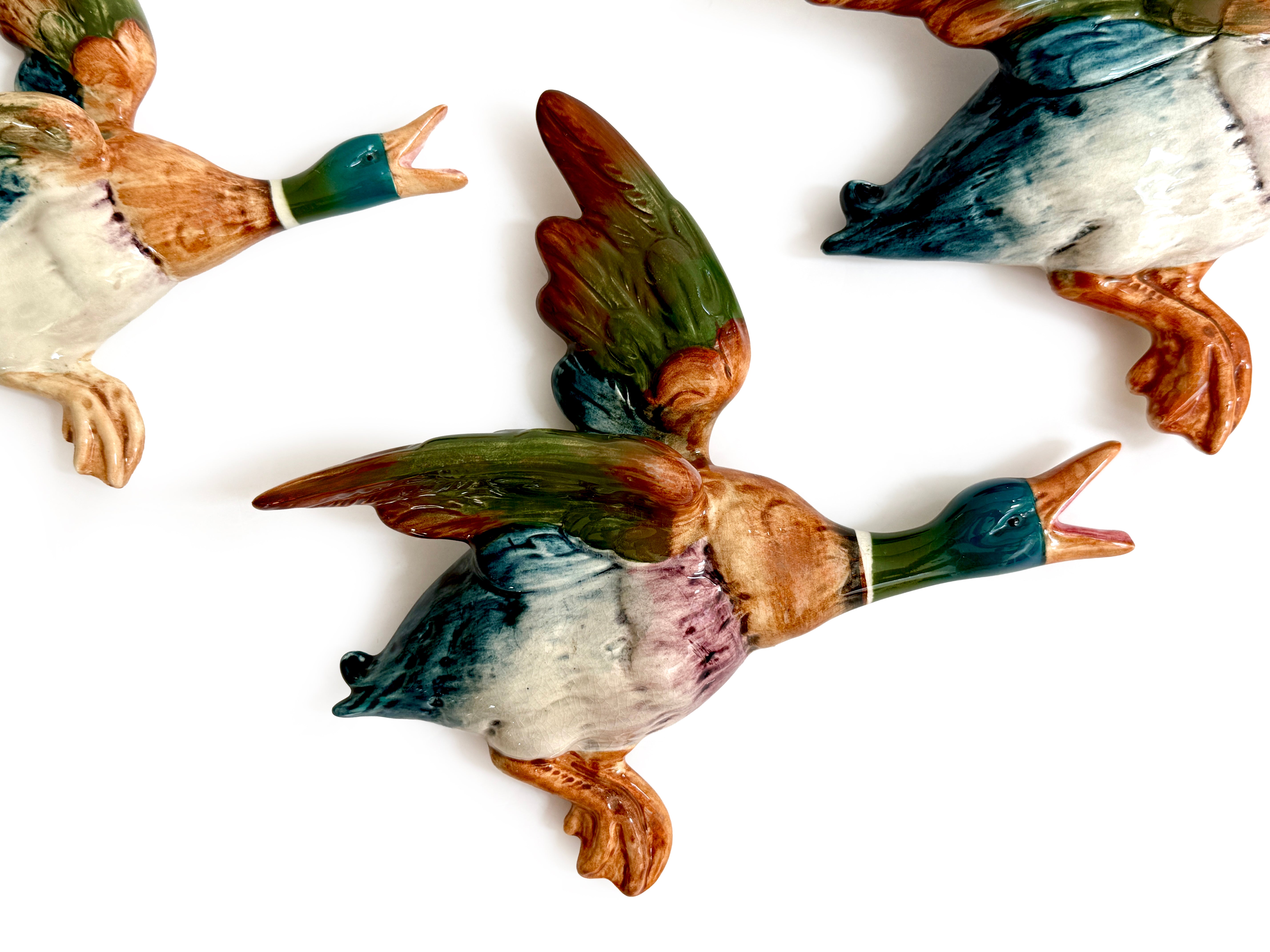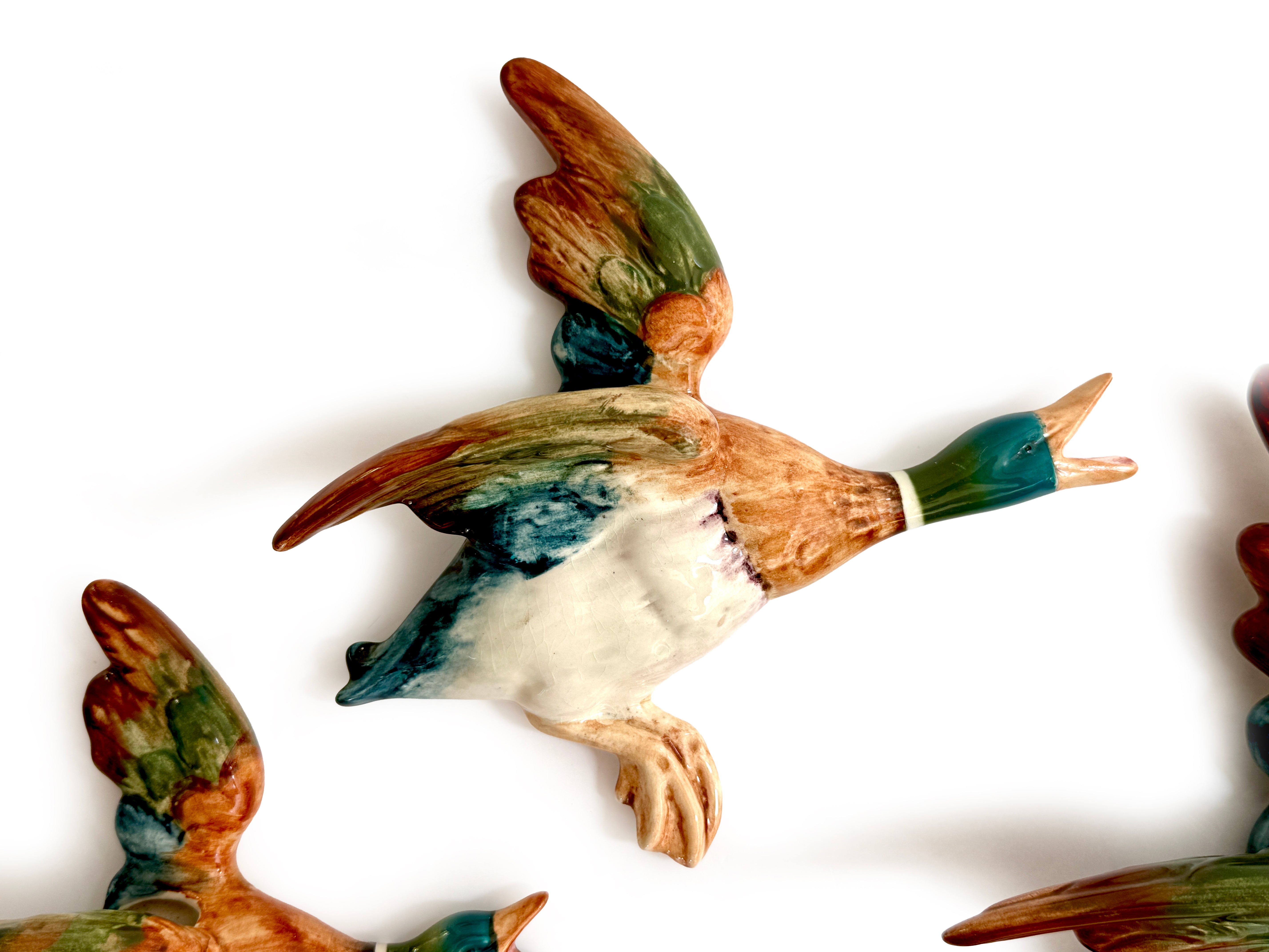 Un conjunto absolutamente impresionante de cuatro patos/ánades voladores de cerámica: ¡simplemente GUAU!