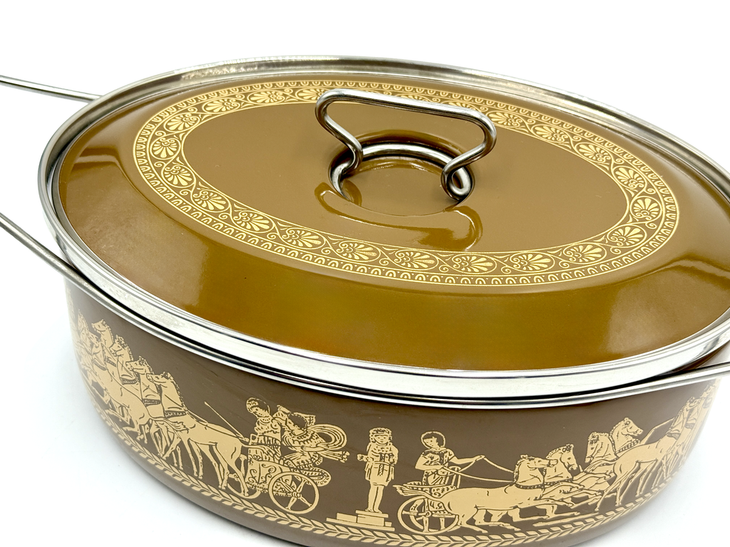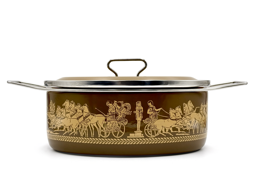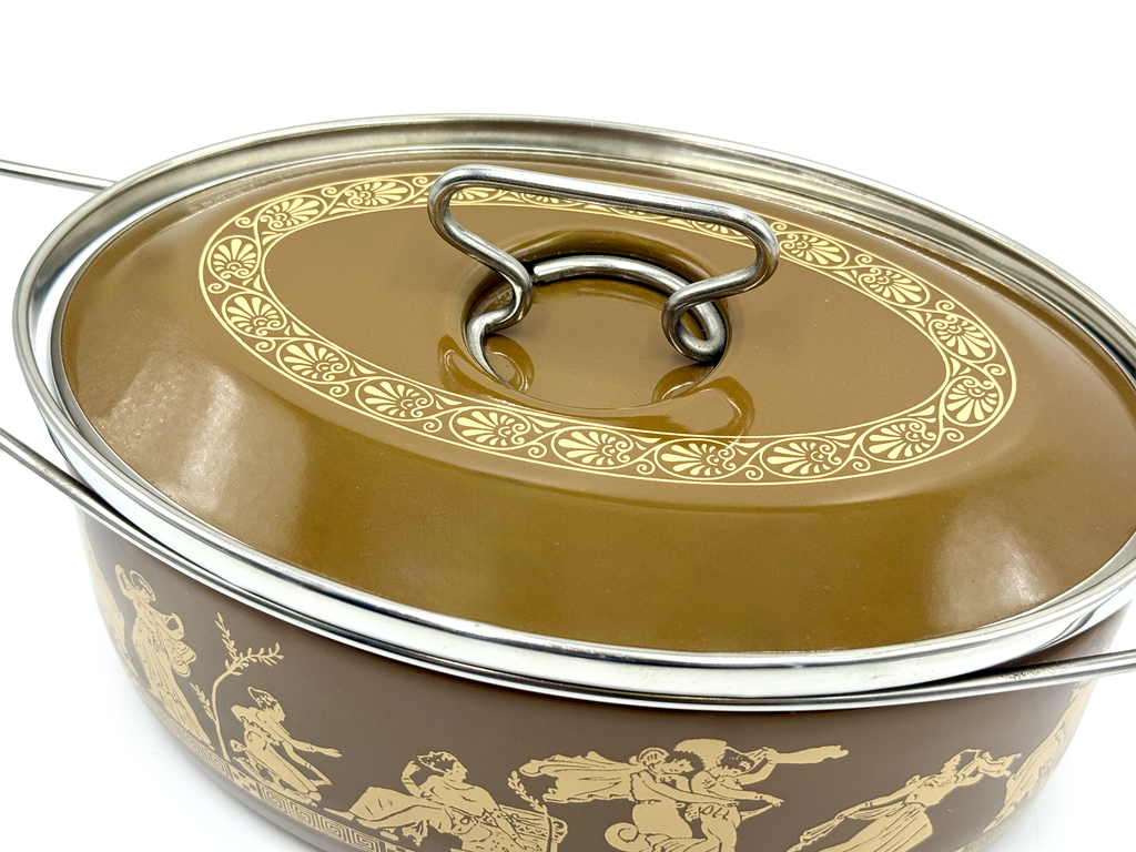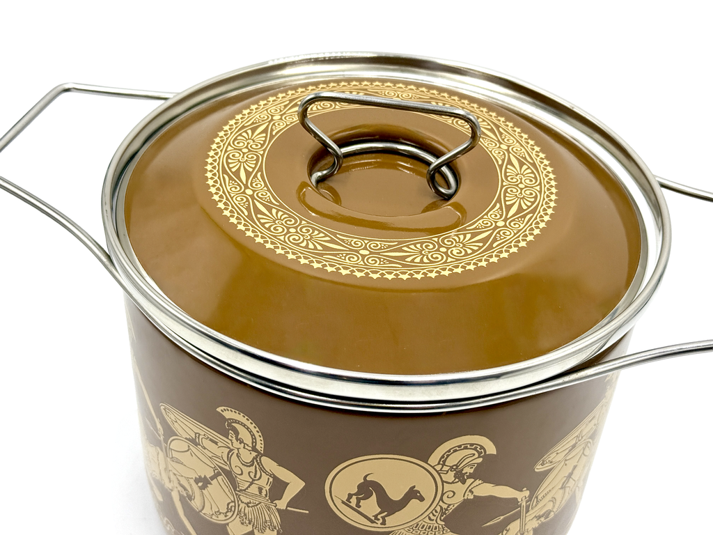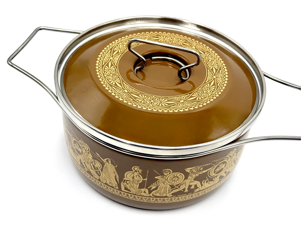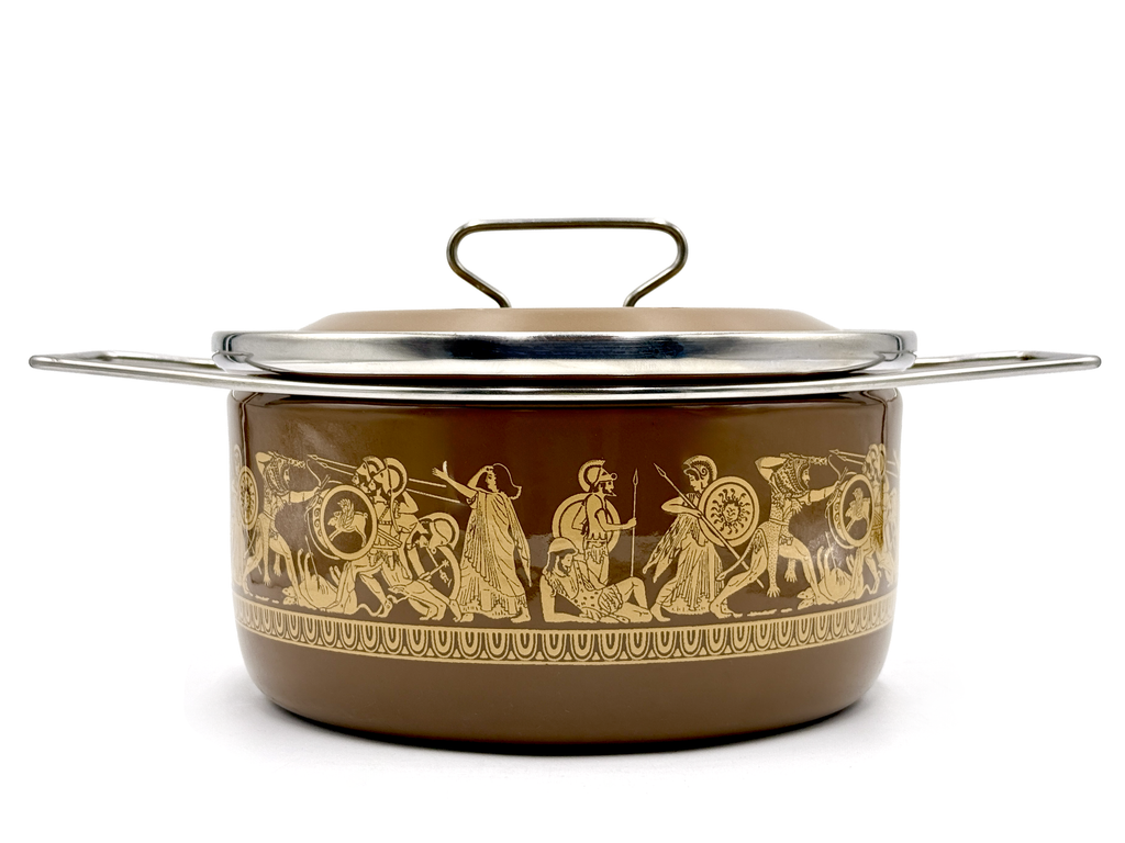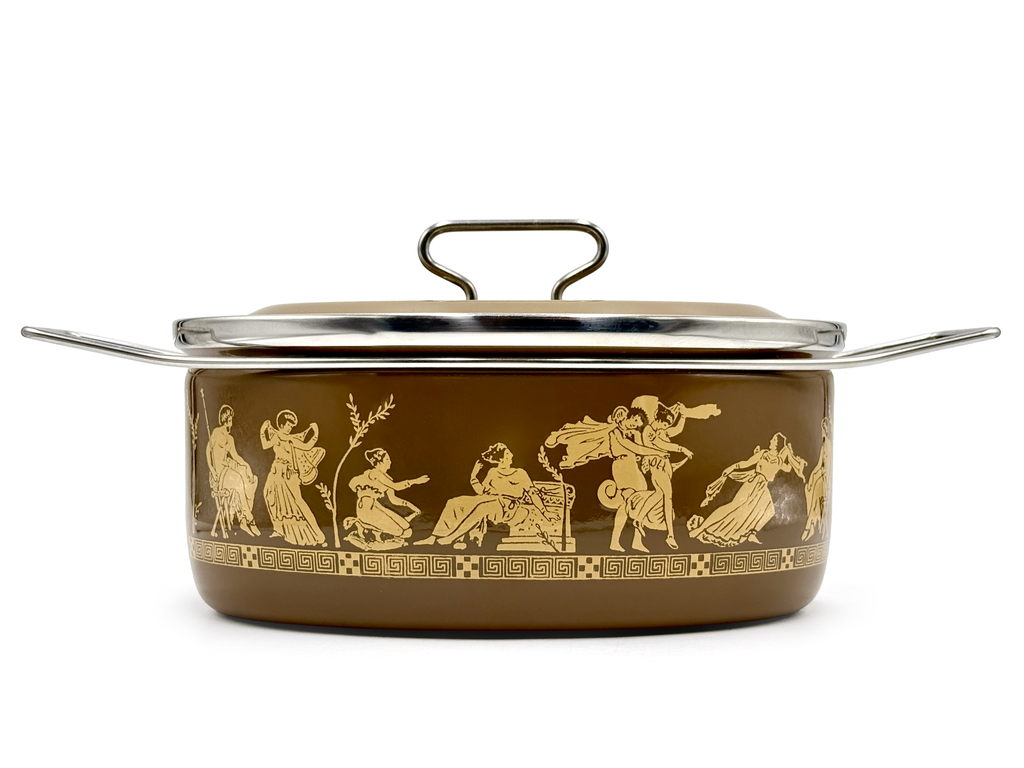 Cacerola redonda mediana esmaltada Siltal (Italia) | Tema griego/romano | Diseñado por Carla Agnelli