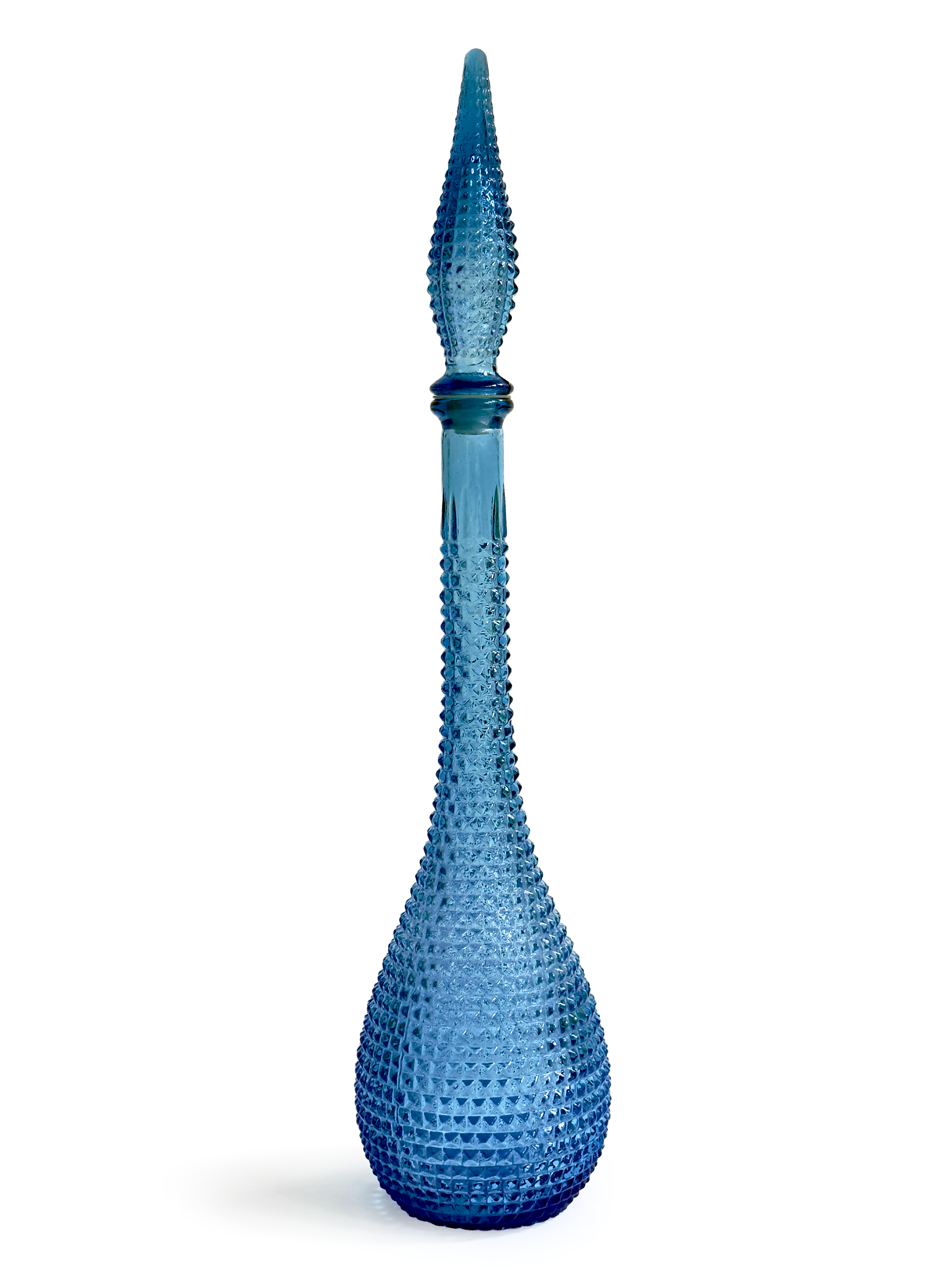 Una jarra/botella alta (también conocida como "botella de genio"), completa con tapón de vidrio original.