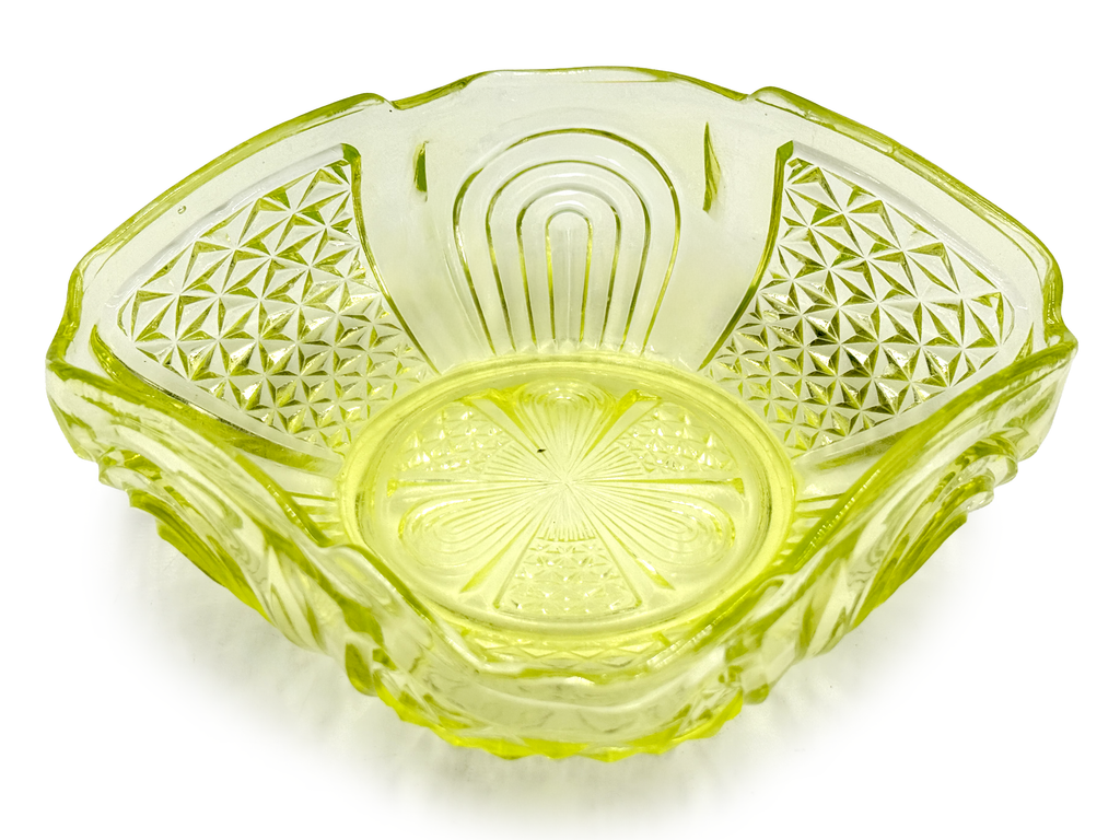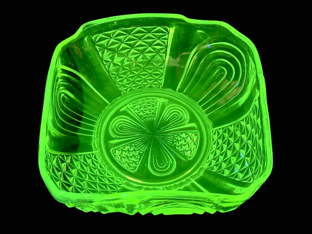 Crown Crystal Glass (Australia) Serie 29 - Ensaladera cuadrada 'Mirror and Star' (también conocida como Petaloid), en rosa rosa | Modelo #2924 *HALLAZGO RARO*