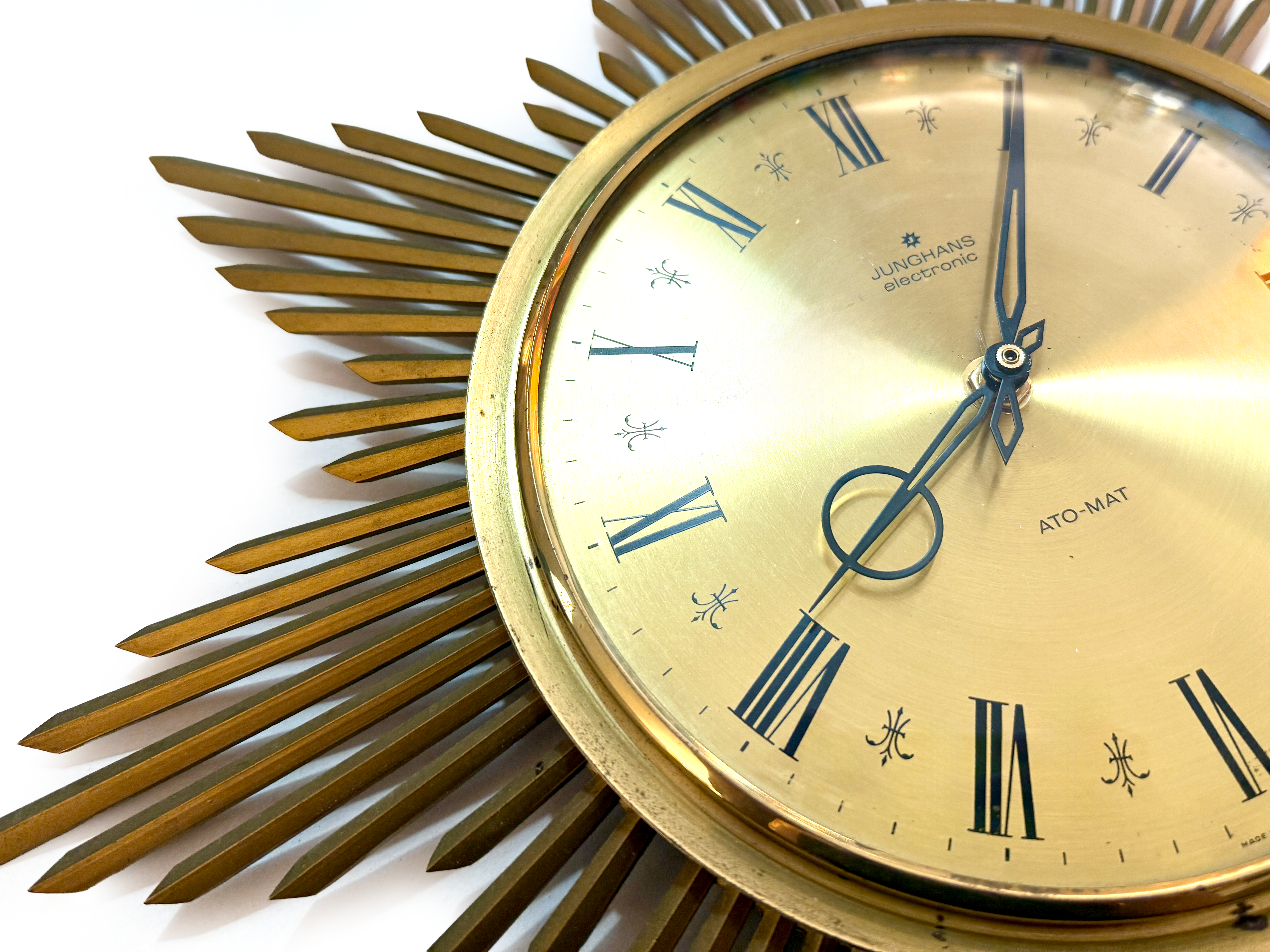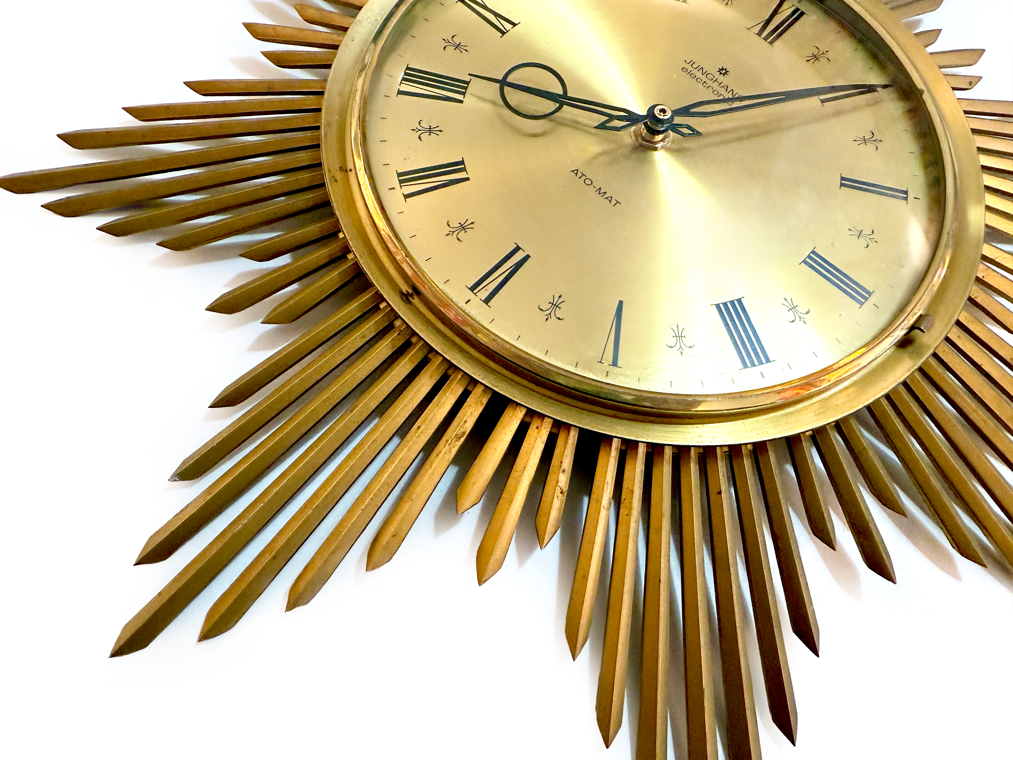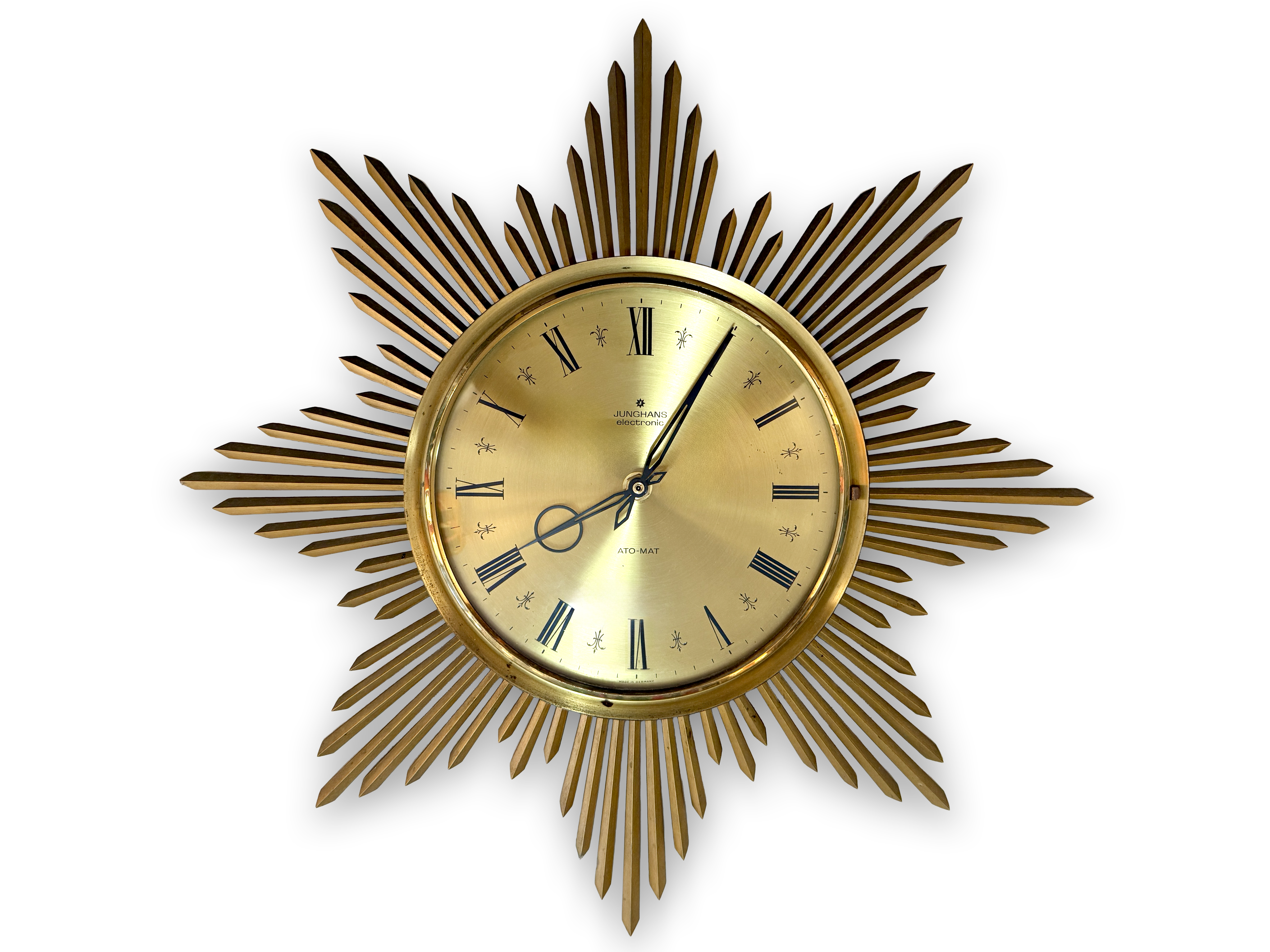 Un increíble reloj de pared vintage con forma de estrella, fabricado por Junghans en Schramberg, Alemania, en la década de 1960.