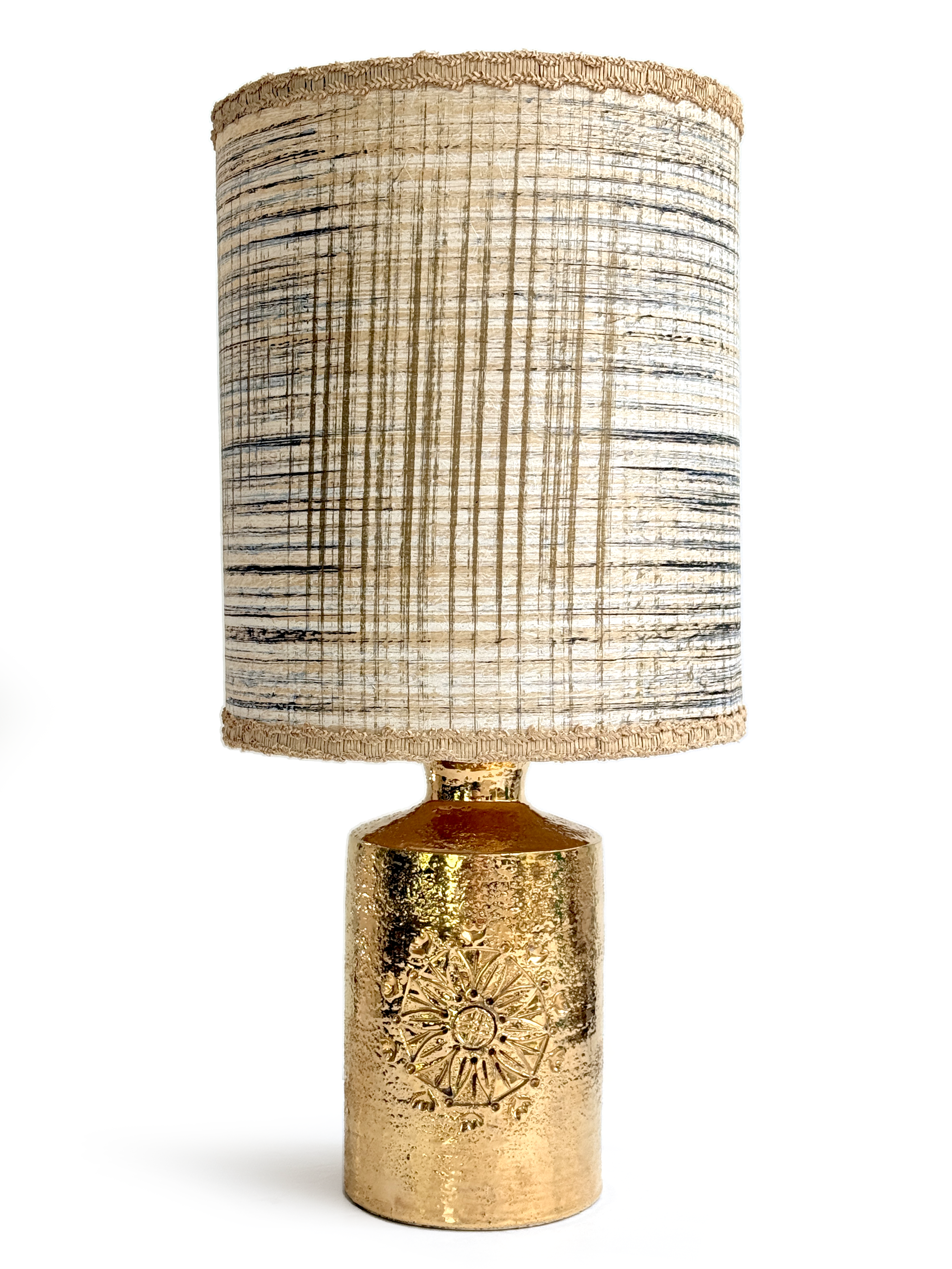 Se ha combinado con una pantalla de lámpara hecha a mano con tela vintage, cortesía de nuestros amigos de Retrotastik .