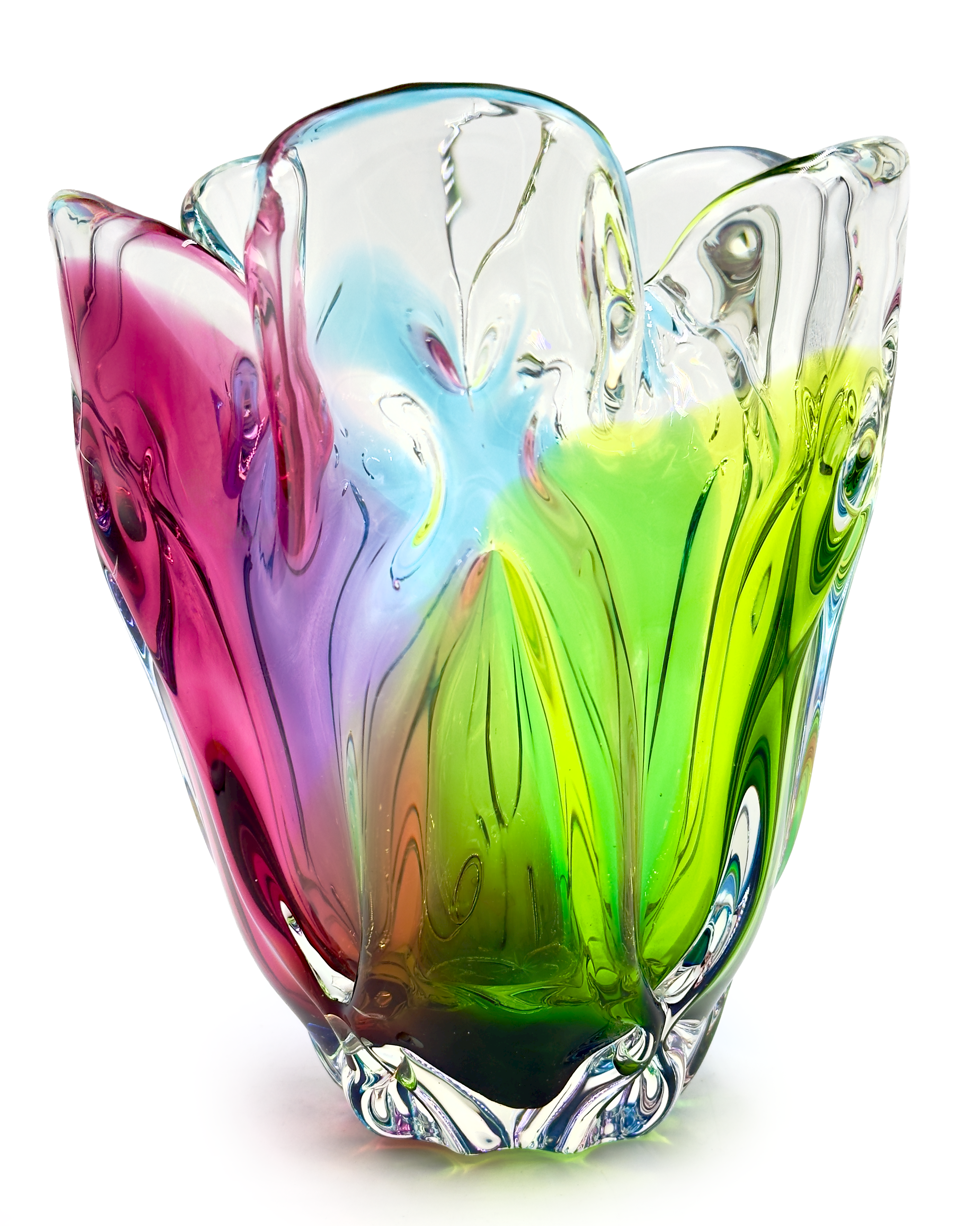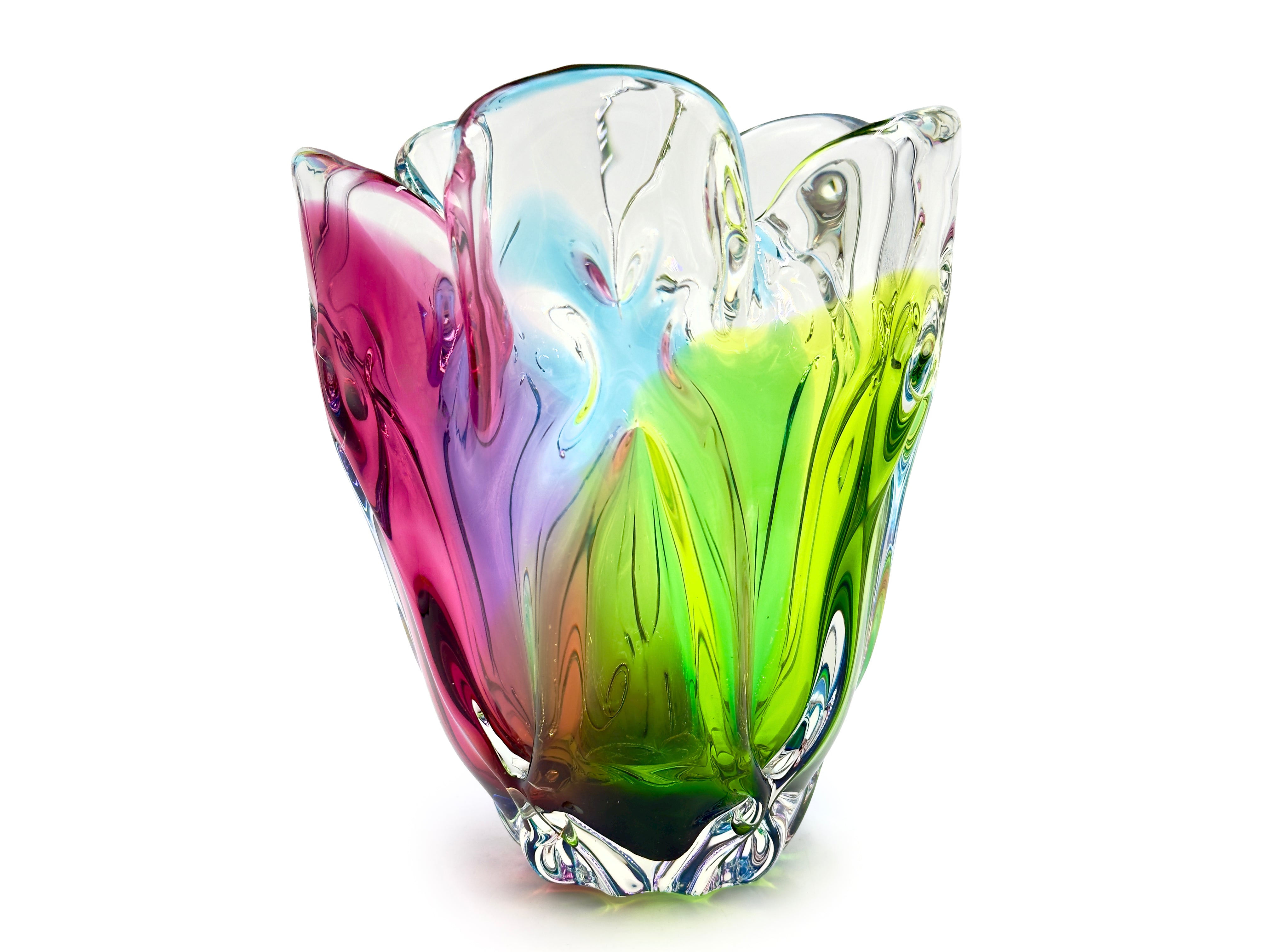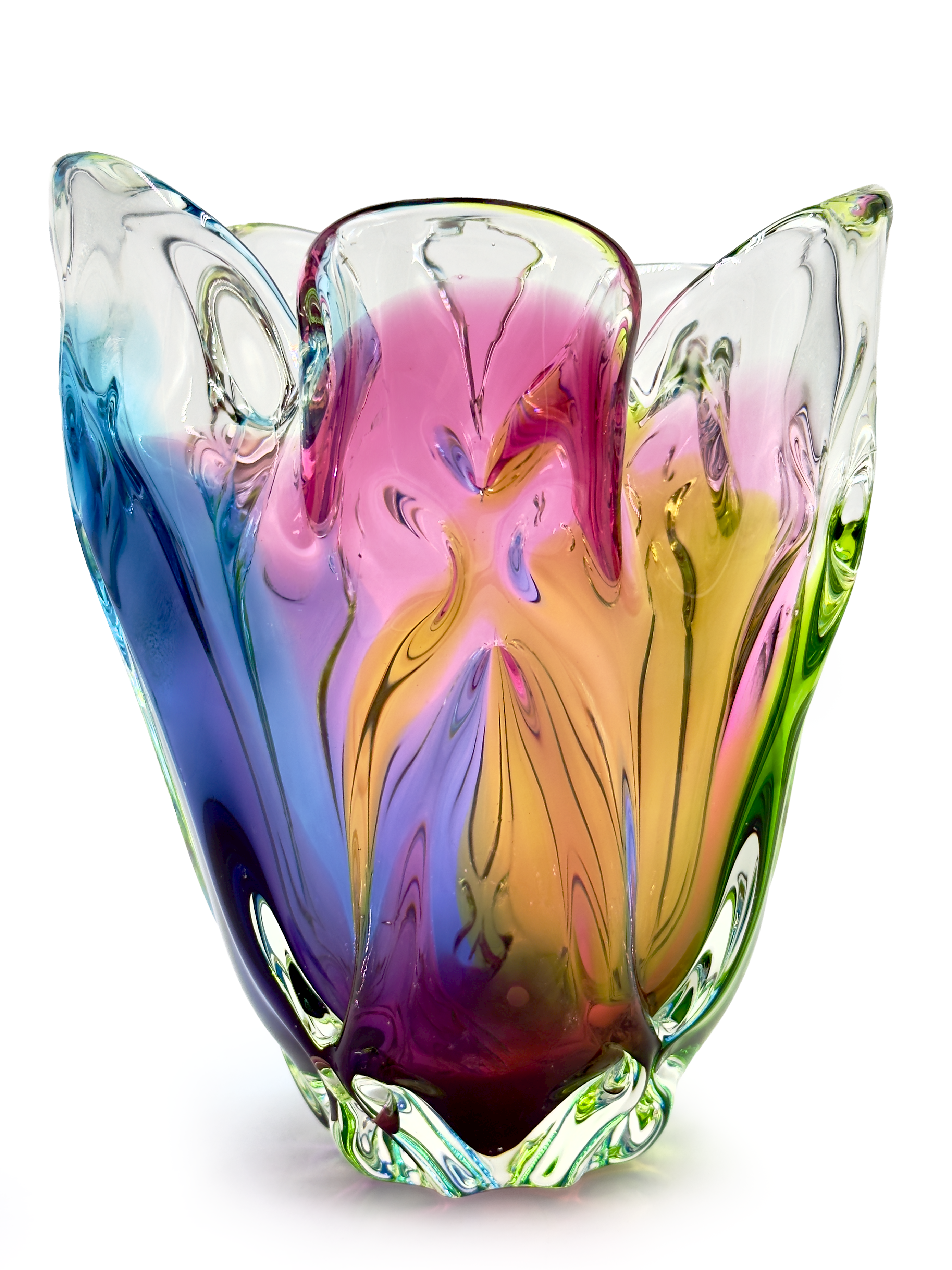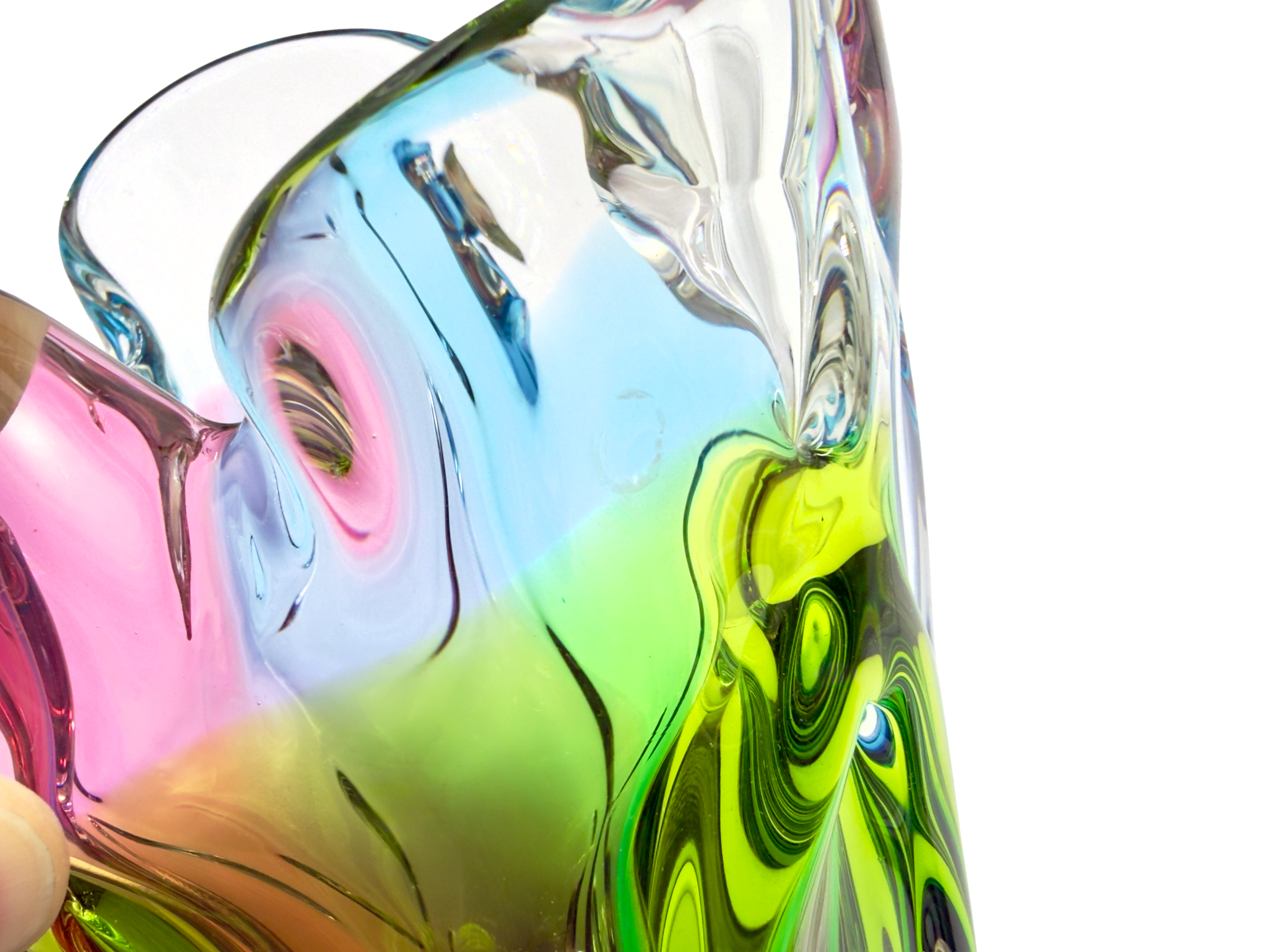 Un hermoso jarrón, en una increíble combinación multicolor que emite una mezcla de colores a medida que se cruzan.