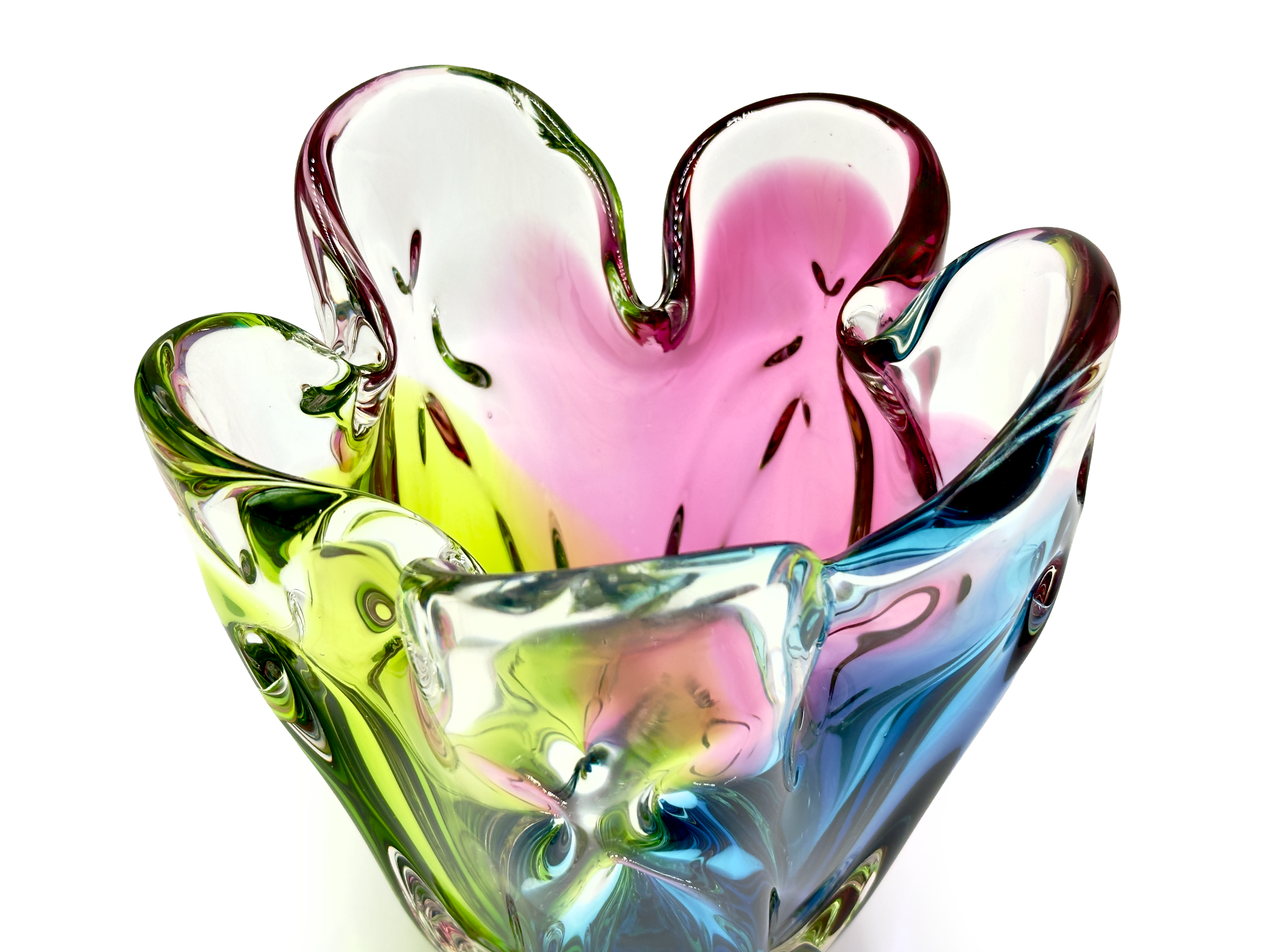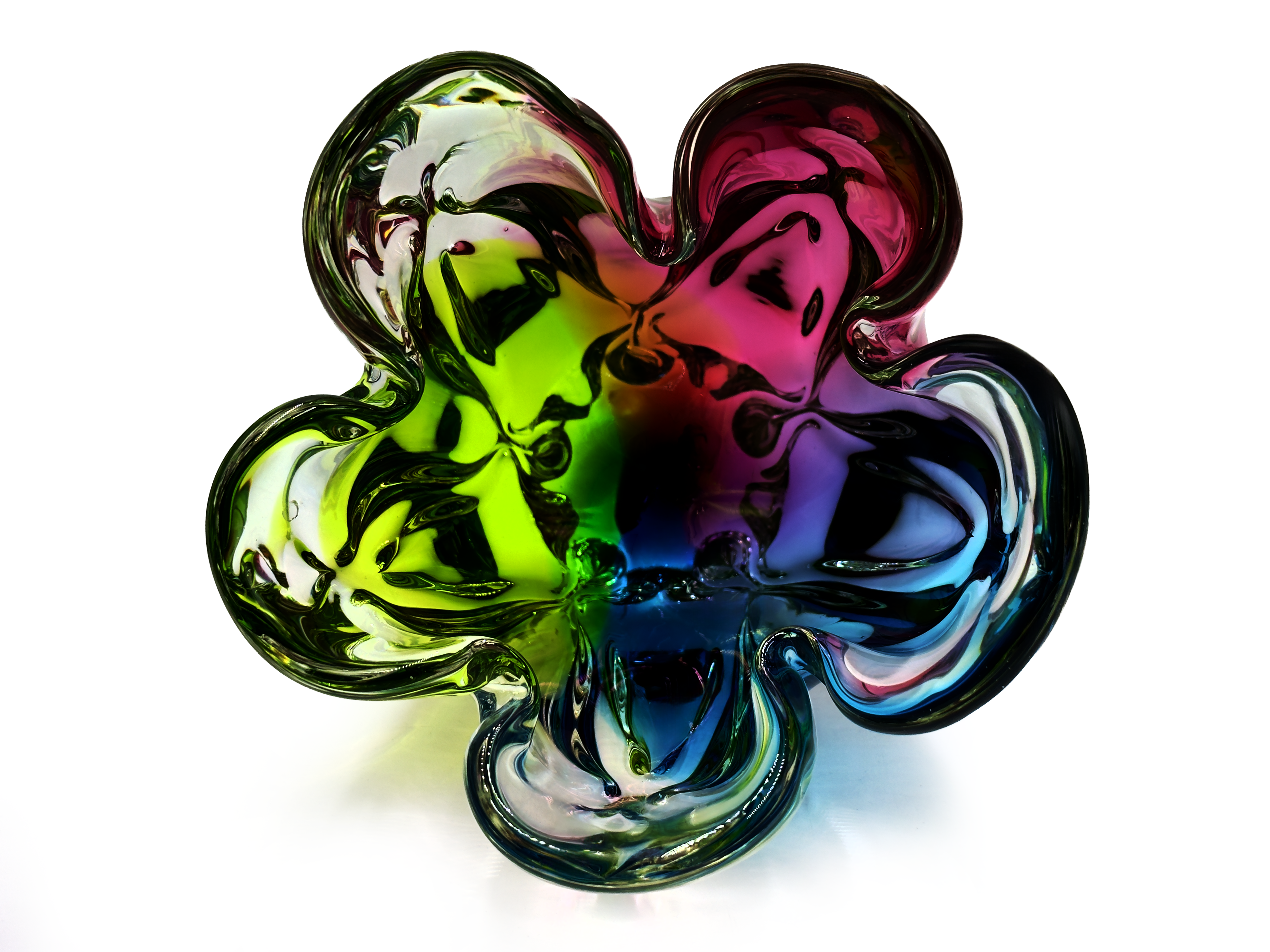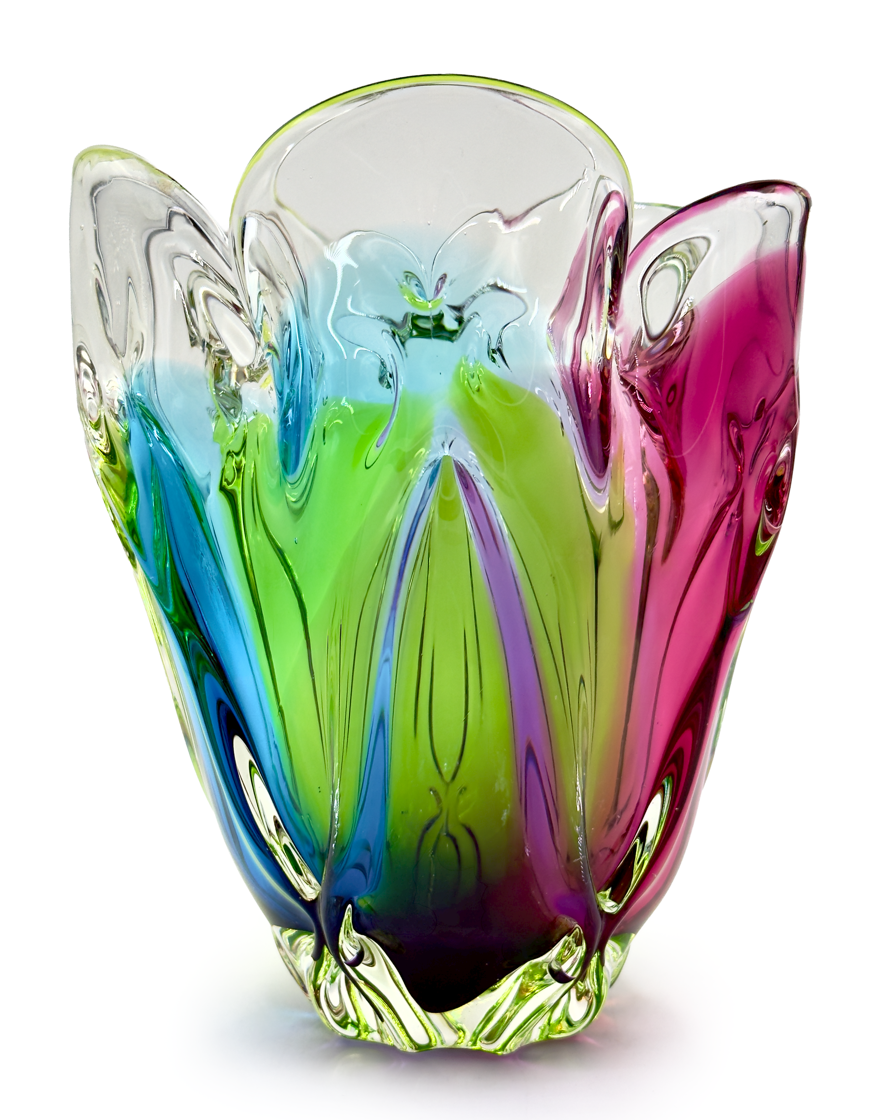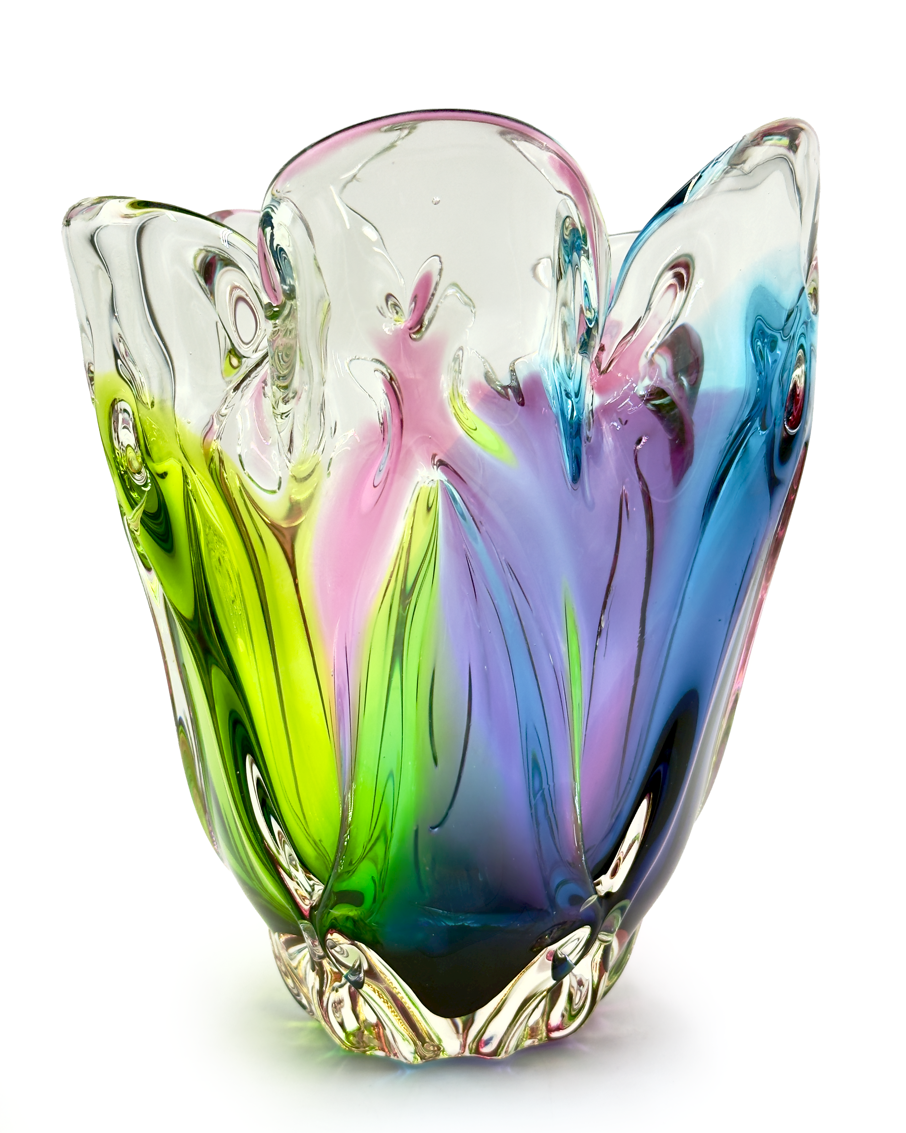 Un hermoso jarrón, en una increíble combinación multicolor que emite una mezcla de colores a medida que se cruzan.