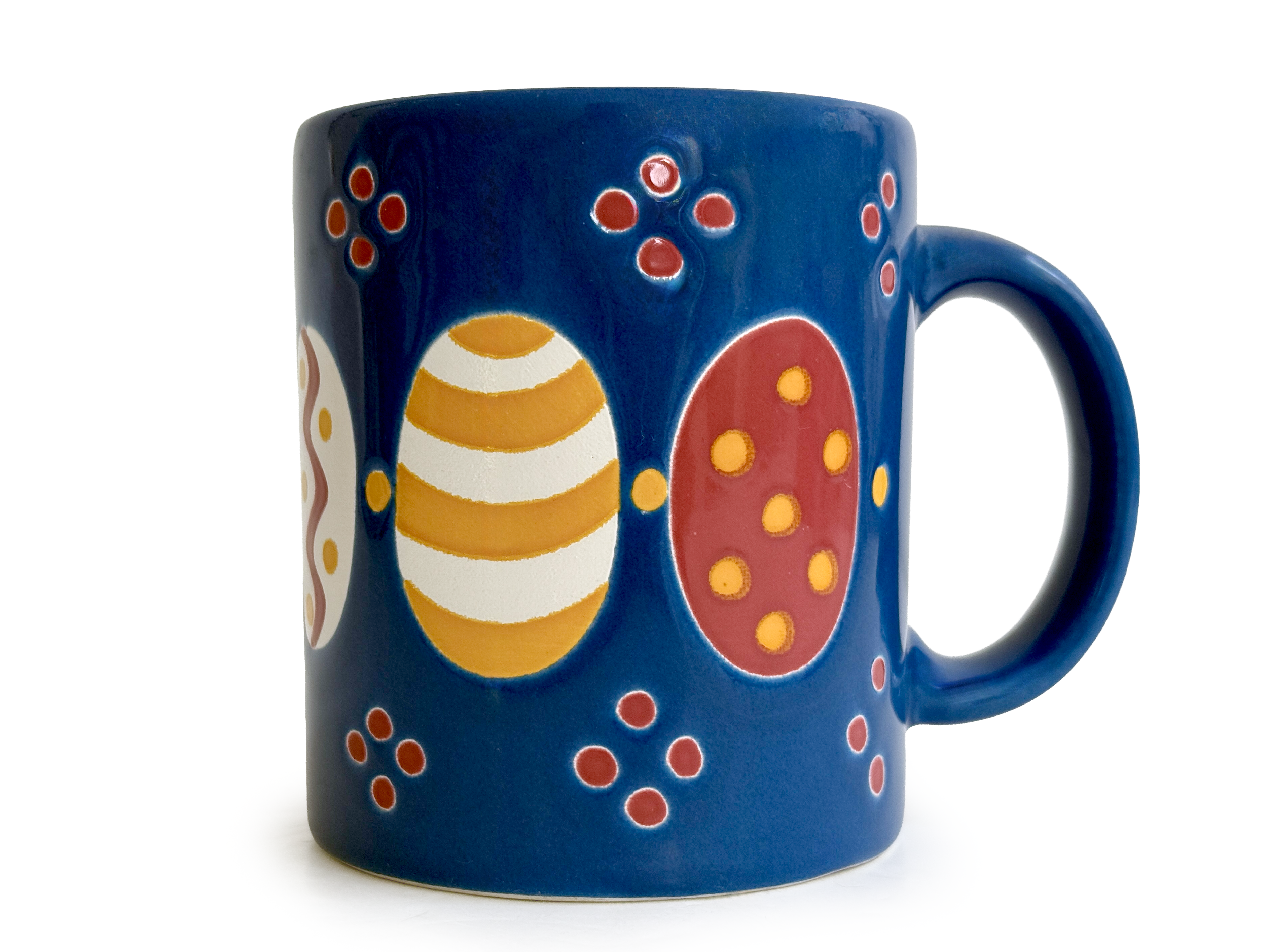 La société a produit un certain nombre de motifs amusants et lumineux au cours de ses années de popularité, notamment le motif « Cœur » bien connu et très recherché. Disponible en deux options de design – petits cœurs ou grands cœurs – la simple forme de cœur blanc apparaît sur le fond rouge vif.