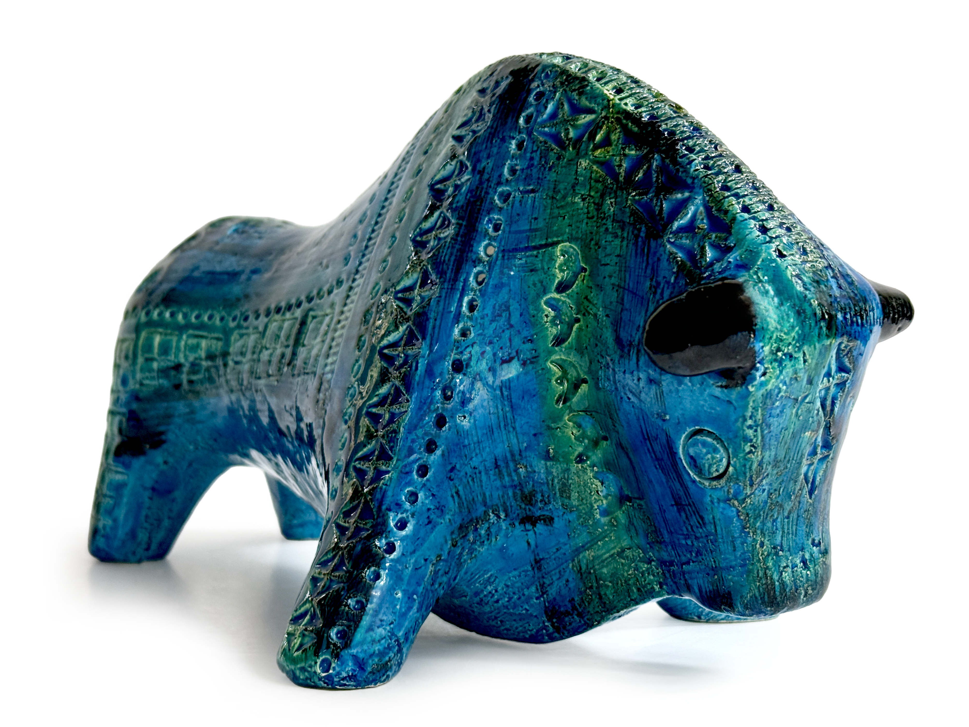Bitossi (Italie) Taureau 'Rimini Blu' 13"