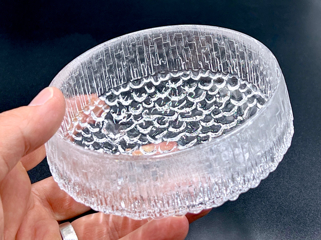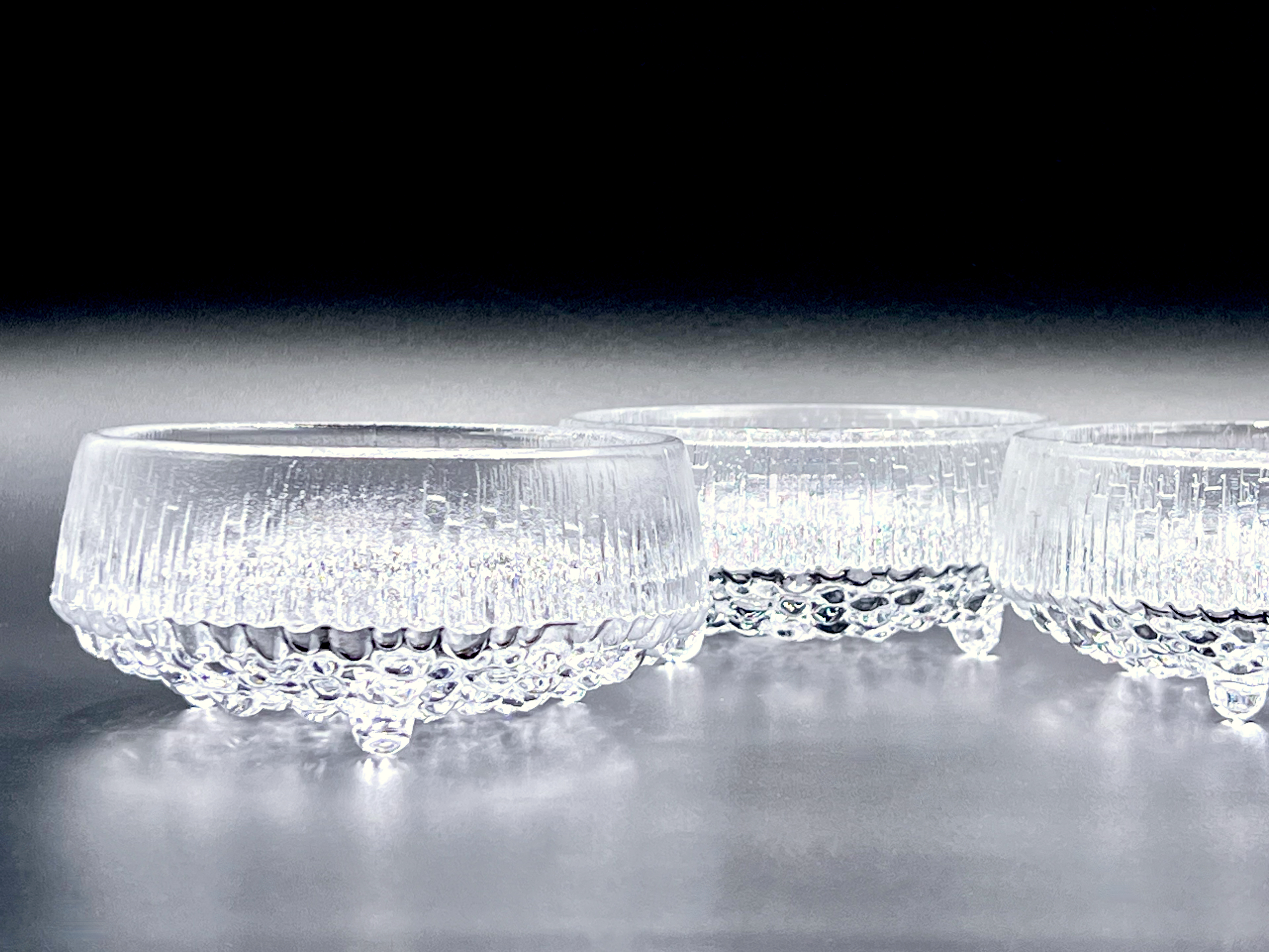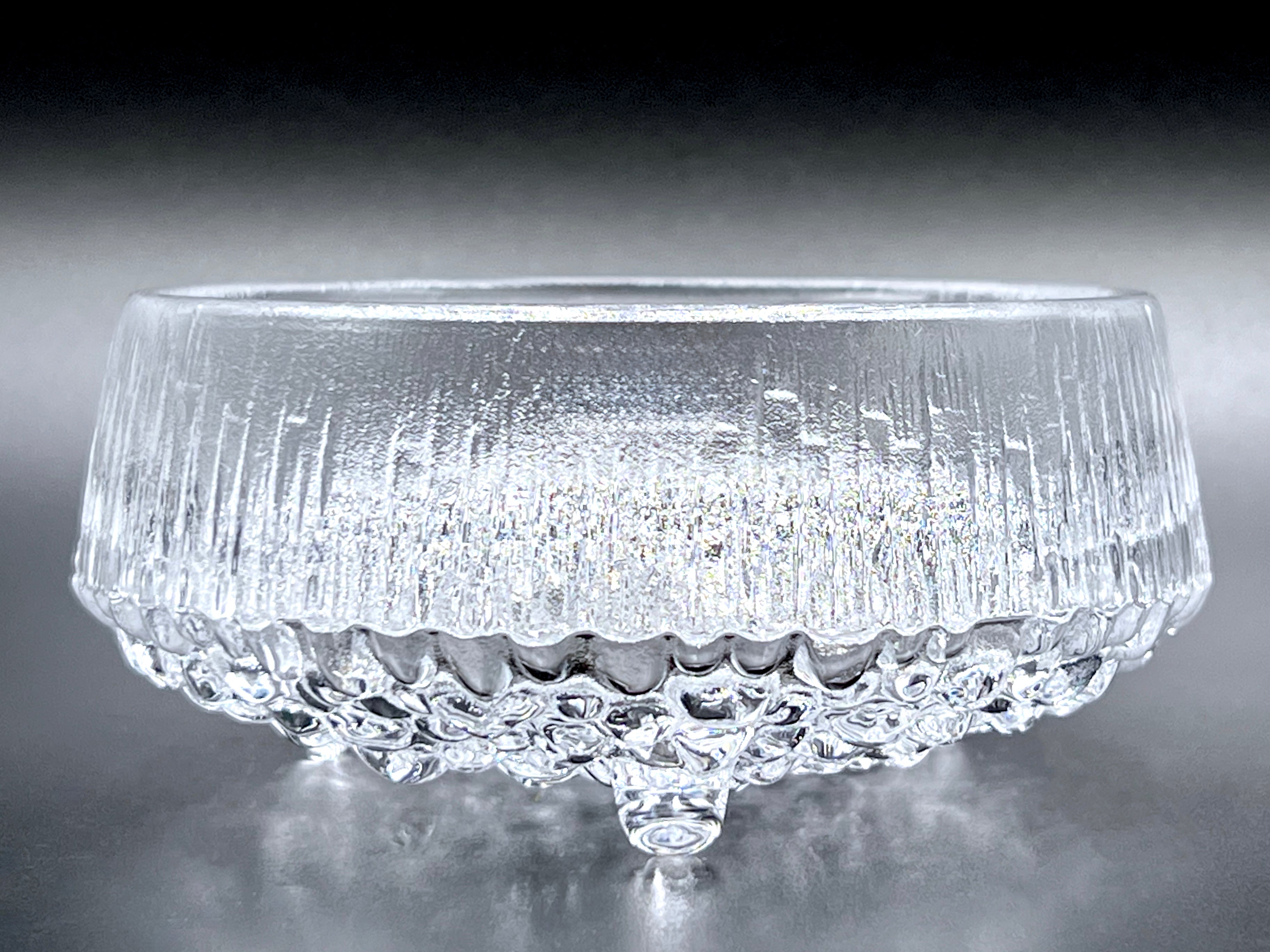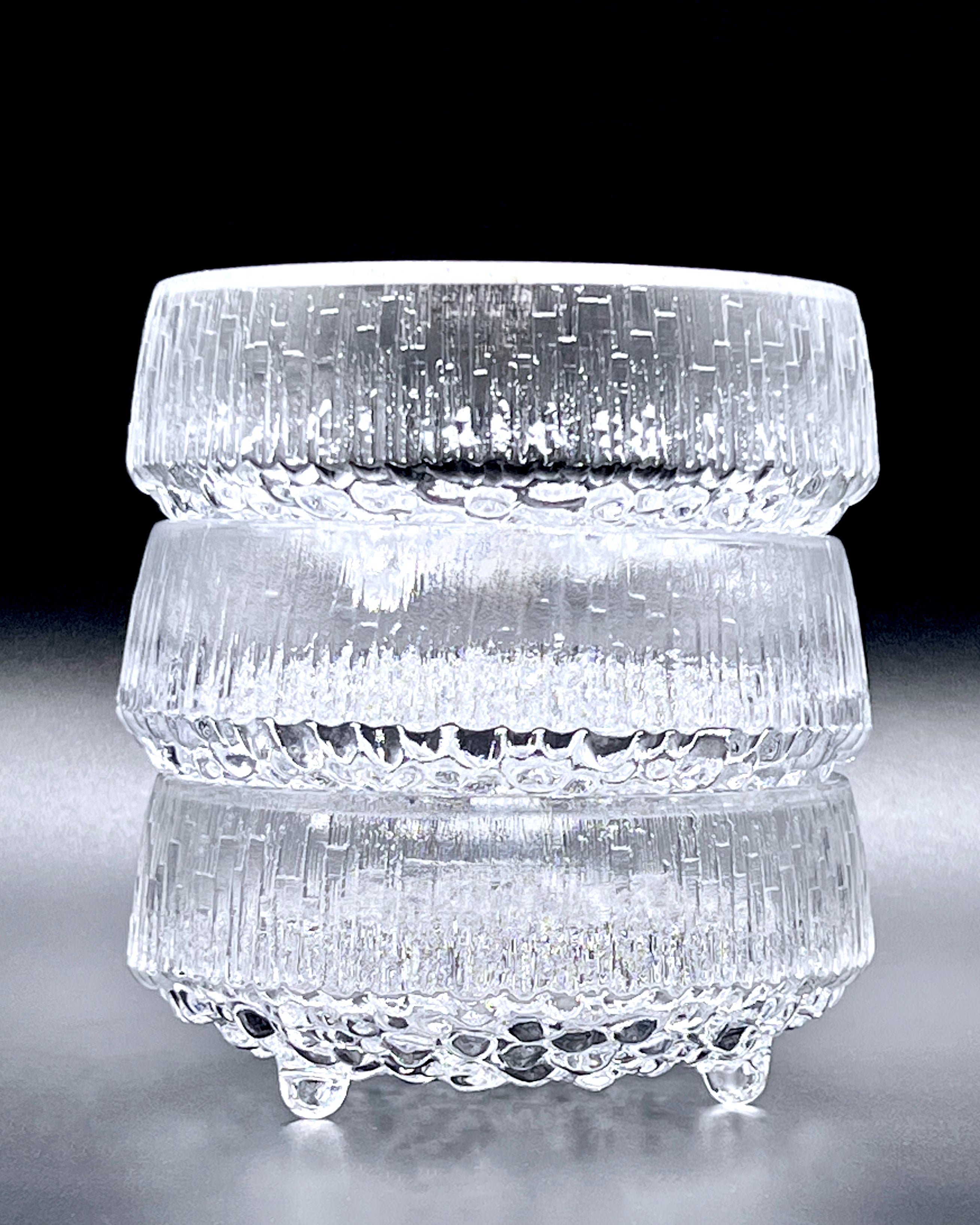 « Ultima Thule » – inspirée par la fonte des glaces en Laponie, la surface d’« Ultima Thule » a été créée par Wirkkala dans les années 1960 après avoir sculpté un moule graphique. Un design exclusif qui témoigne des milliers d’heures consacrées au perfectionnement de la technique de soufflage du verre nécessaire à son obtention.