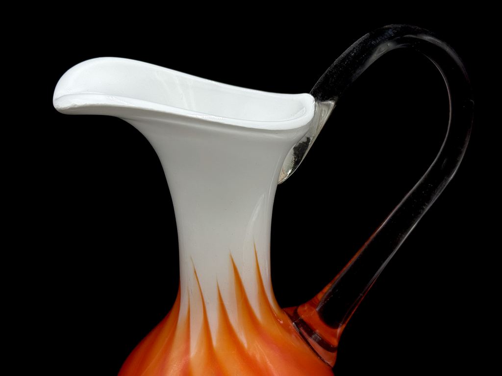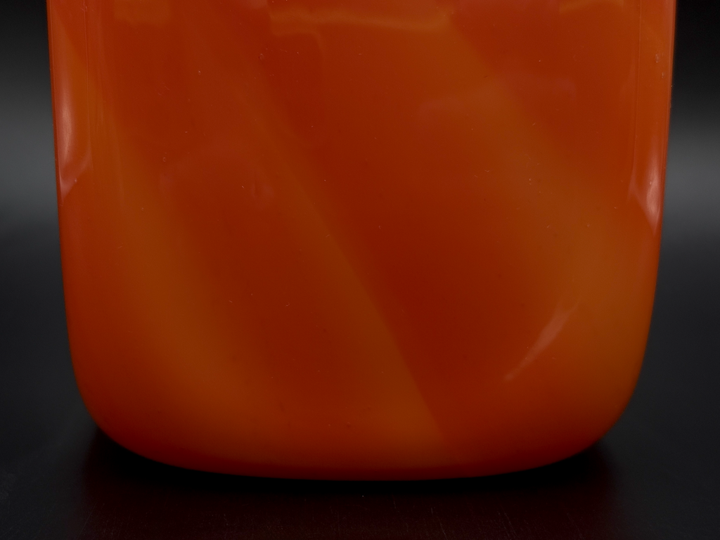 Une trouvaille spectaculaire! Un vase en verre enveloppé, dans un motif parfois appelé « verre de tigre ». Cette pièce particulière a été produite par le fabricant Vetreria Artistica Sanminiatello (également connu sous le nom de VAS), basé juste à l'extérieur d'Empoli, à Monteluppo.